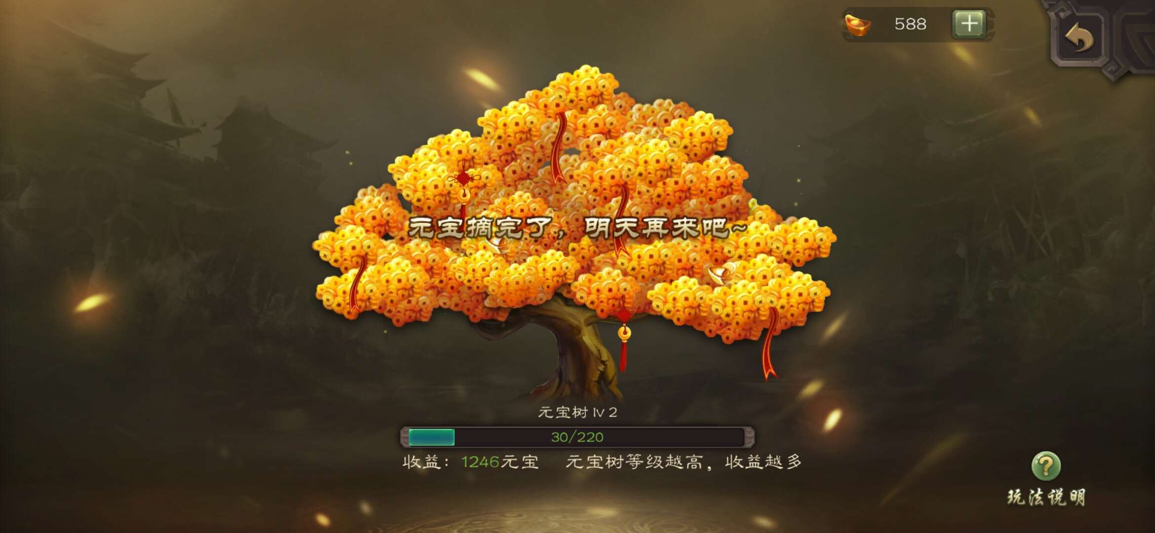 四颗元宝树(死绑),体验每天收元宝的快乐