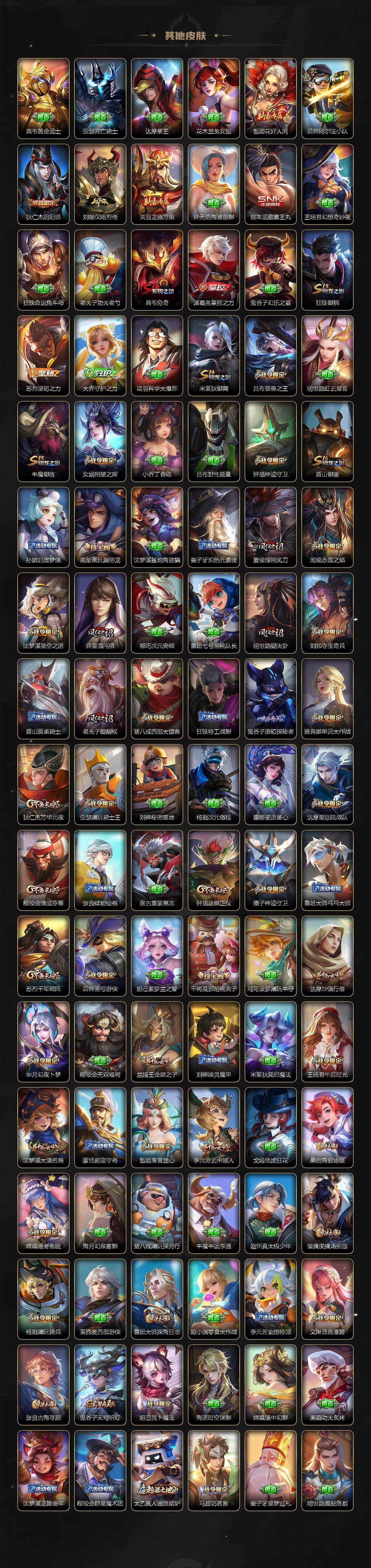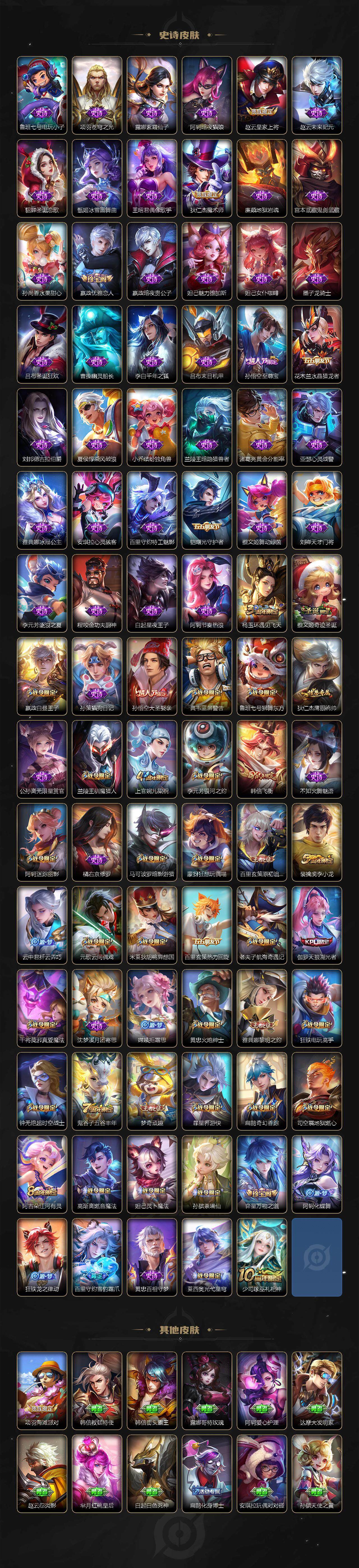 【传说皮肤】:后羿神树通天,澜愿照九州拓,马超琥珀纪元,马可波罗深海之息,曜李逍遥 ,虞姬启明星使,百里玄策白虎志,杨戬永曜之星,