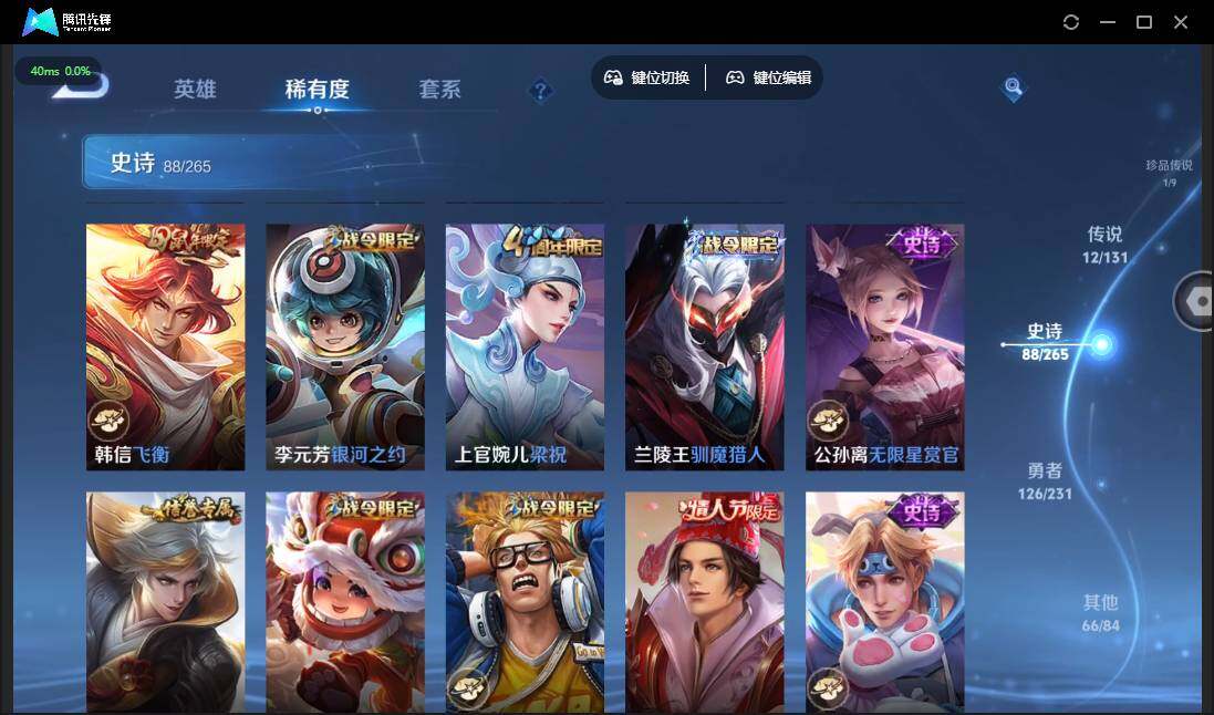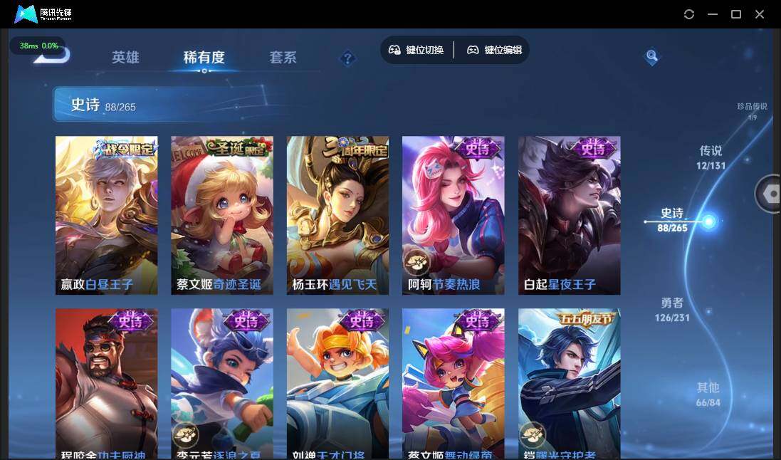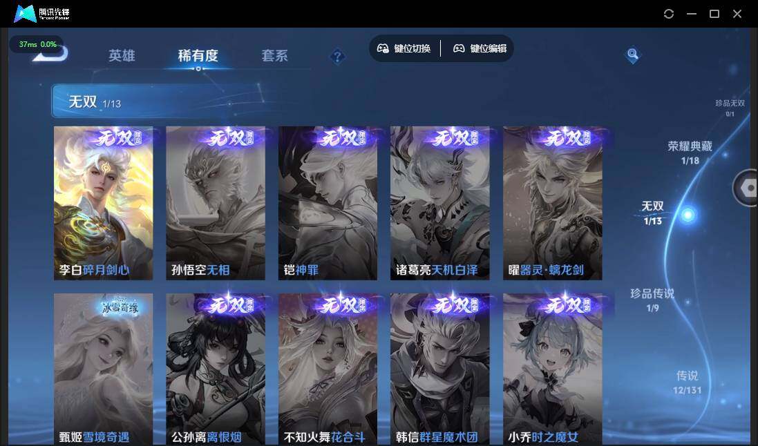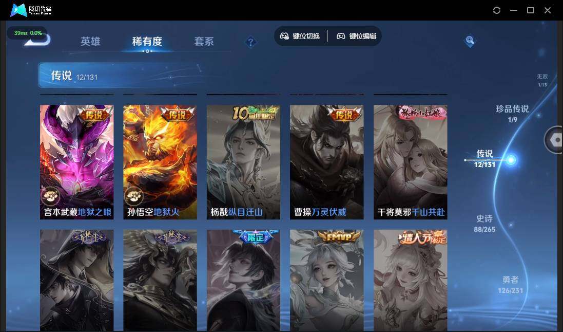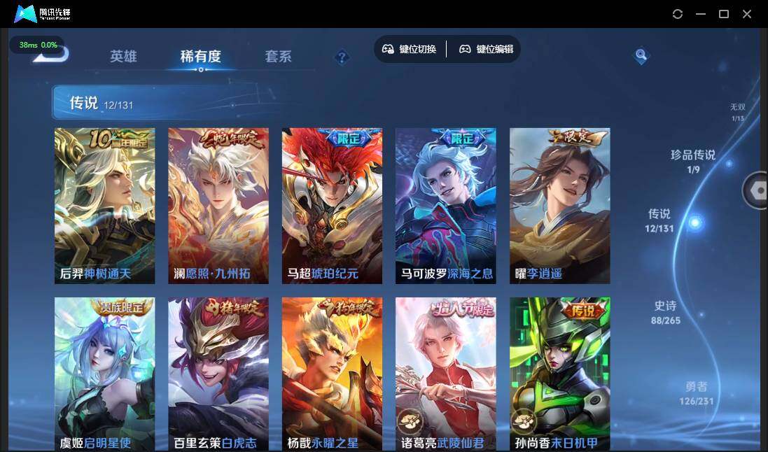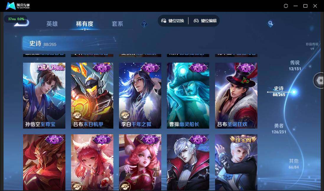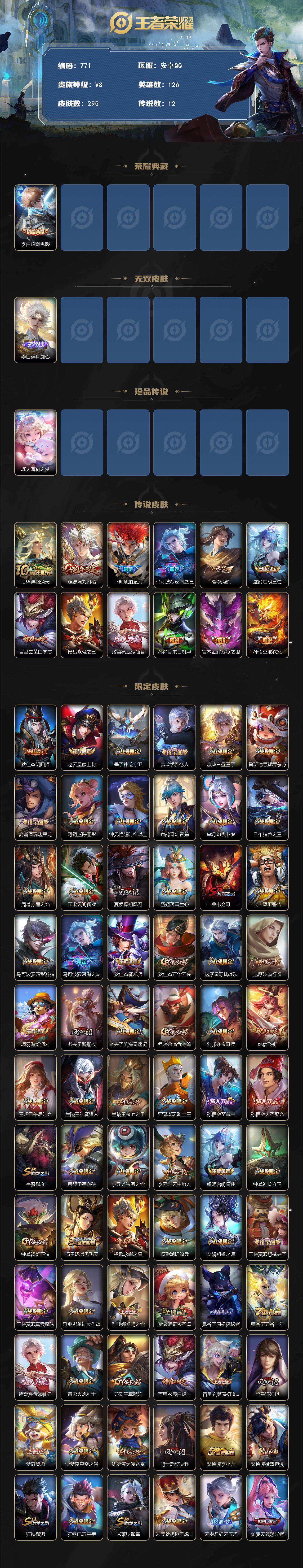 /1918006 安卓Q-V8-最强王者段位-126英雄-295皮肤-1典藏皮肤-1无双-1珍品传说-12传说-88史诗