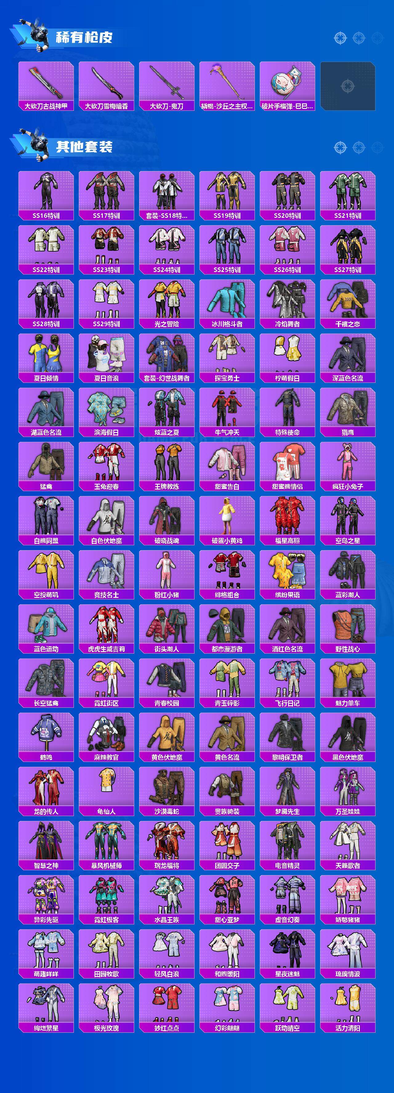 【粉色套装】:粉装-木曜青龙,粉装-冰川幽秘,粉装-冰川红玫,粉装-霞光圣骑,粉装-寒光使者,粉装-音爆索尼克,粉装-心之回忆,角色-呆萌星弥,角色-熔岩统帅,角色-脉冲