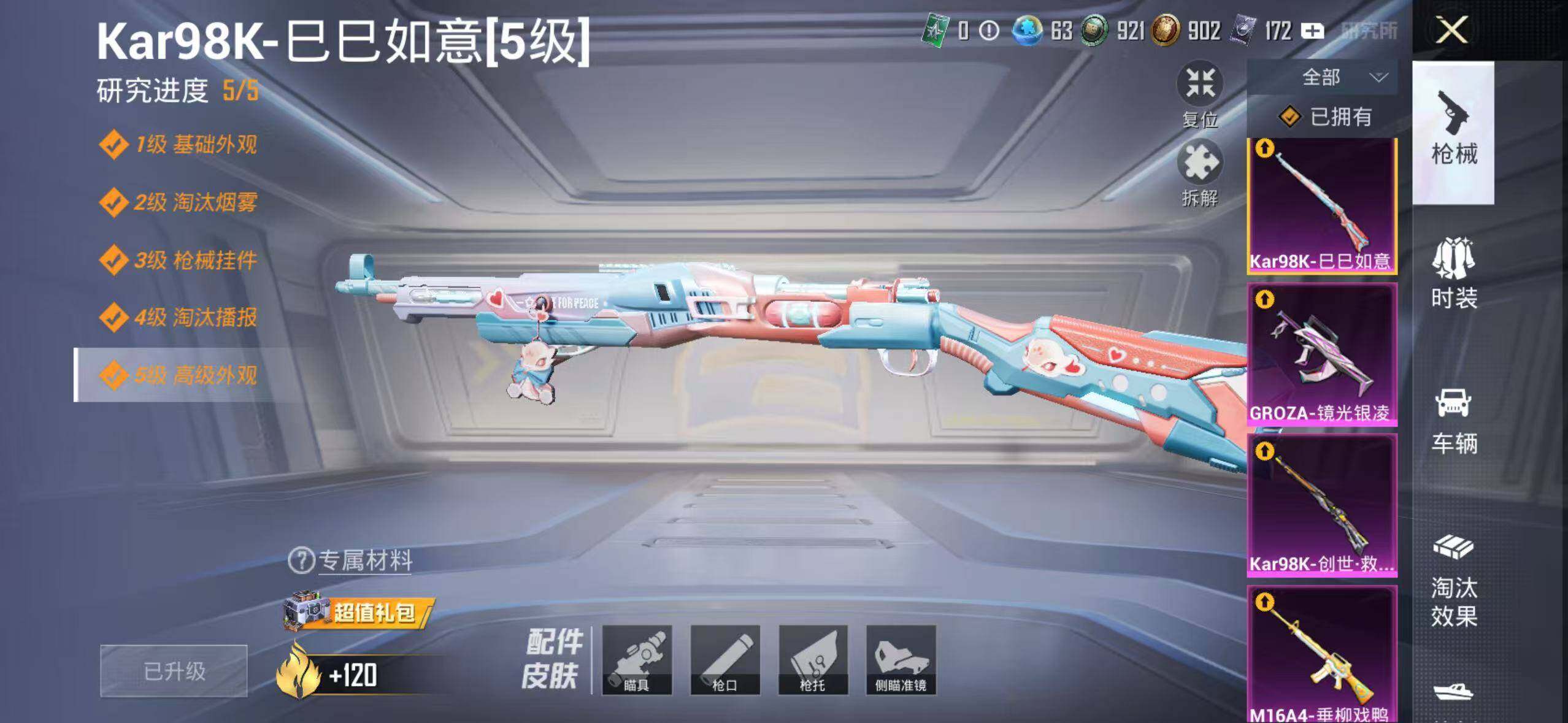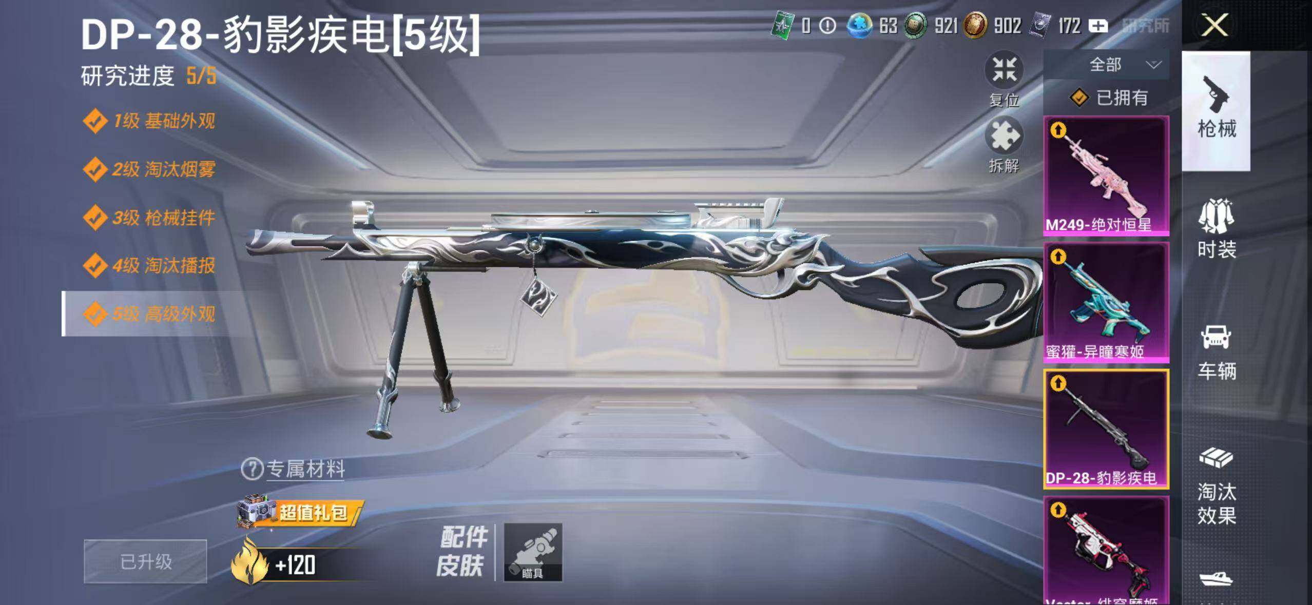 149套装/枪械11/装备274/战备155/王牌印记8/热力值69236/六