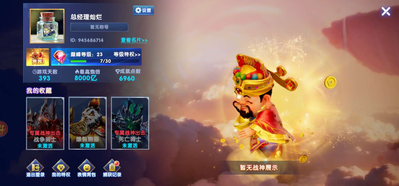 无绑v1,80炮3.1兆,巅峰23,进房领超能和吕布,8字头,手搓号,没9006