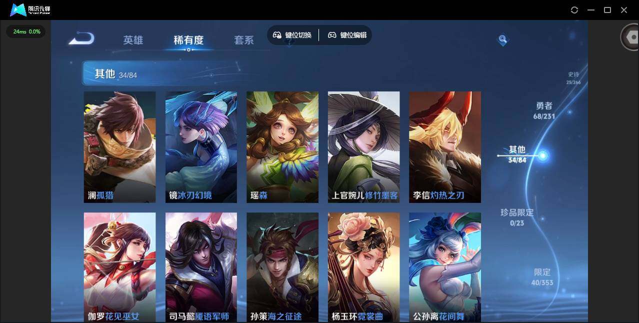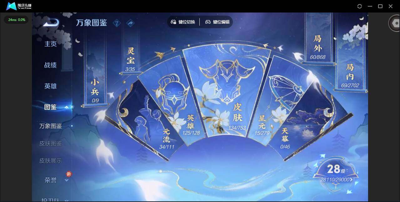 营地账号:/贵族等级: V7 英雄数: 125 皮肤数: 134 星传说: 幽冥火 传说皮: 云鹰飞将,碎云,澜逐花归海,典韦战鼓燎原,神树通天 限定皮: 神奇女侠,霸王别姬-项羽,齐天大圣,愿照·九州拓