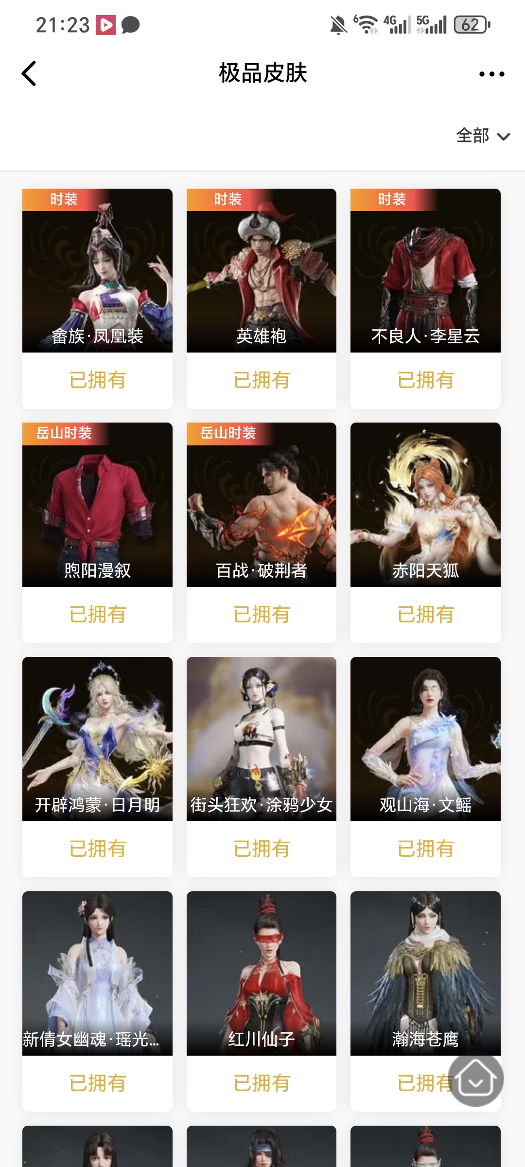 【极品皮肤】畲族·凤凰装 英雄袍 不良人·李星云 煦阳漫叙 百战·破荆者 赤阳天狐 开辟鸿蒙·日月明 街头狂欢·涂鸦少女 观山海·文鳐 新倩女幽魂·瑶光沐月 红川仙子 瀚海苍鹰 贵胄少女 赤雾烟霞 碧水青天 龙之影·过江龙