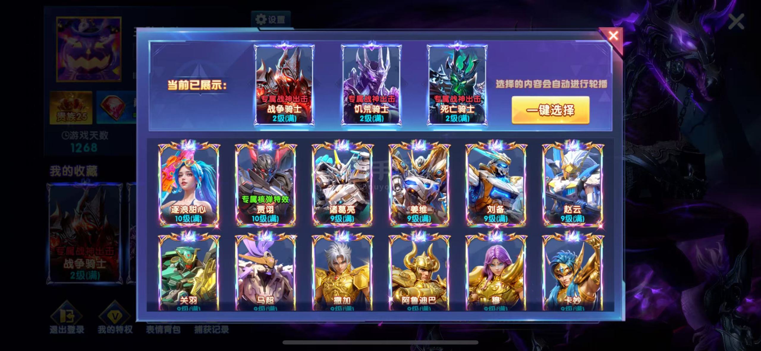 官方版本贵族25加成2206顶配十五套,战神差艾亚哥斯全战神出站,返卷75%,绝版星甲全解锁,9级炉子,纯救济3.6兆,个人号未出租过,移动卡线上过户,低价出售~~~