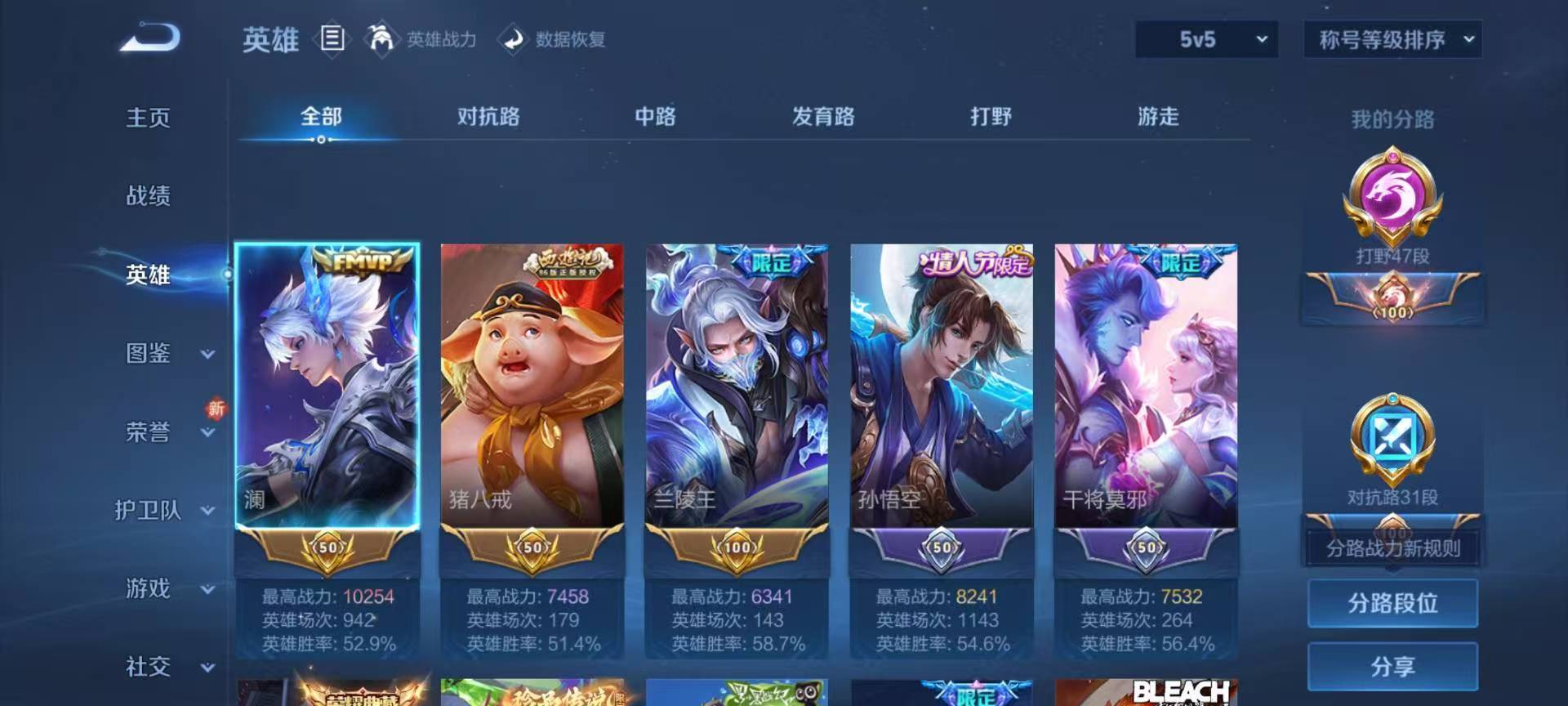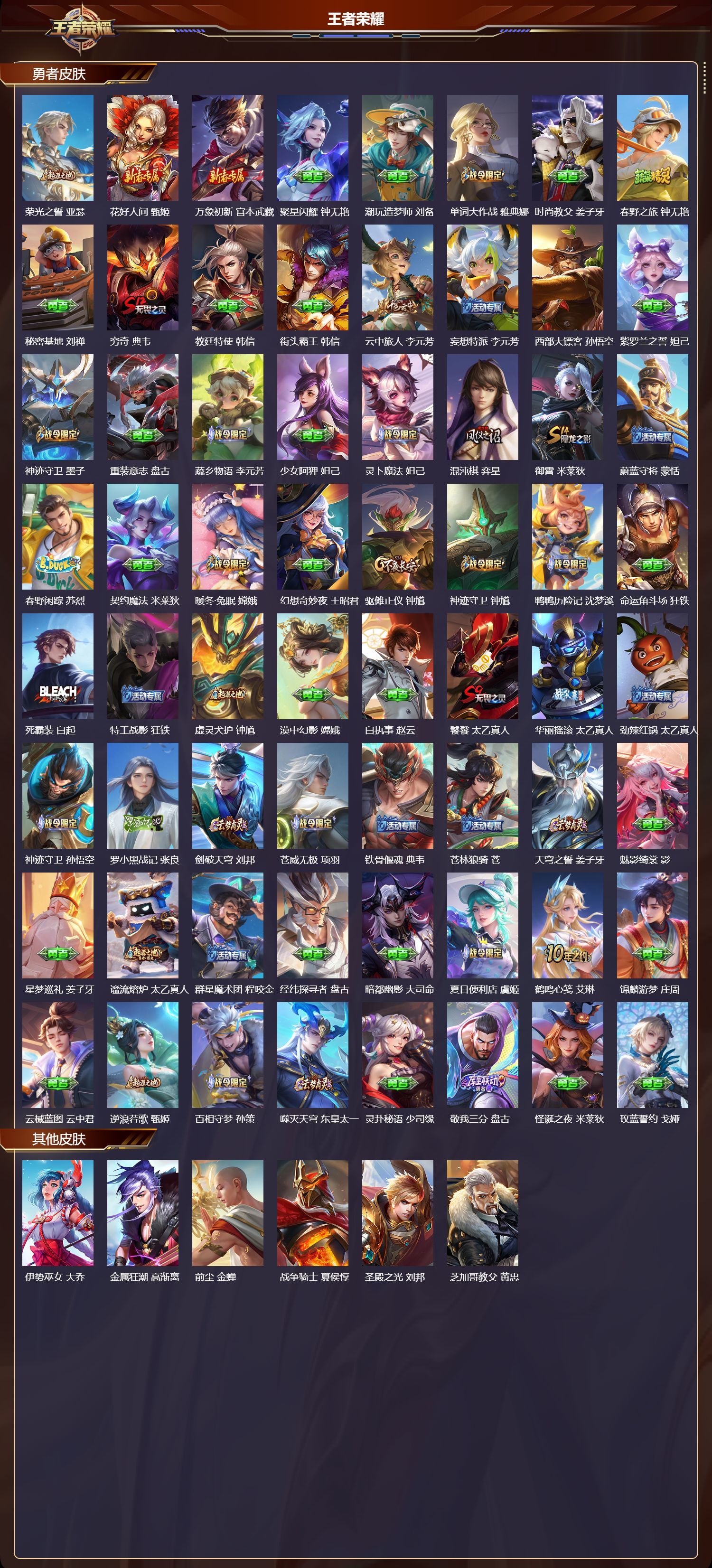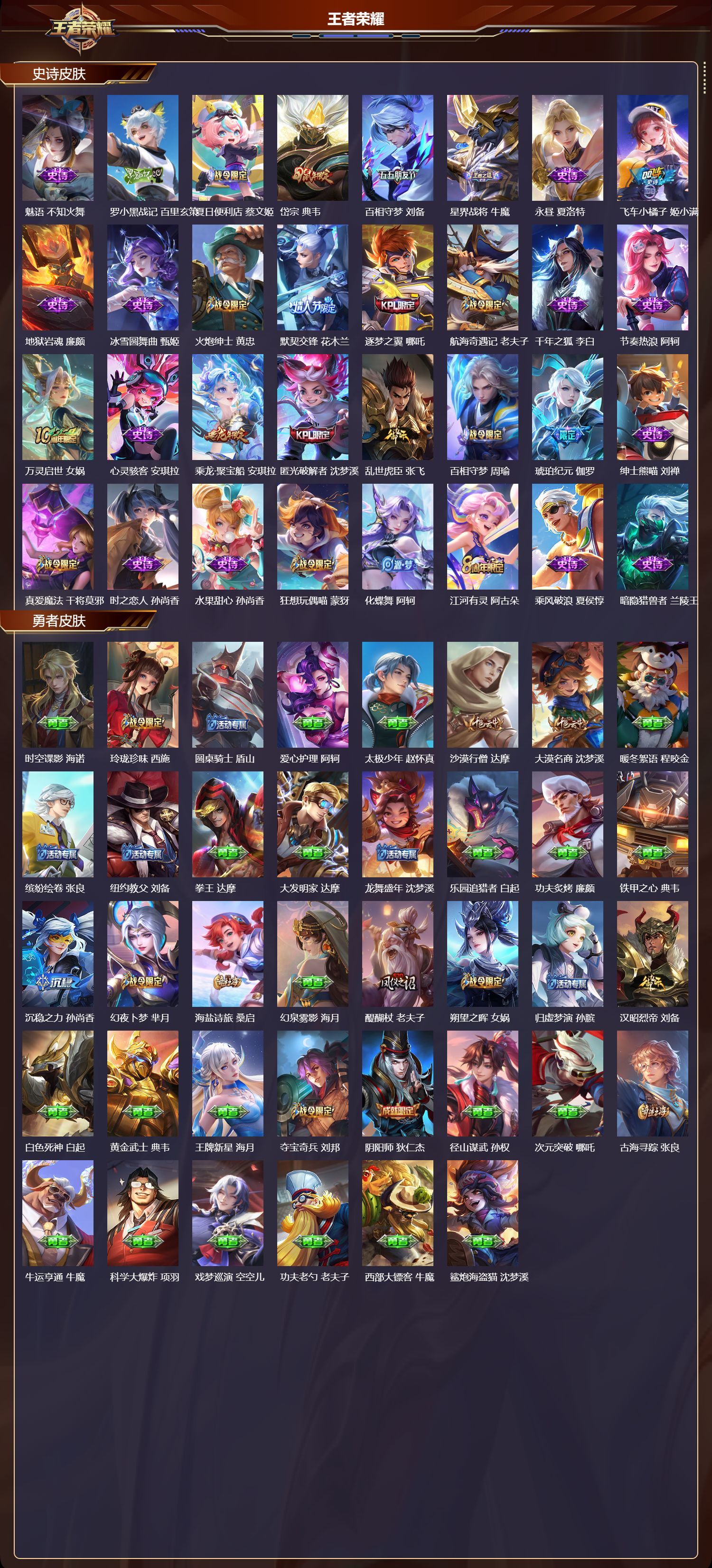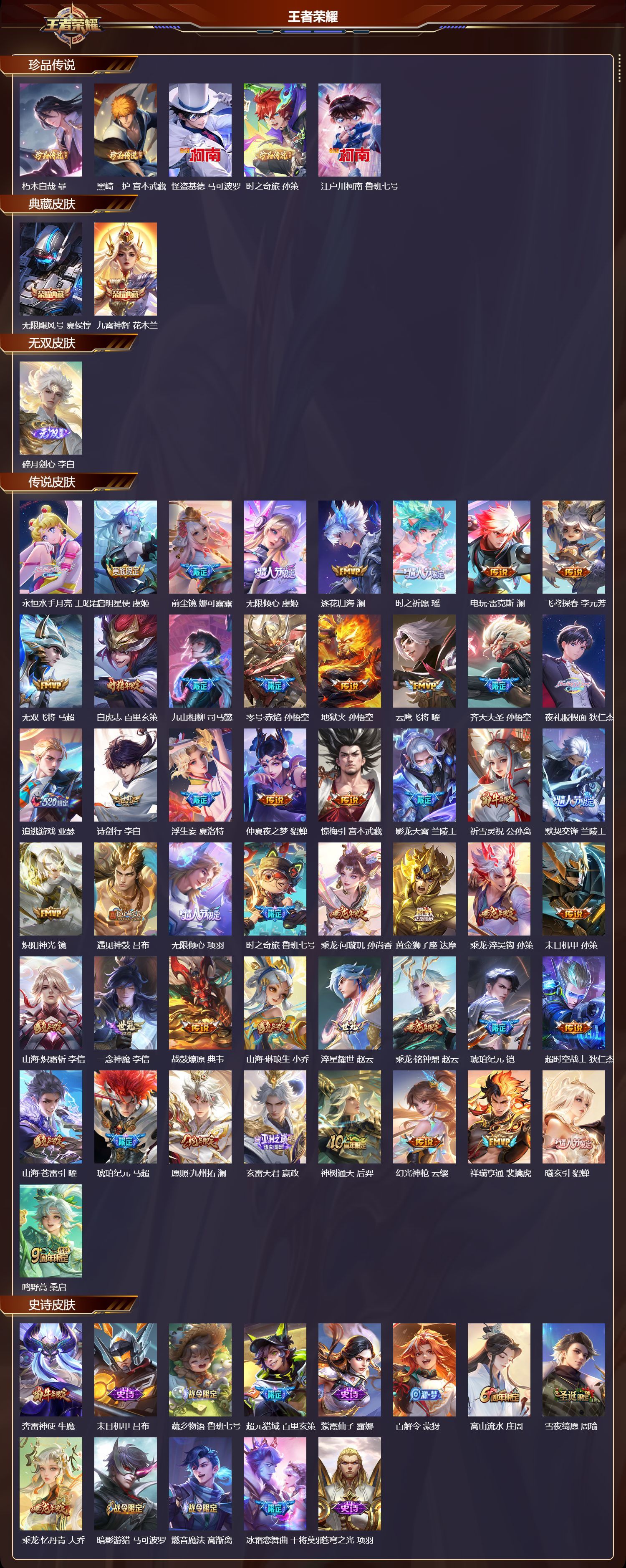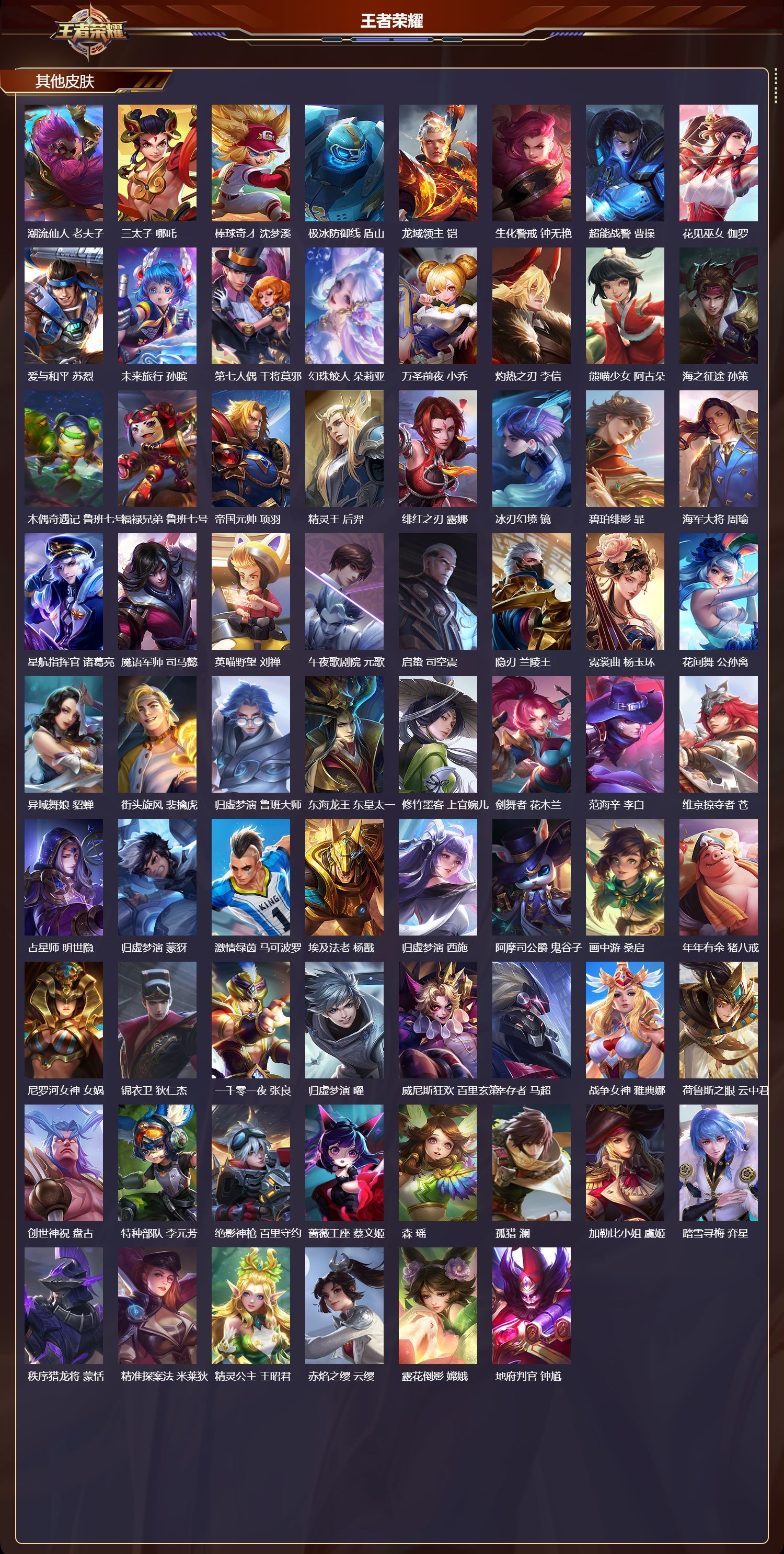 安卓QQ/荣耀王者/422皮肤/127英雄/2典藏/0珍品无双/1无双/5珍品传说/49传说/115