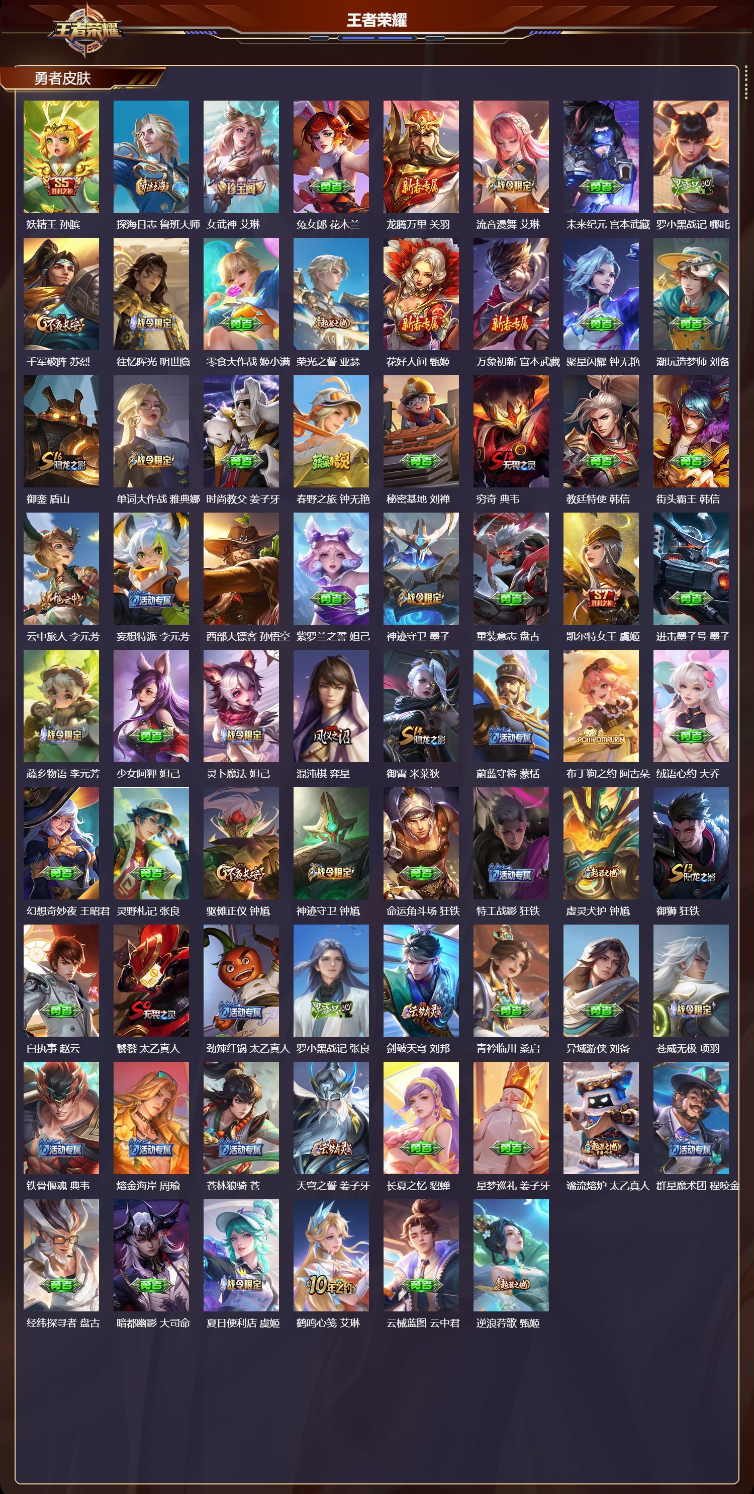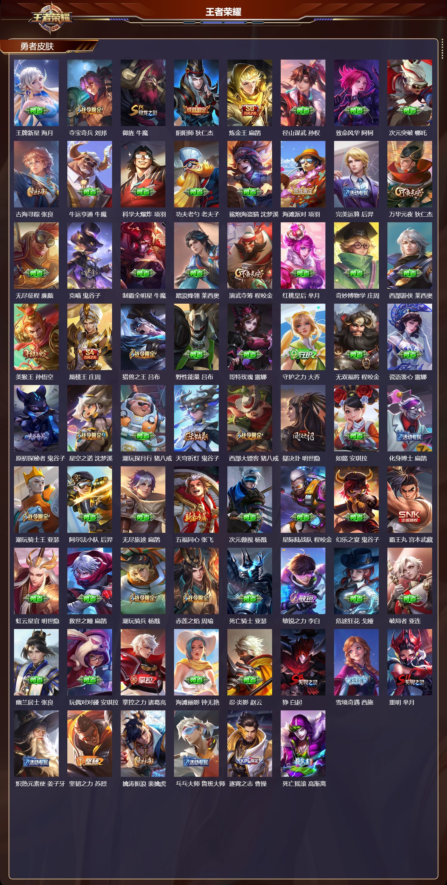 苹果QQ/荣耀王者/421皮肤/125英雄/4典藏/0珍品无双/5无双/0珍品传说/50传说/123