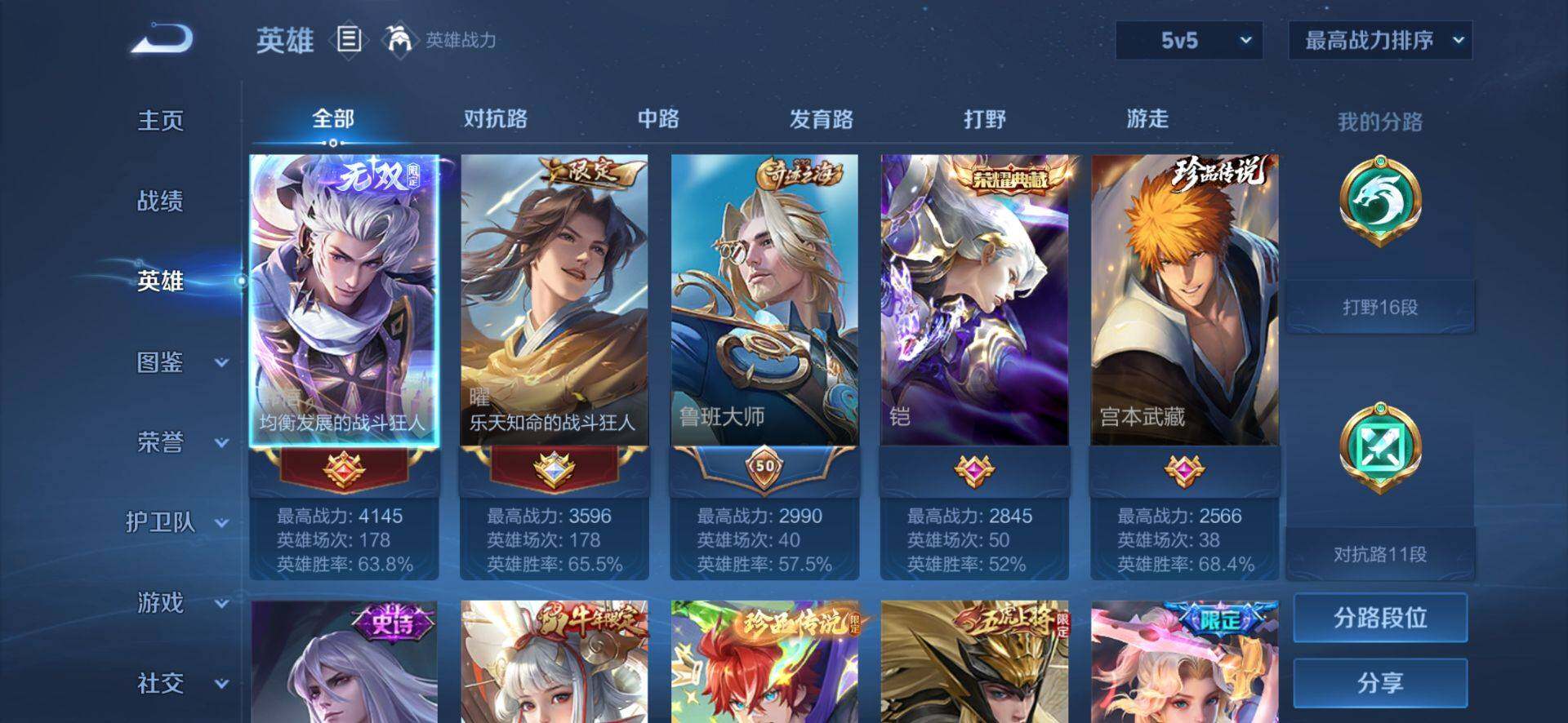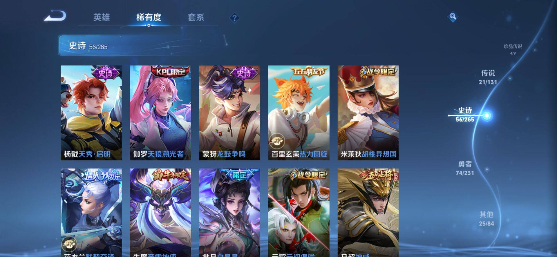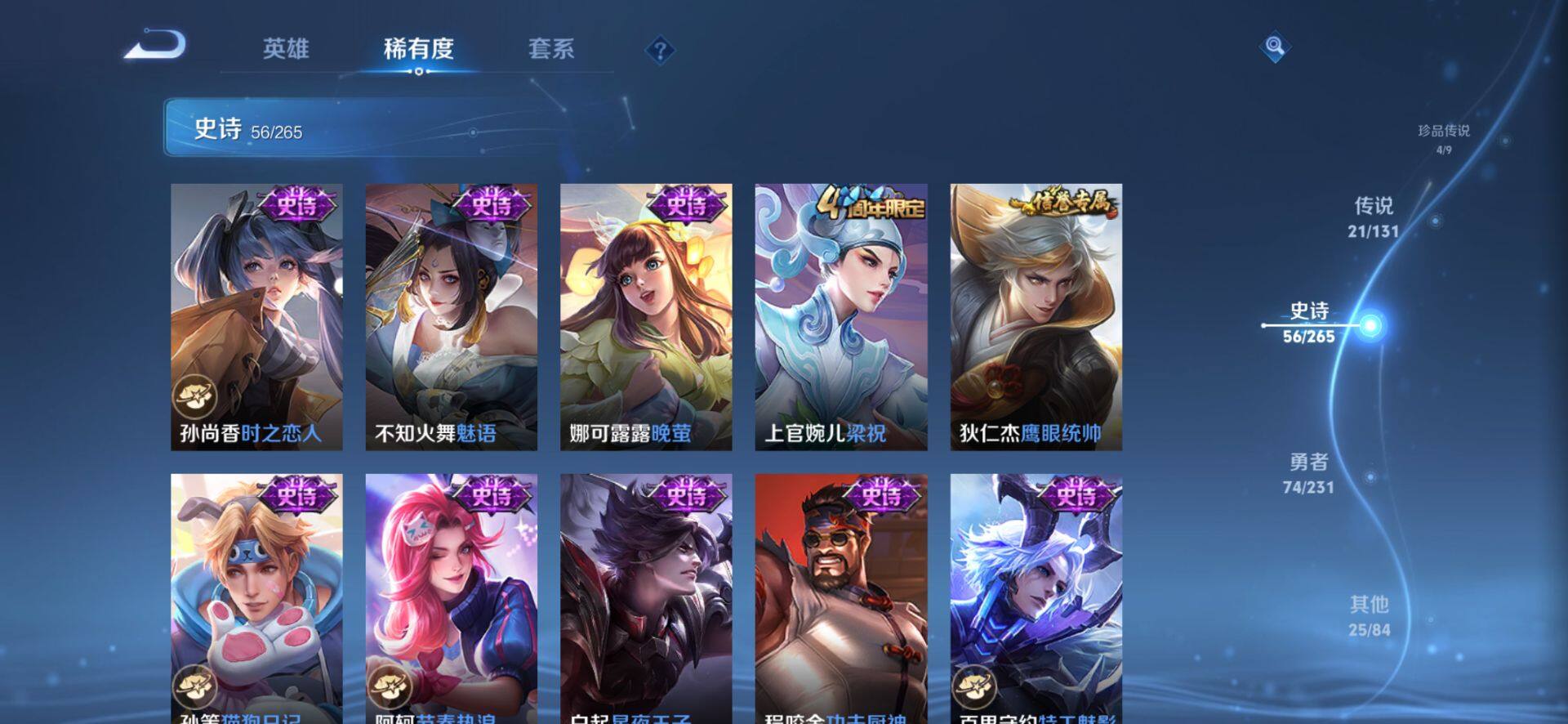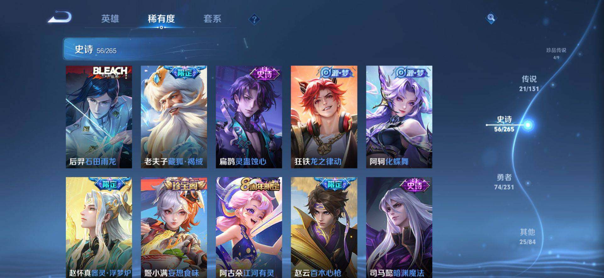 皮肤185 英雄127 至圣王者 荣耀典藏2 珍品无双1 无双皮肤2 珍品传说4 传说21 其他皮肤72-【貂蝉馥梦繁花 韩信 曜无双4珍品21传说 极品号】安卓Q-V6-最强王者段位