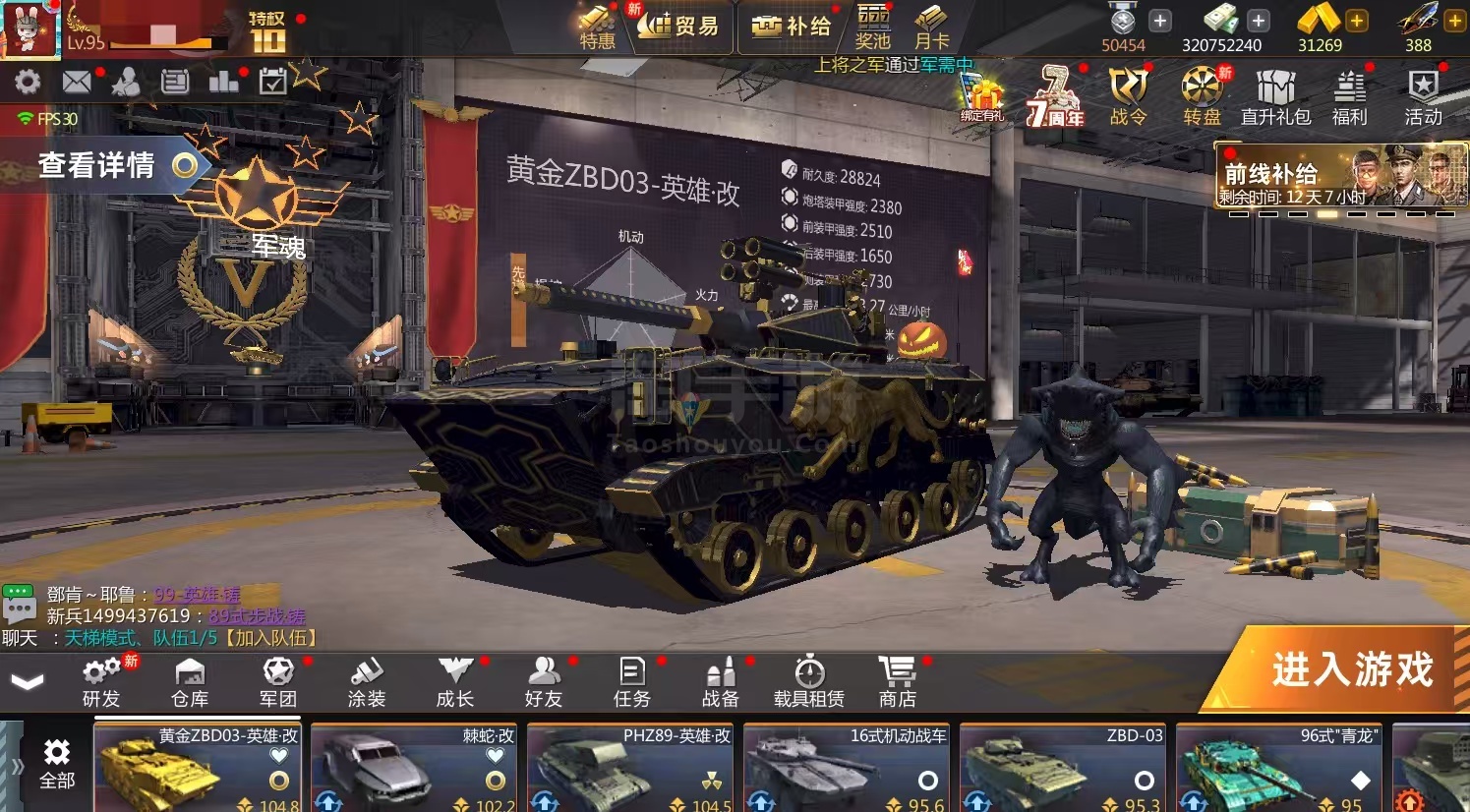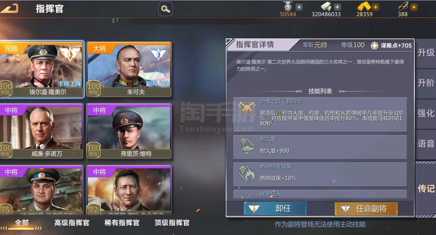 3011电脑端游-4399端-朱可夫隆美尔-黄金03装甲号-技能满-武器甲弹药锻造全红-部件全红-研修满