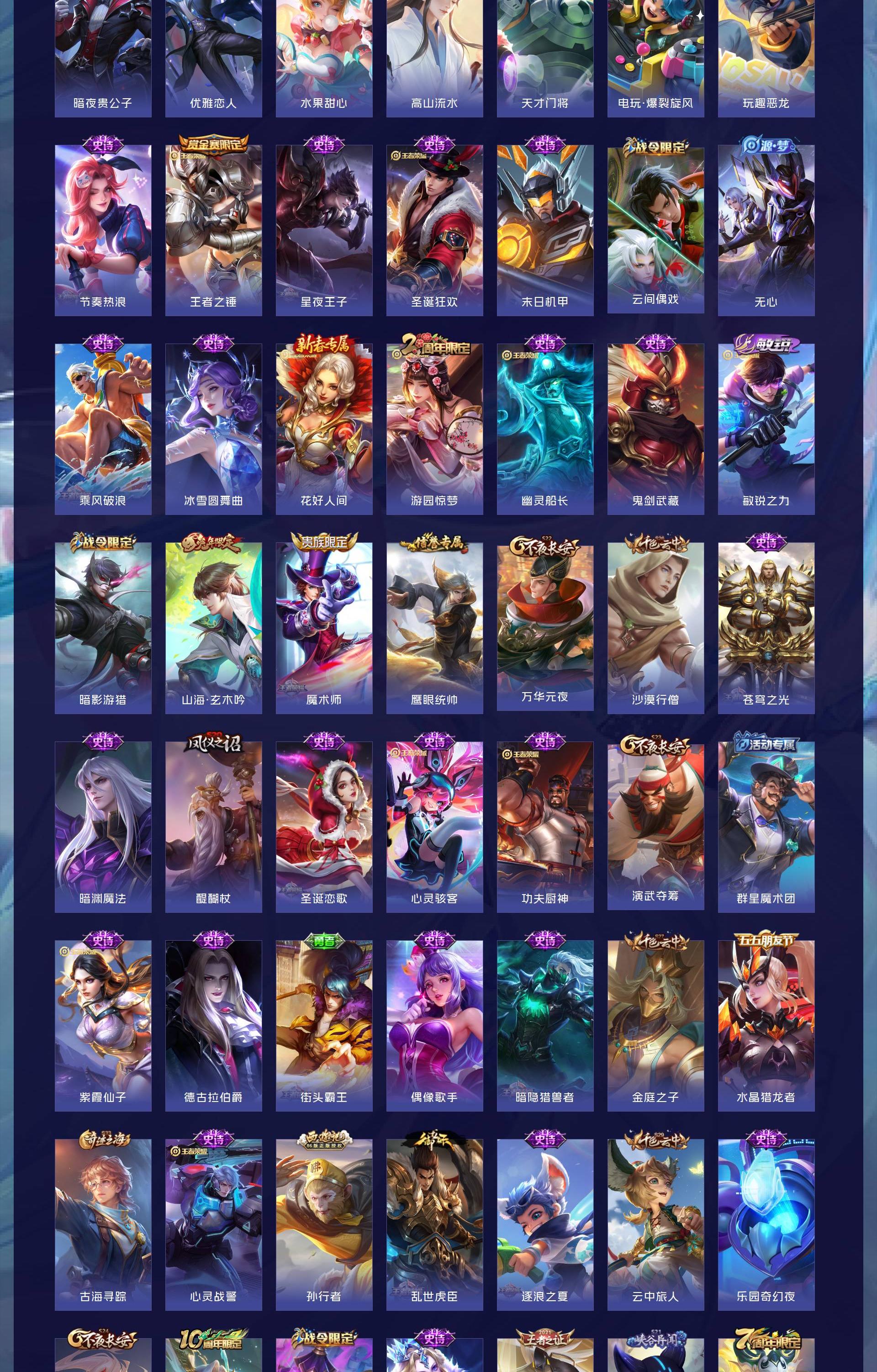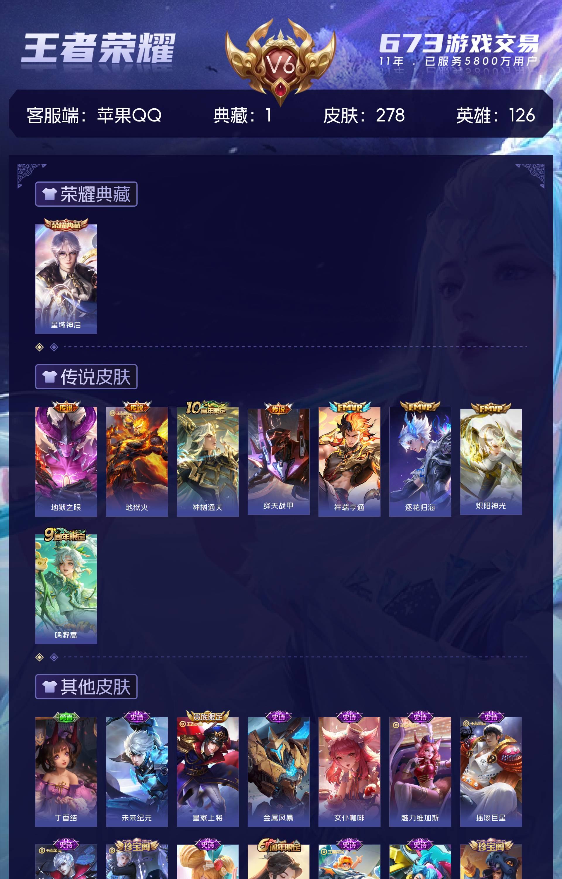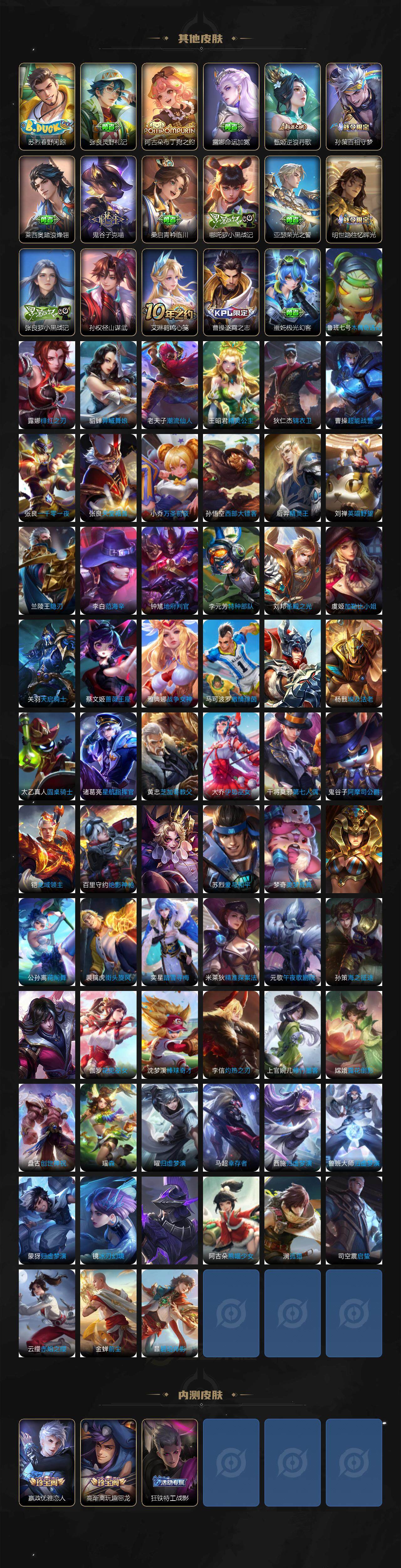 皮肤278 英雄126 无双王者 荣耀典藏1 传说8 其他皮肤94-