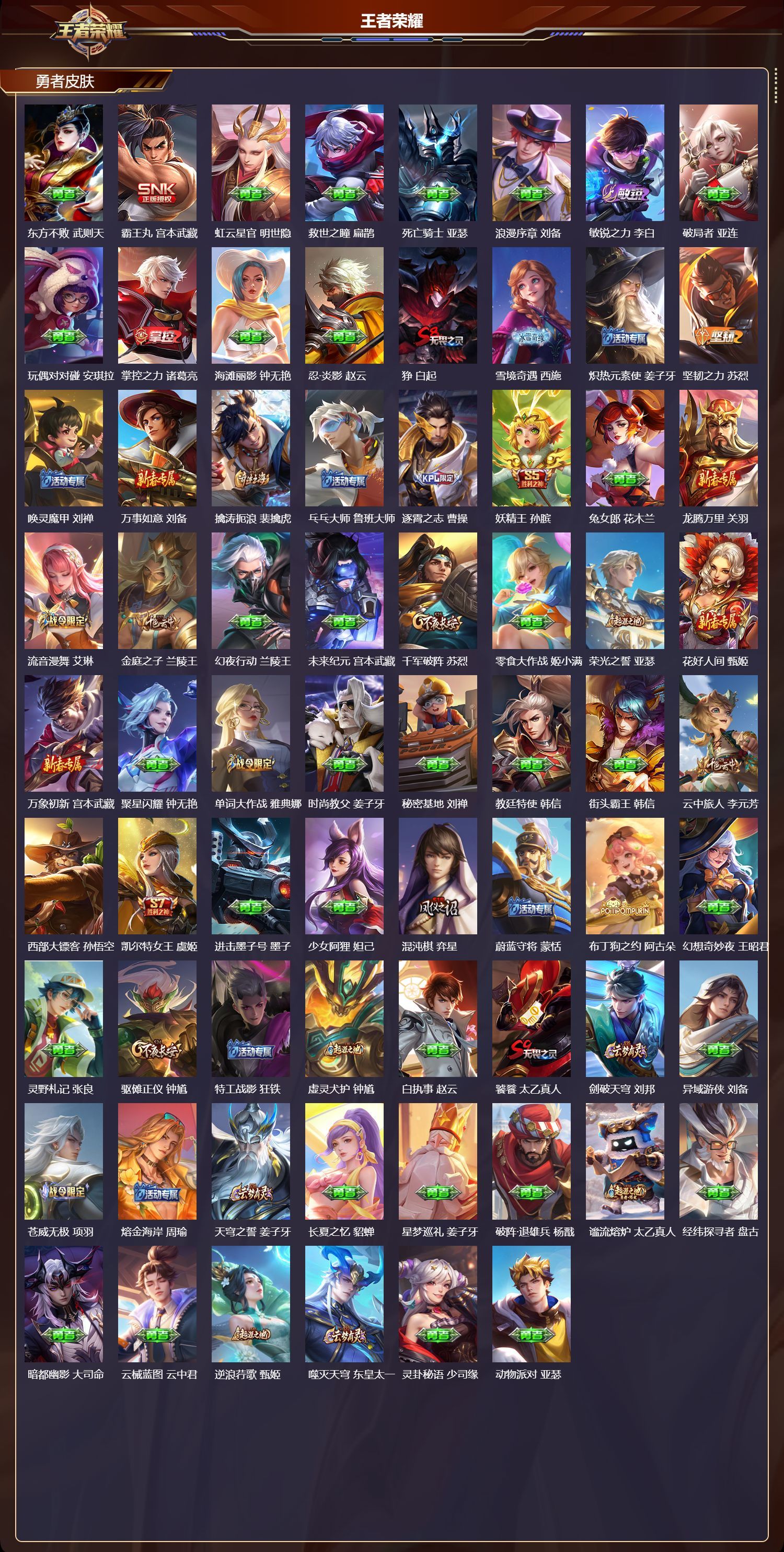 苹果QQ/最强王者/268皮肤/127英雄/1典藏/0珍品无双/1无双/0珍品传说/22传说/65史