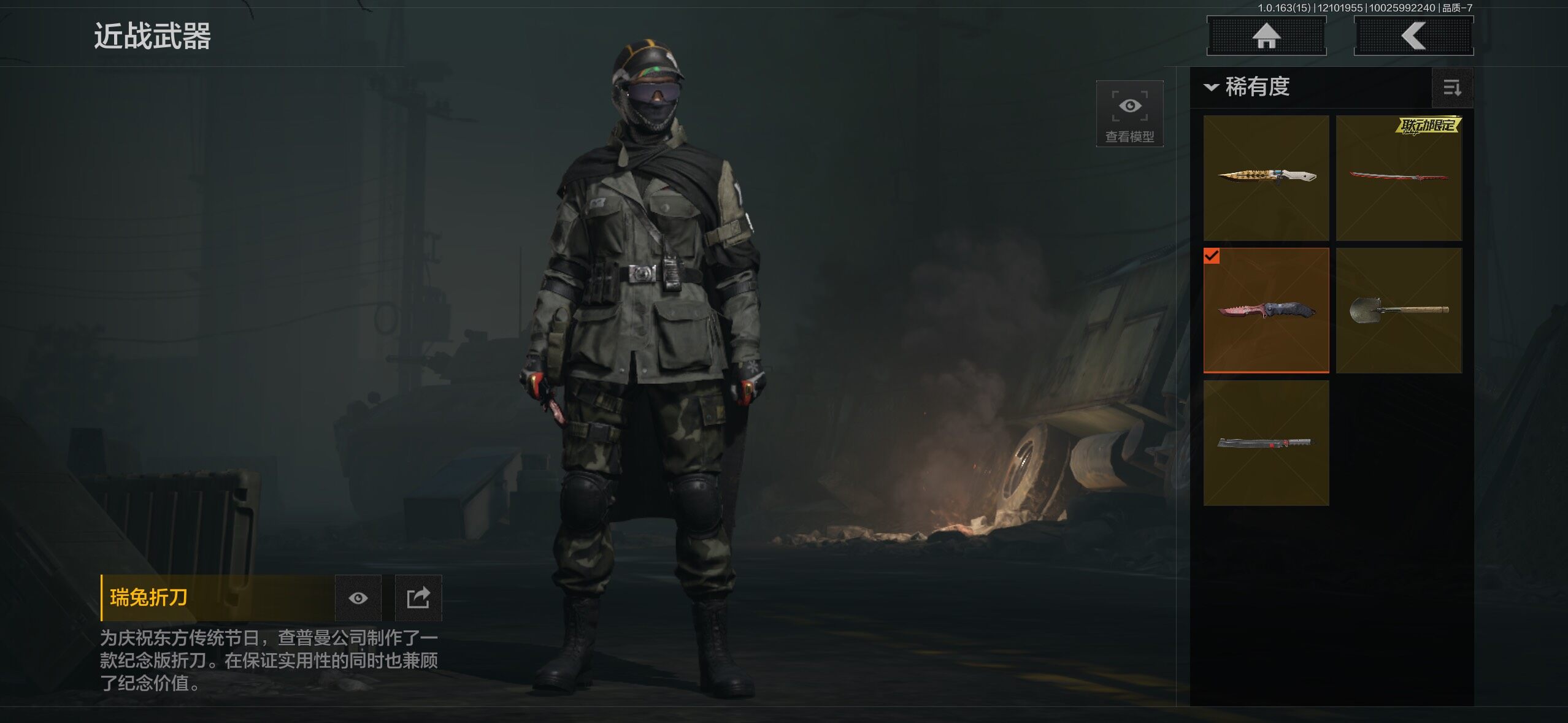苹果Q区可二次,极品刀皮号【近战武器】:瑞兔折刀 赢家匕首 热能武器补牢 工兵铲