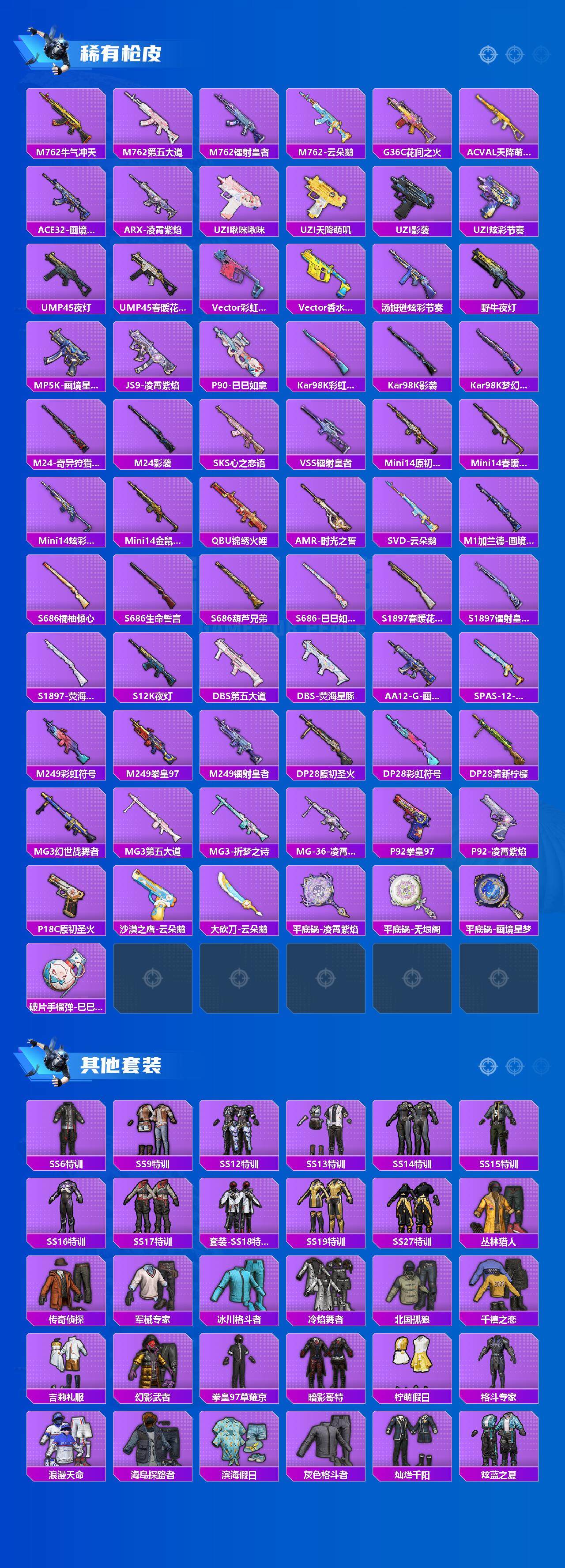 【A2595】苹果【小号/梦幻火箭/都市猎人/暗影哥特】 手Q-7粉装-7特效枪-2载具-6粉色飞行器-56319热力值-6王牌印记-126套装-163枪皮