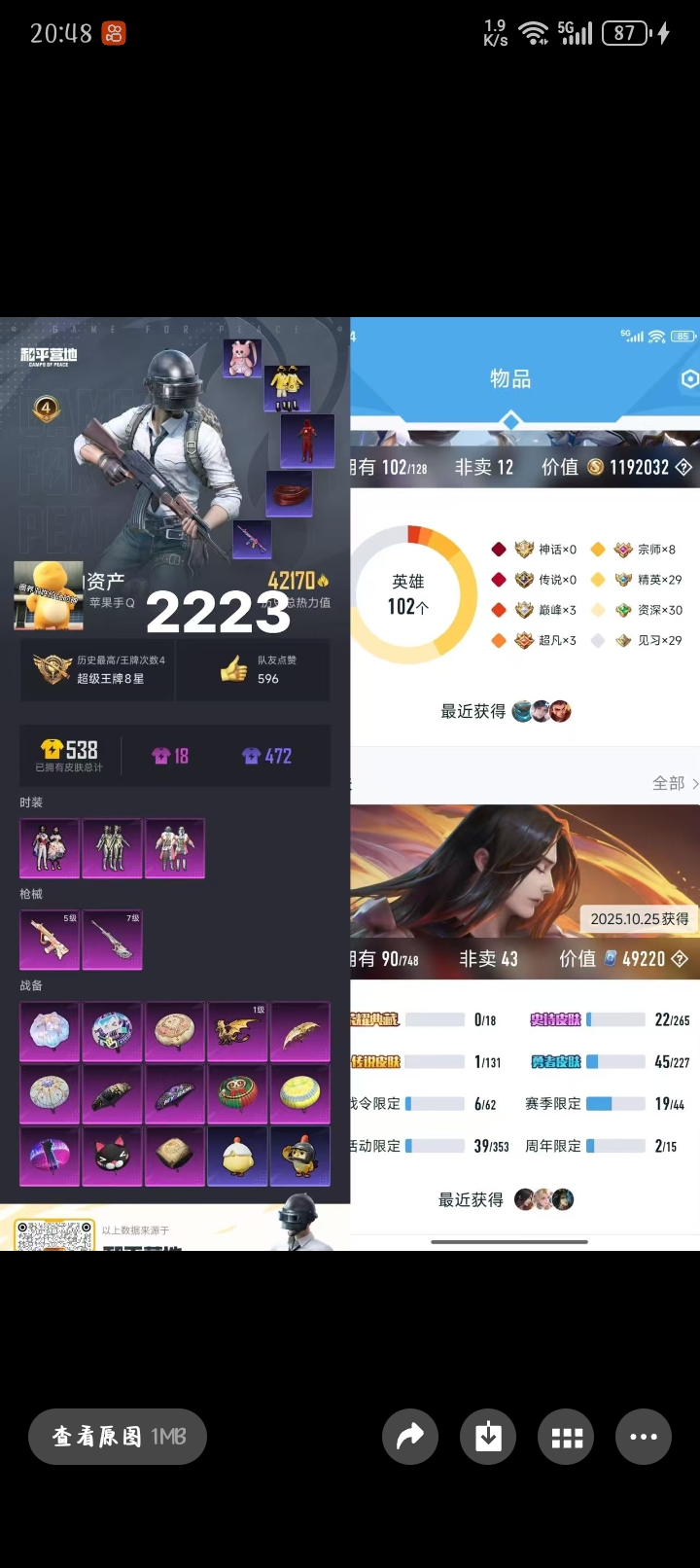 性价比账号一眼沦陷王者102英雄90皮+吃鸡538皮 双游毕业连体号