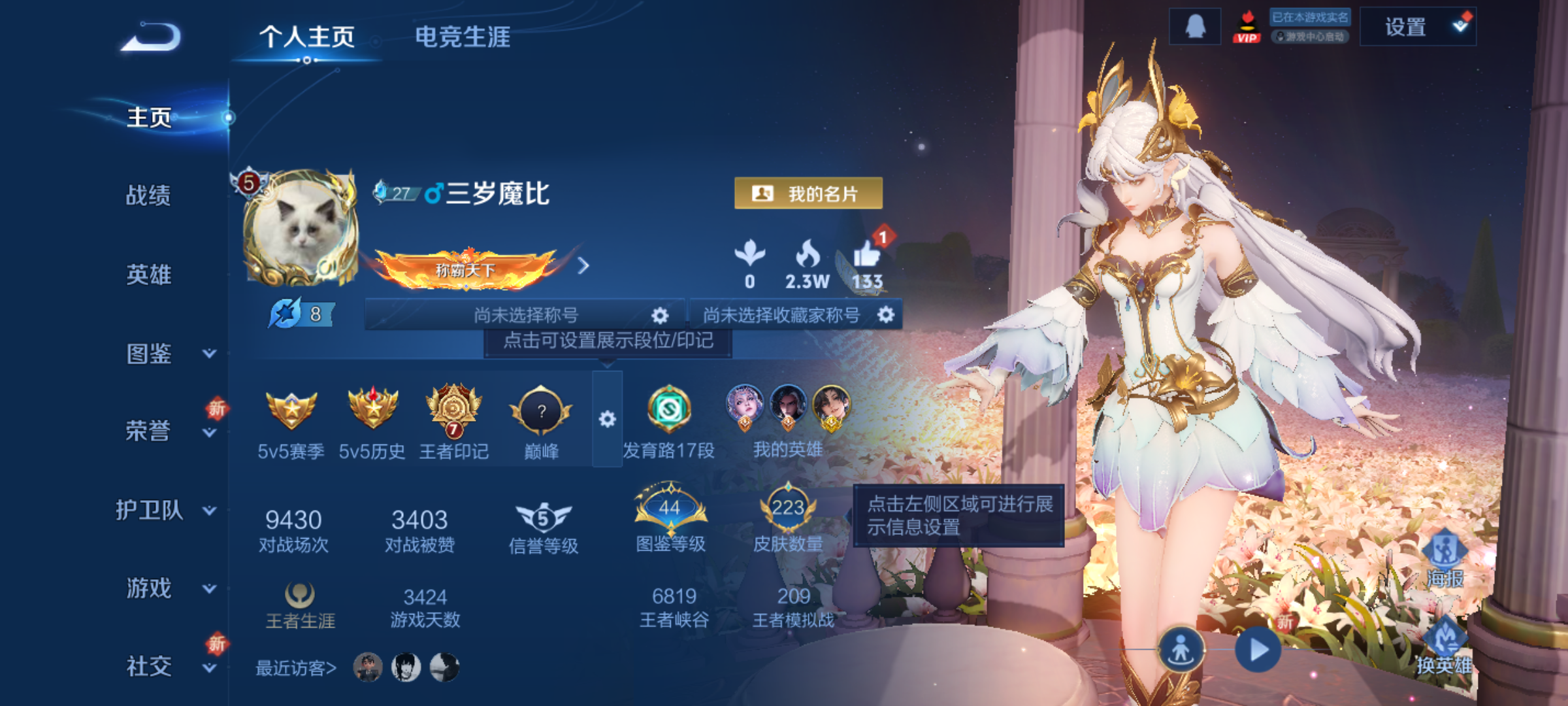 【14424041】[14424041]实名: 不可修改 贵族等级: V6 英雄数: 126 皮肤数: 223 传说皮: 炽阳神光,仲夏夜之梦,零号·赤焰 限定皮: 李小龙,游园惊梦,梁祝,白晶晶,天狼溯光者,朱雀志,至尊宝,默契交锋-花木兰,高山流水,五谷丰年 亮点: 【精品号手慢无】消费任意点卷贵6性价比号,发育路17段,44级收藏家,2449星币,100+鲜