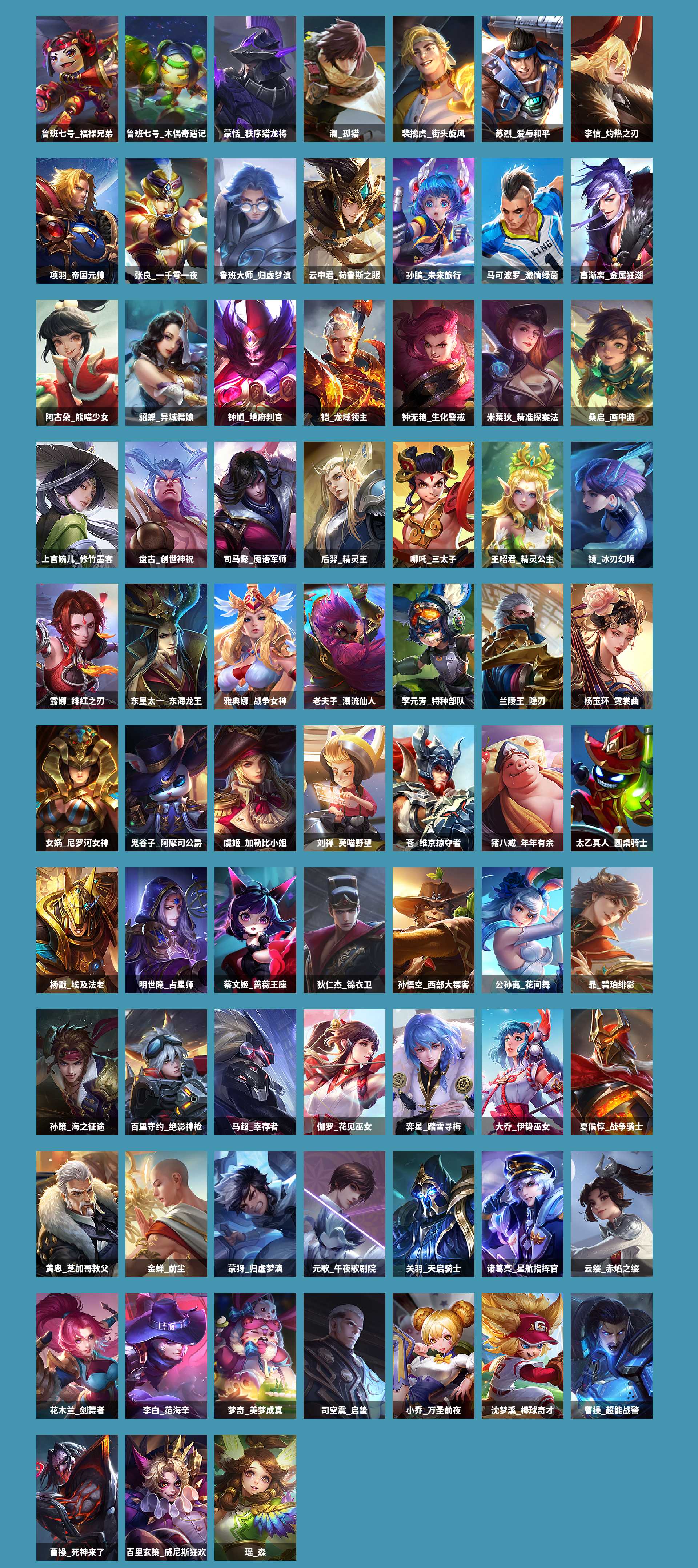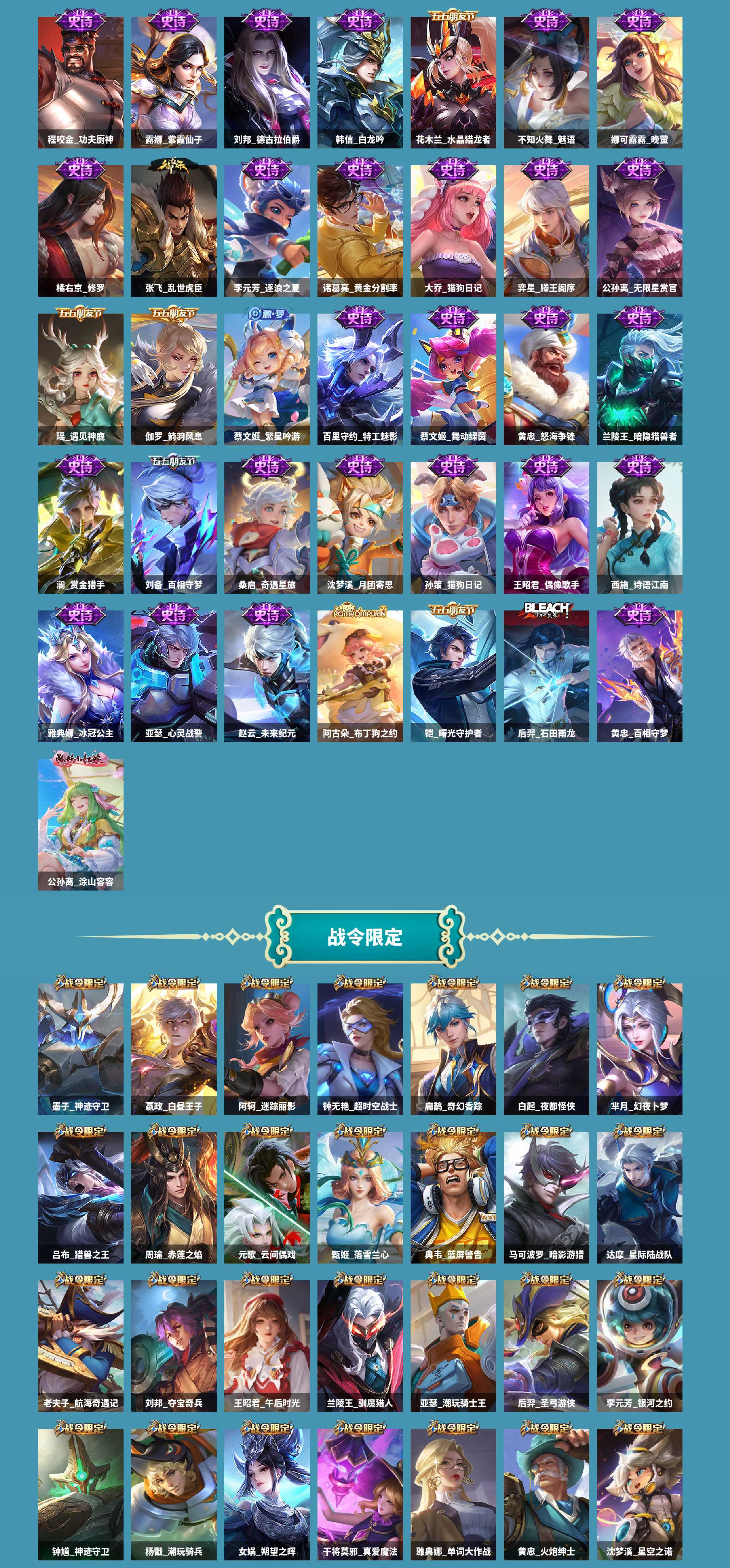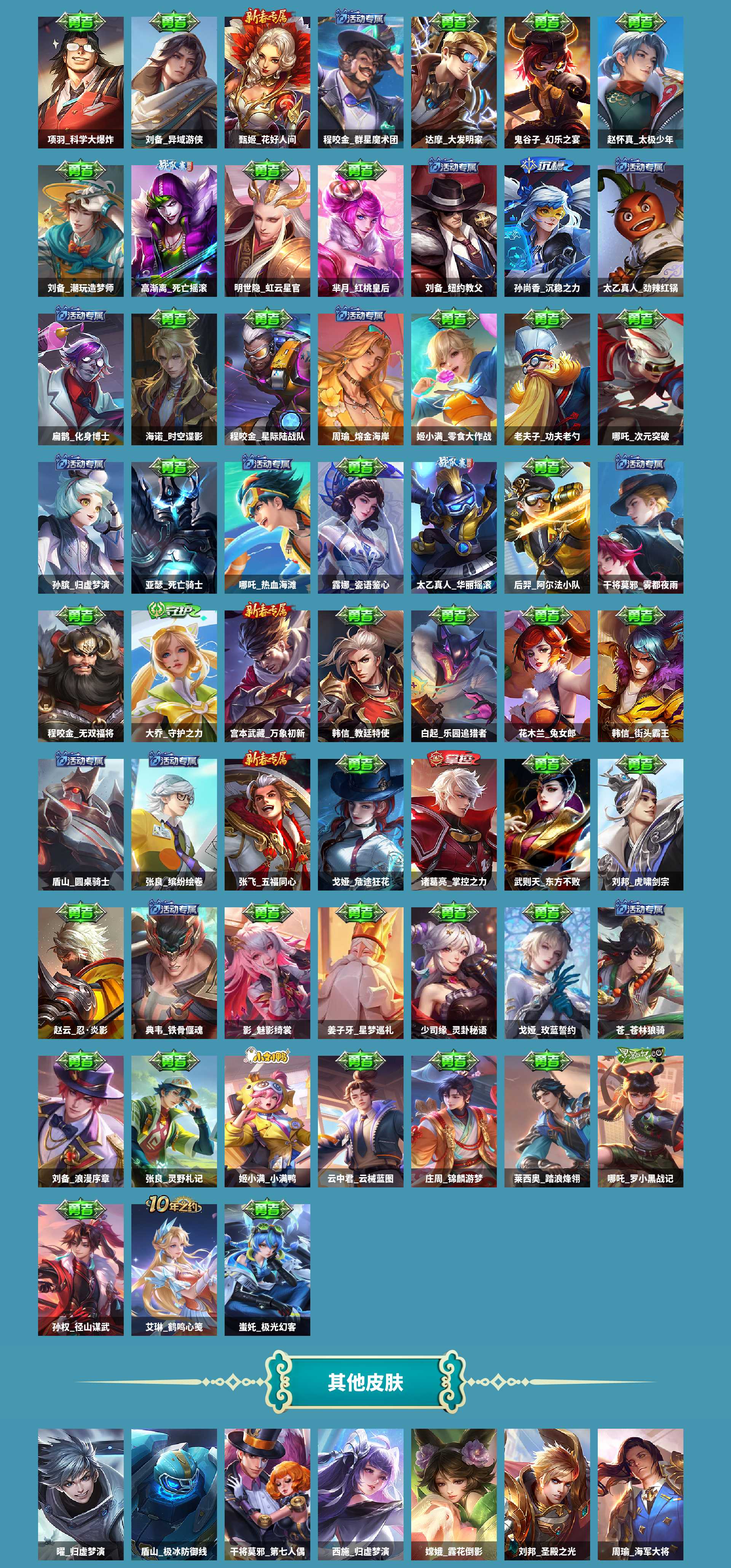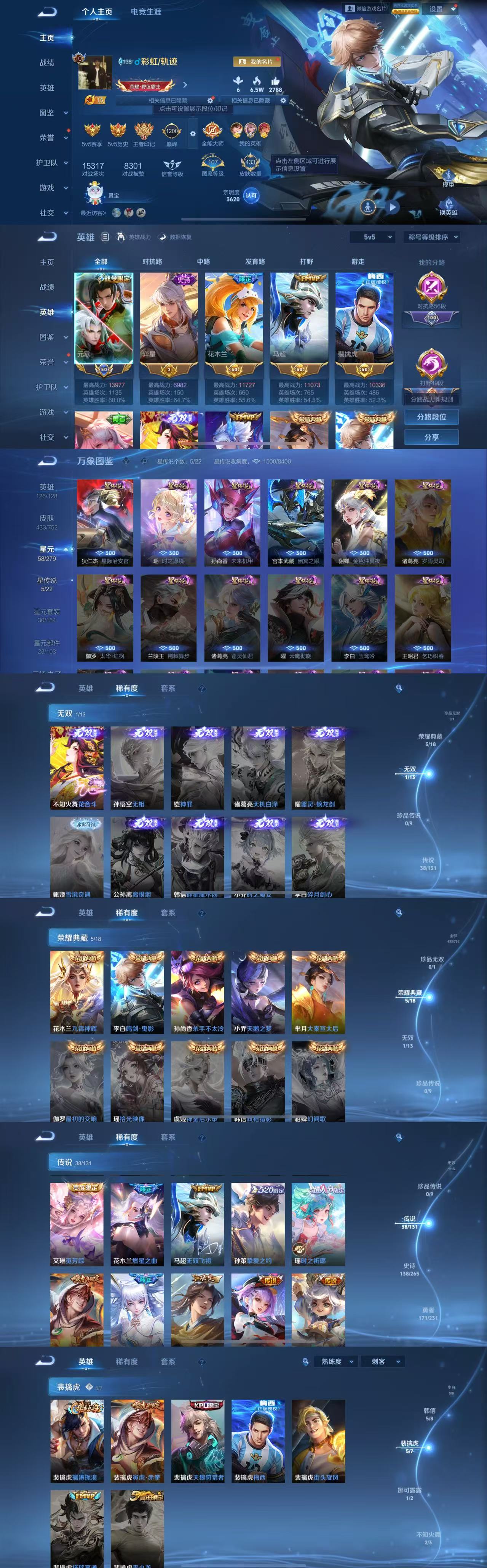 皮肤数433皮肤价值409984无双皮肤数1传说皮肤数38珍