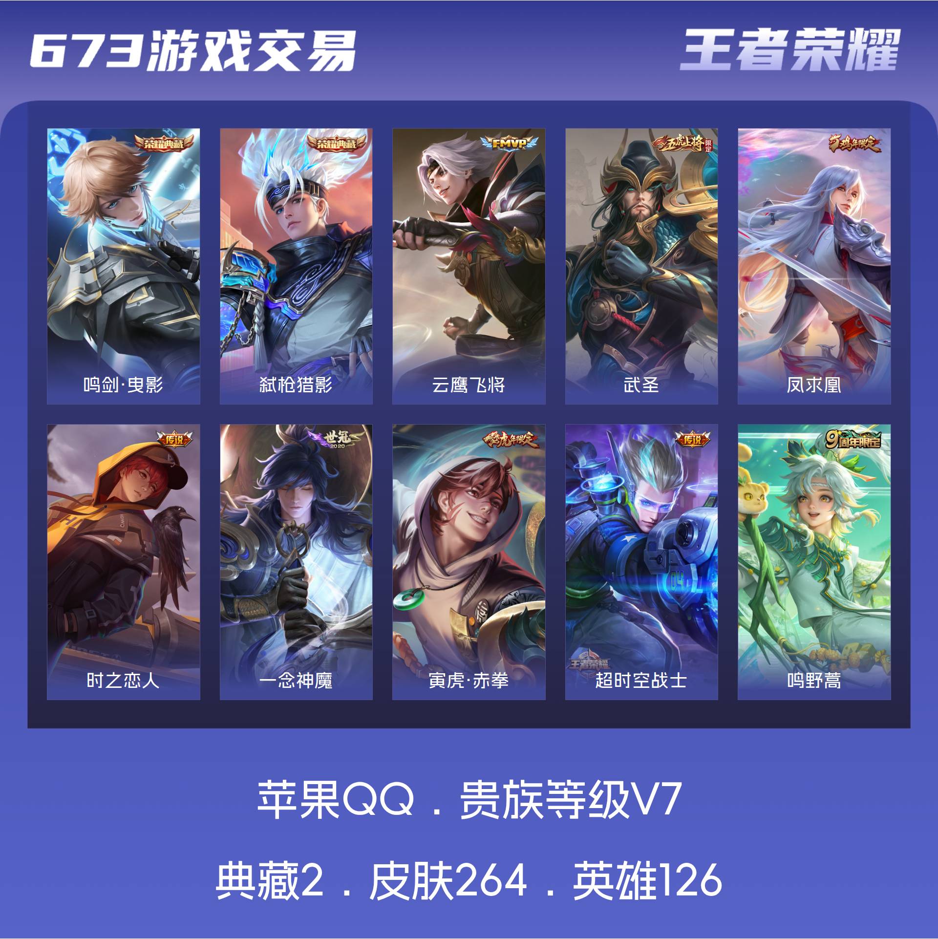 474-【264皮肤2水晶1星元9传说可秒换绑】苹果QQ-126英雄-264皮肤【2水晶】 弑枪猎影 鸣剑·曳影【星元皮肤】星际治安官【传说皮肤】武圣 凤求凰 神树通天 鸣野蒿 超时空战士 一念神魔 时之恋人 寅虎·赤拳 云鹰飞将【史诗皮肤】荣光圣徽 冰锋战神 飞衡 如梦令 一生所爱 龙之律动 神威 至尊宝 石田雨龙 百相守梦 顽趣 山海·玄木吟 魅语 幽灵船长 天狼征服者 功夫厨神 魅力维加斯 猫狗日记 魔术师 鹰眼统帅 圣诞恋歌 冰霜恋舞曲 无限星赏官 鬼剑武藏 逐梦之影 傲雪梅枪 水晶猎龙