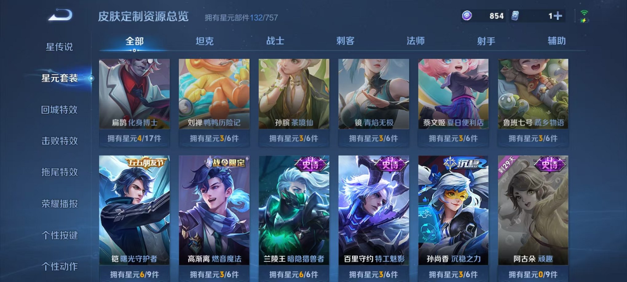 皮肤214 英雄126 永恒钻石 珍品传说1 传说7 其他皮肤71-