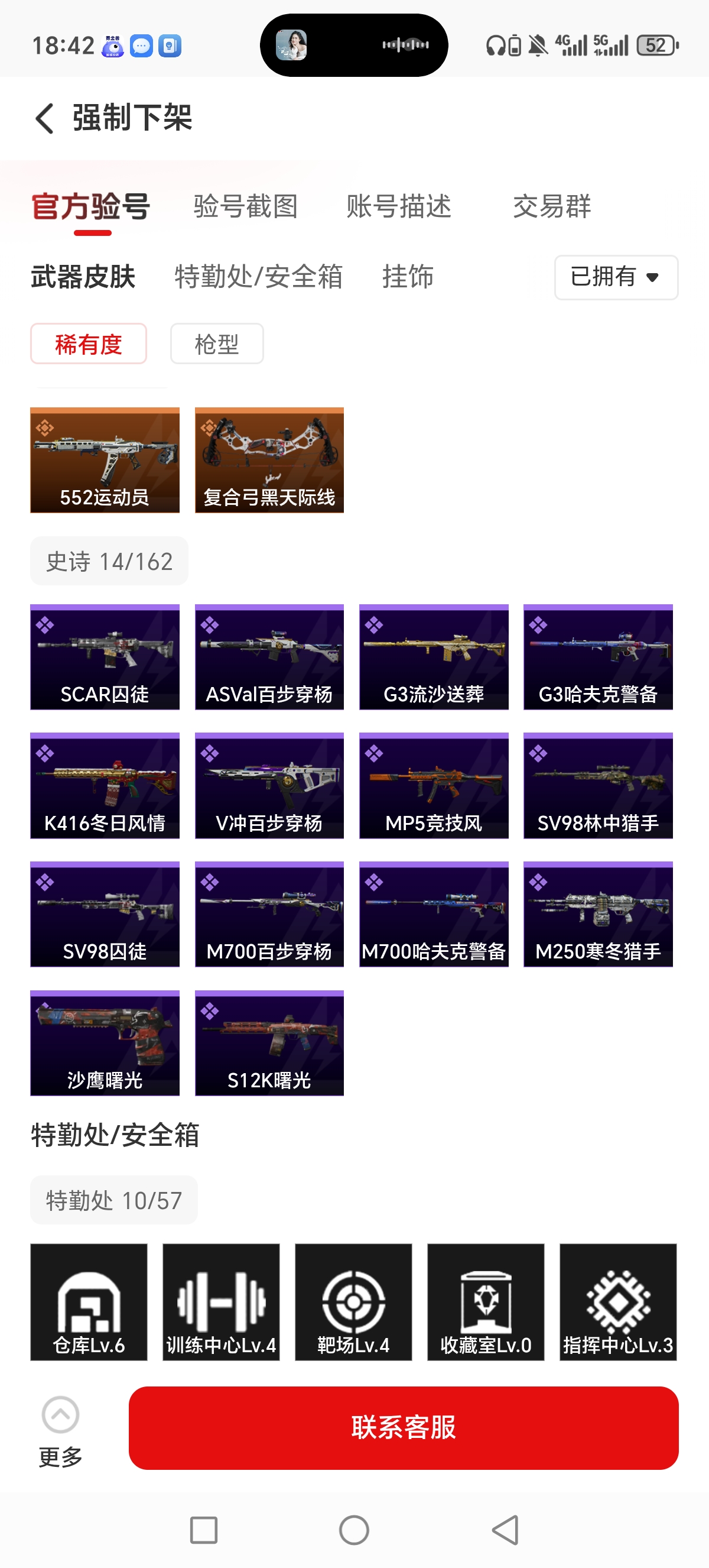 总资产167M,哈夫币4933w,近战1 枪皮数量77,战场等级1军士长, 行动等级60三角洲巅峰