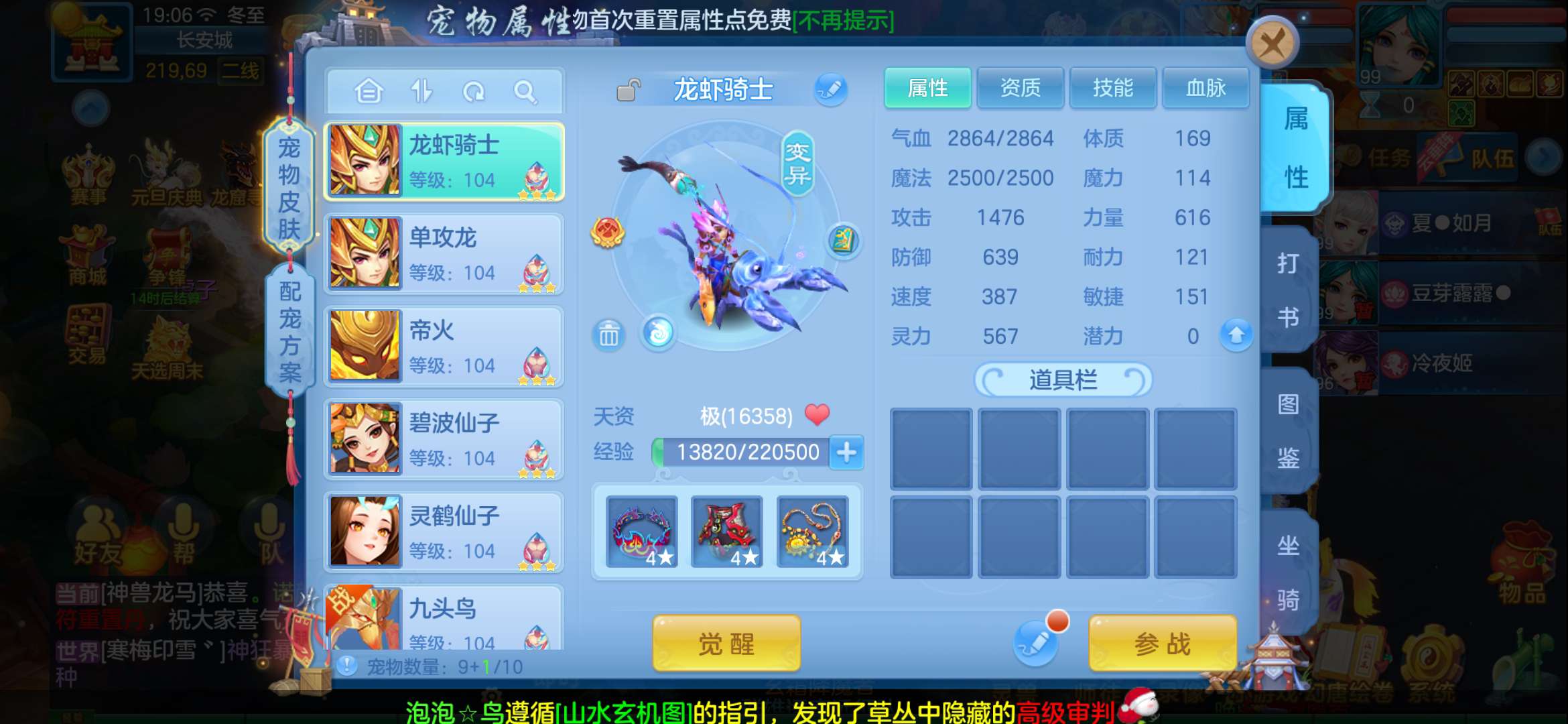 剑气龙虾,隐攻龙虾,隐攻碧波,群法帝火,群法九头鸟,腾云灵鹤,2只幽灵虎