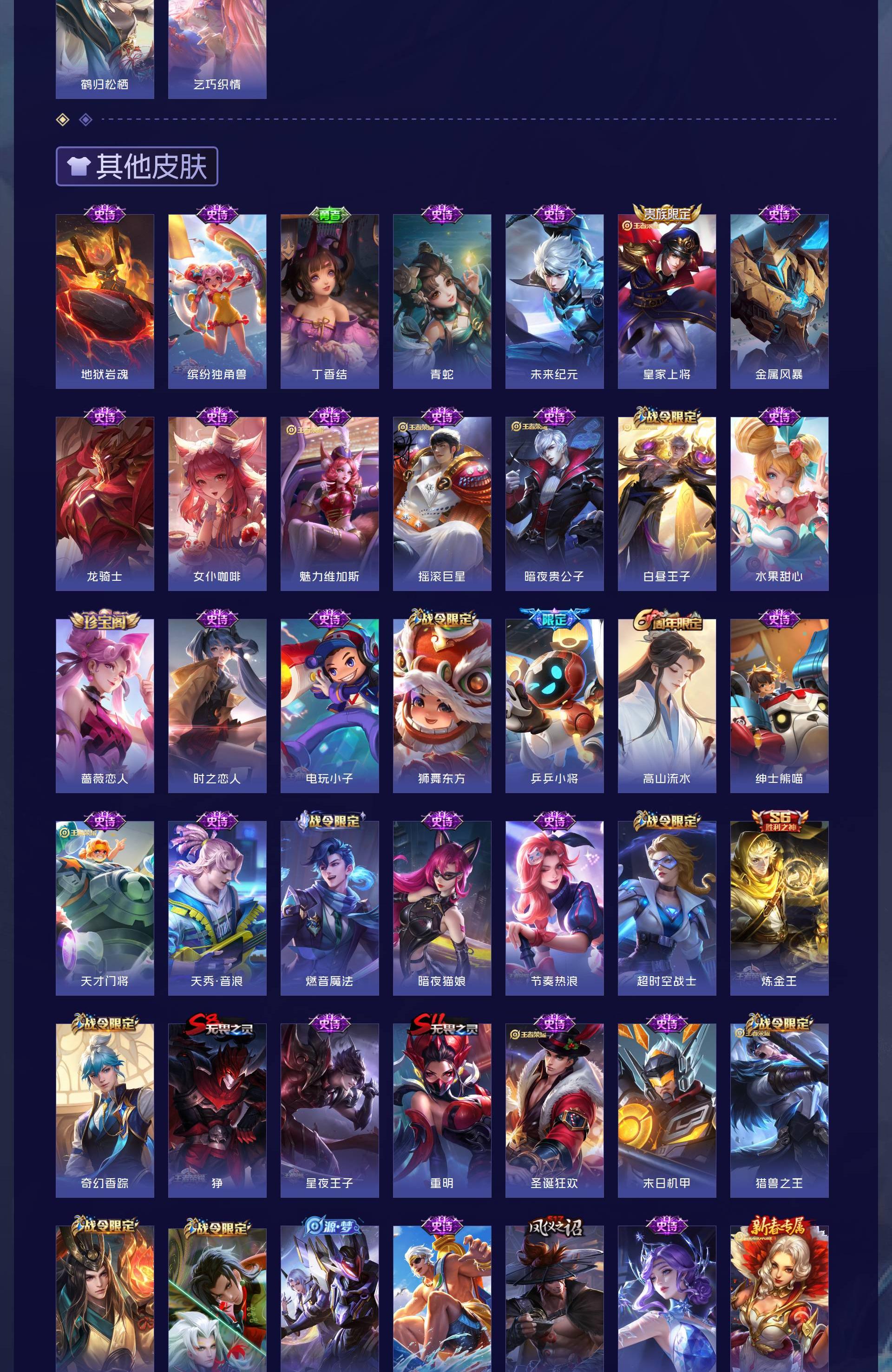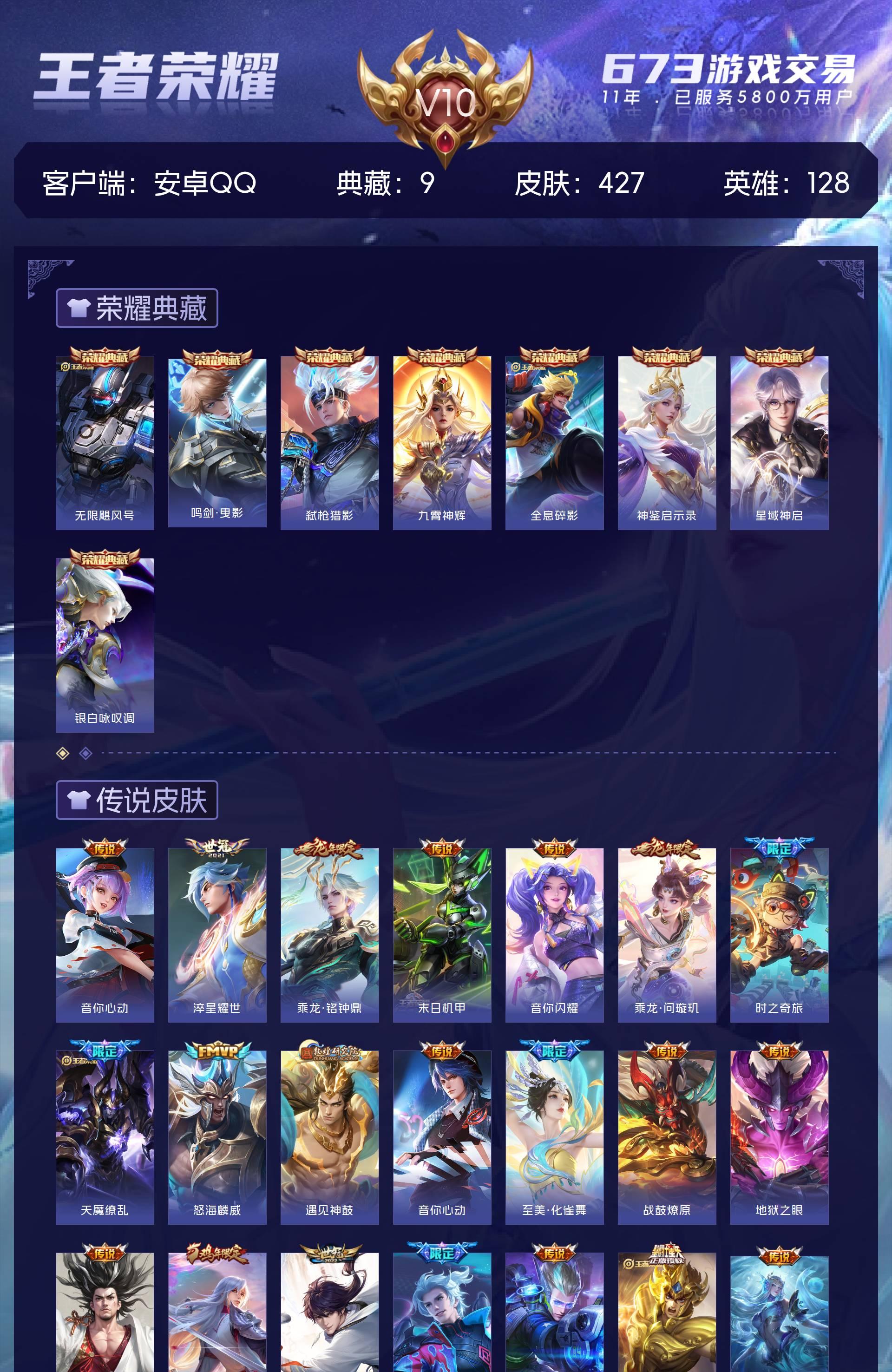 V10 皮肤427 英雄128 永恒钻石 荣耀典藏9 传说65 其他皮肤172