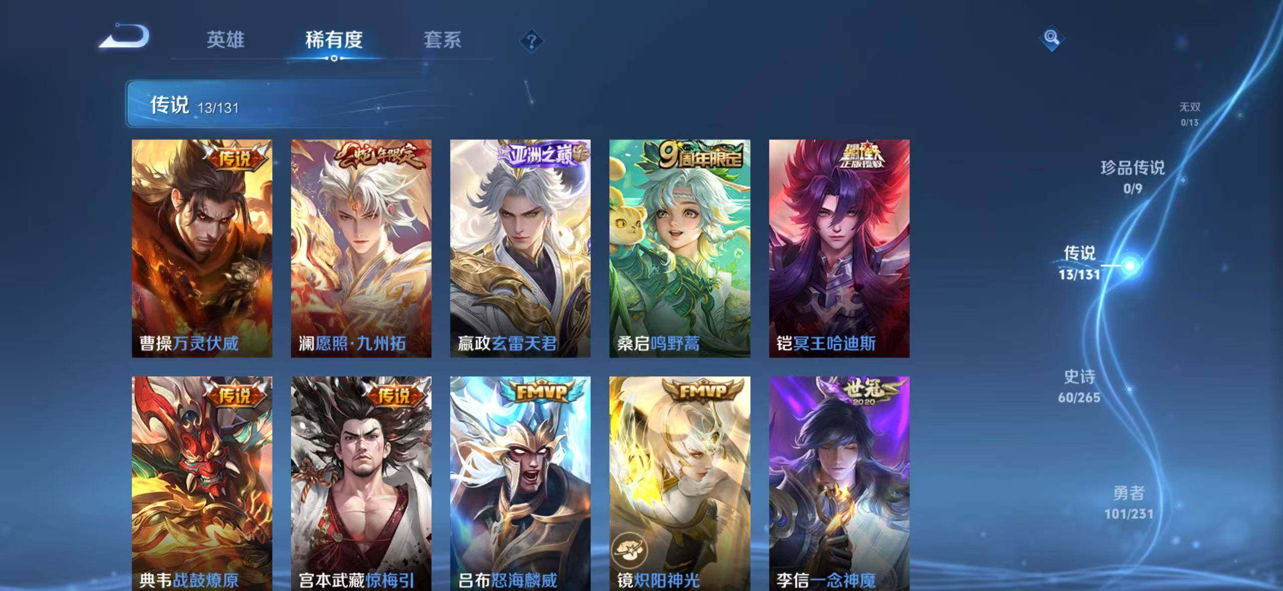 皮肤199 英雄125 荣耀王者 传说13 其他皮肤74-【曹操万灵伏威 铠冥王哈迪斯 宫本武藏惊梅引 吕布怒海麟威199皮13传说外加
