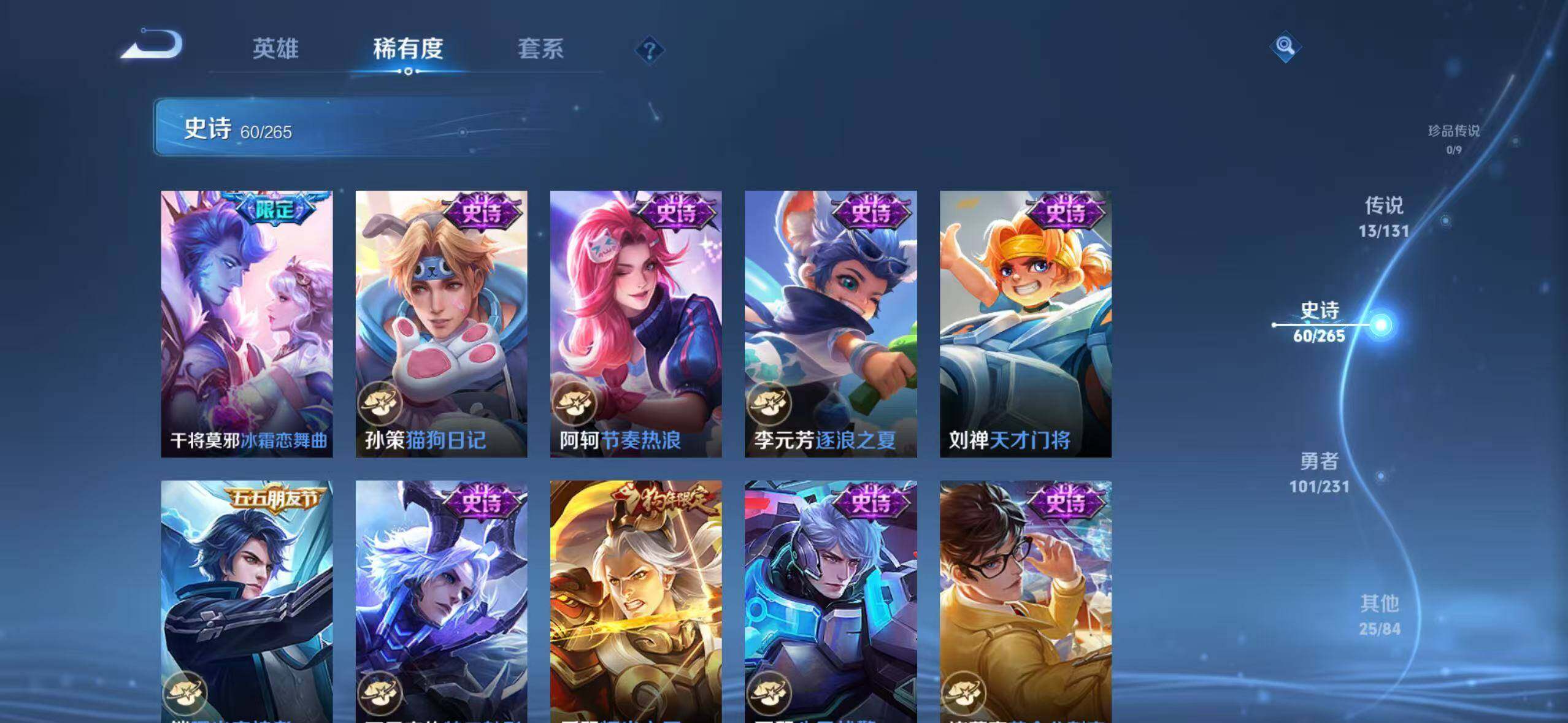 【传说皮肤】:曹操万灵伏威,澜愿照九州拓,嬴政玄雷天君,桑启鸣野蒿,铠冥王哈迪斯,典韦战鼓燎原,宫本武藏惊梅引,吕布怒海麟威,镜炽阳神光,李信一念神