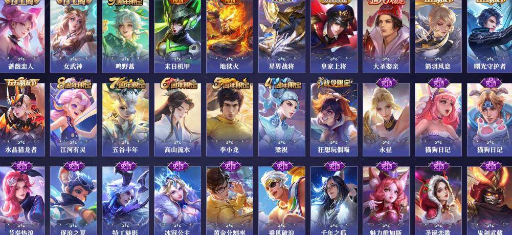 【限定皮肤】:姜子牙天穹之誓,狄仁杰阴阳师,赵云皇家上将,孙尚香蔷薇恋人,庄周高山流水,高渐离死亡摇滚,狄仁杰万华元夜,项羽海滩派对,老夫子醍醐杖,程咬金演武夺筹,孙悟空大圣娶亲,李元芳云中旅人,钟馗驱傩正仪,雅典娜单词大作战,雅典娜