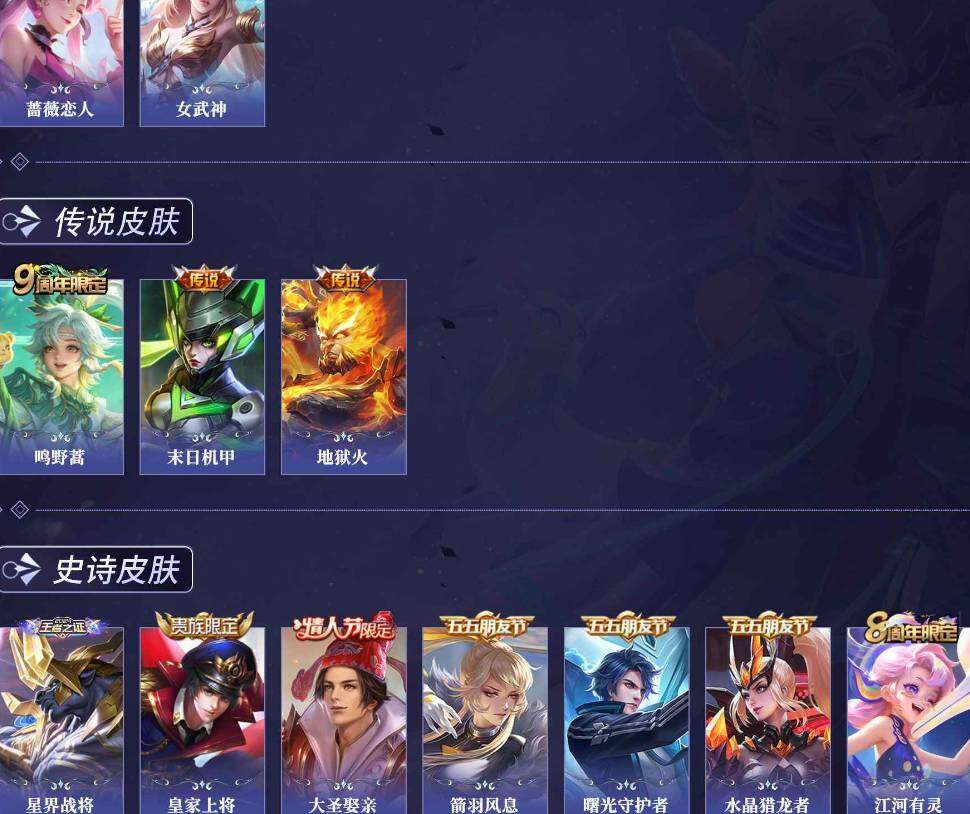 【传说皮肤】:桑启鸣野蒿,孙尚香末日机甲,孙悟空地狱火
