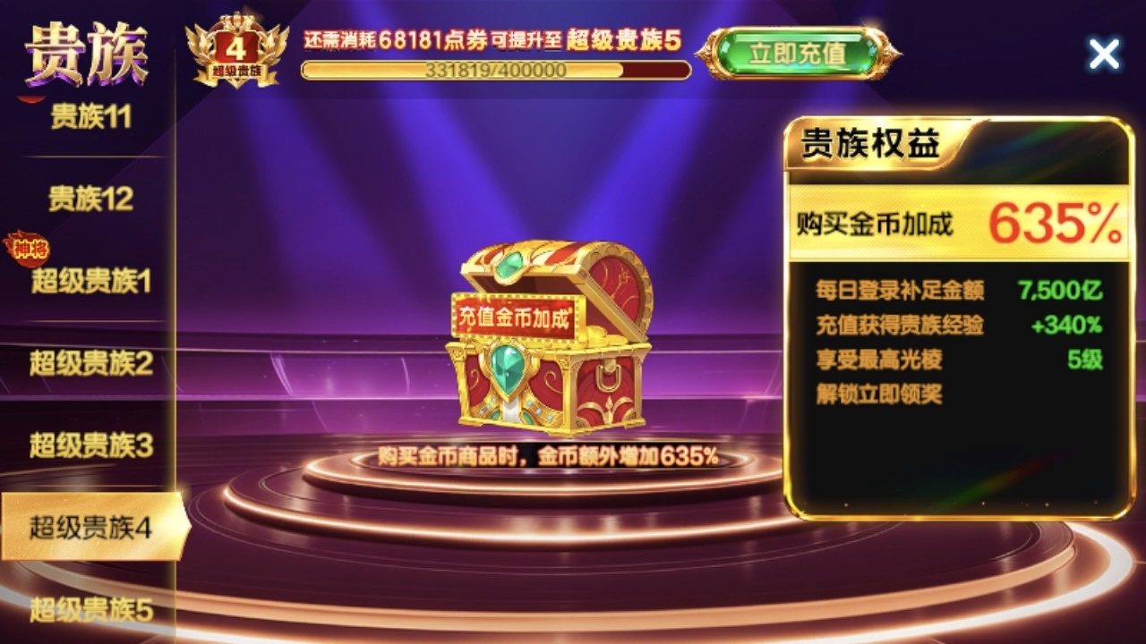 超级贵族4快超5了无限火力11亿炮,脱坑了低价出,送永久包赔
