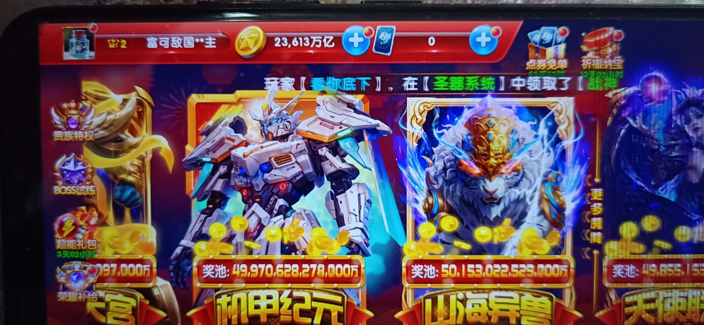 无绑v2 5000炮 23600万亿 狂暴2800 巅峰 15 道具充足上线领翅膀