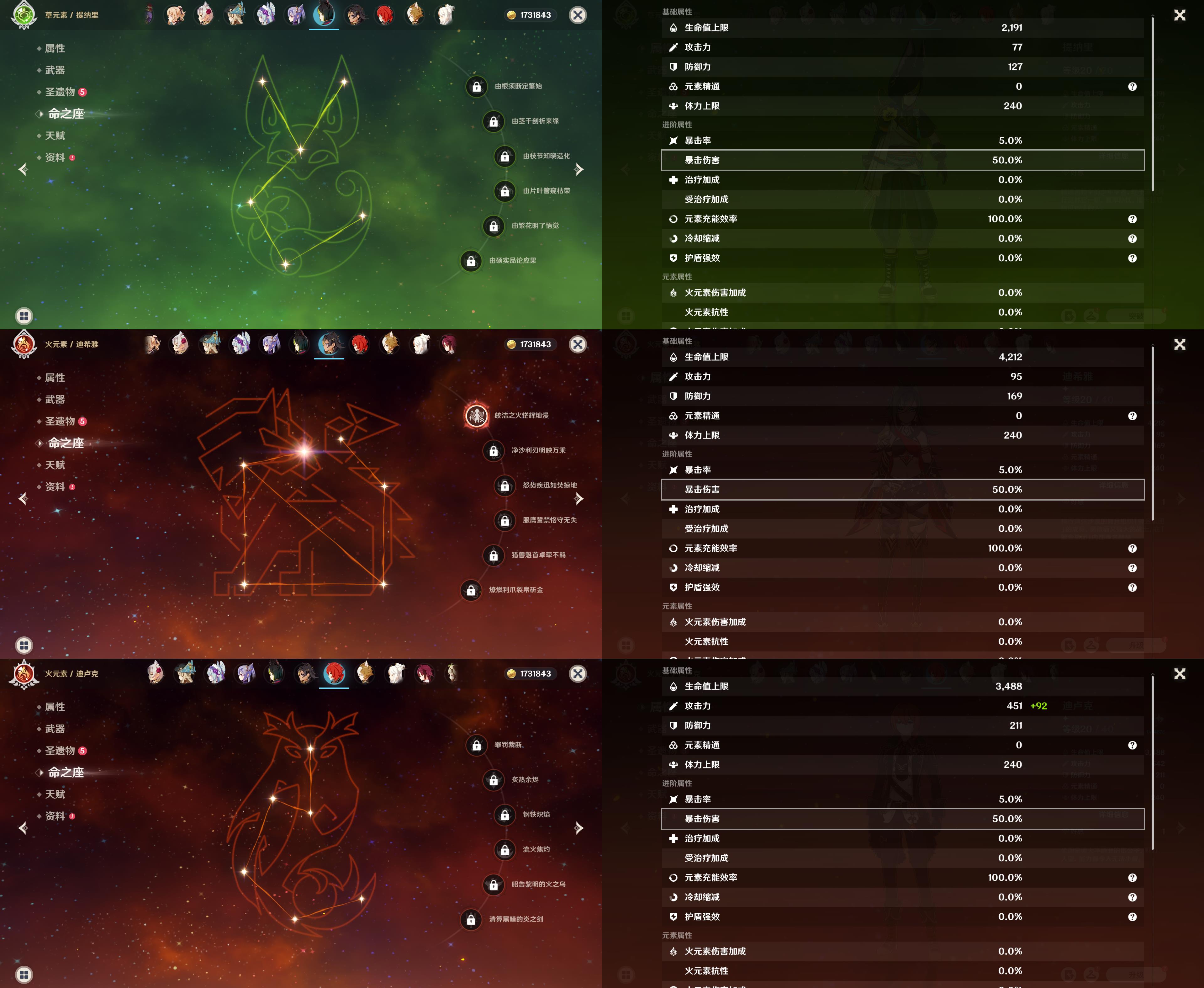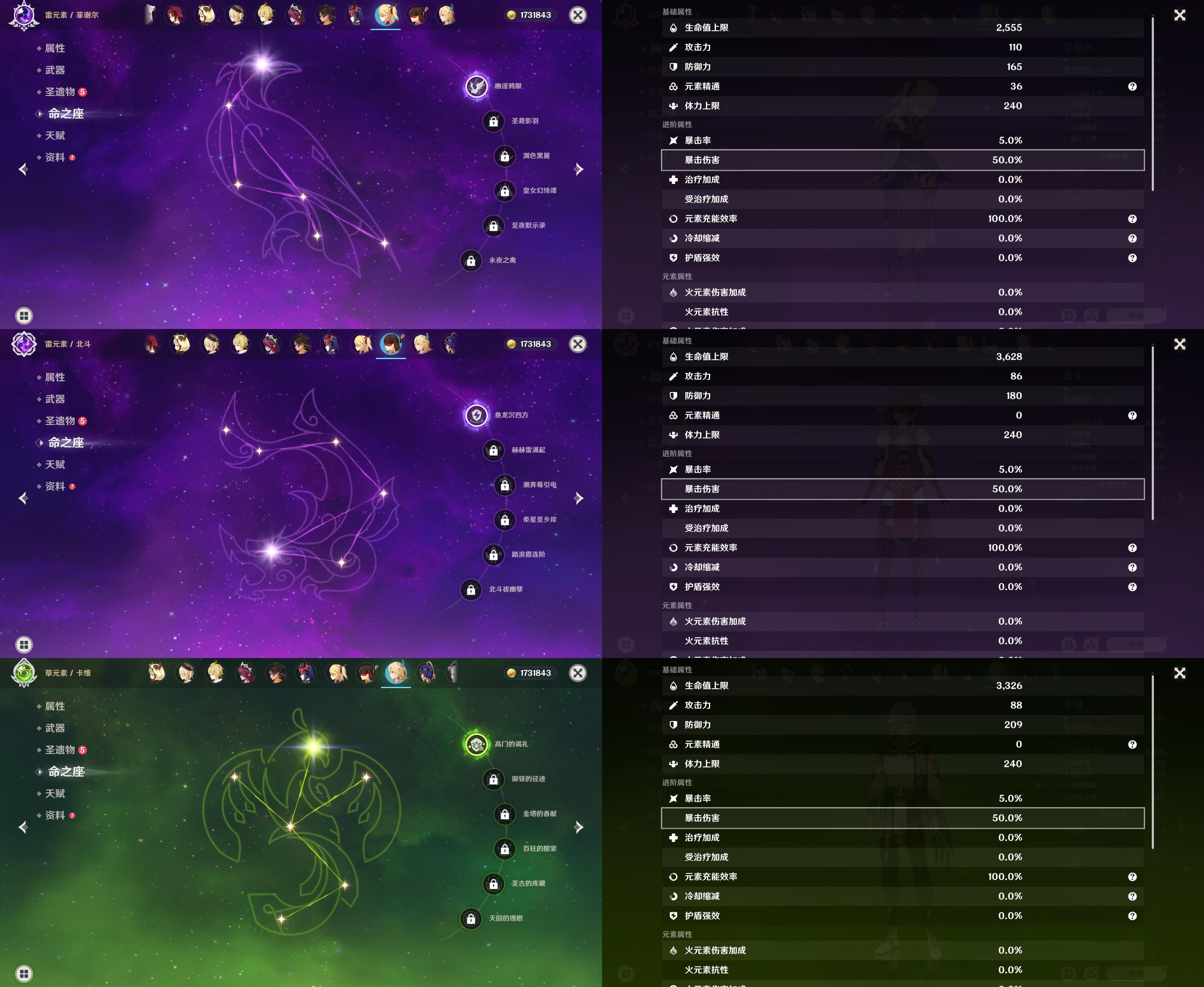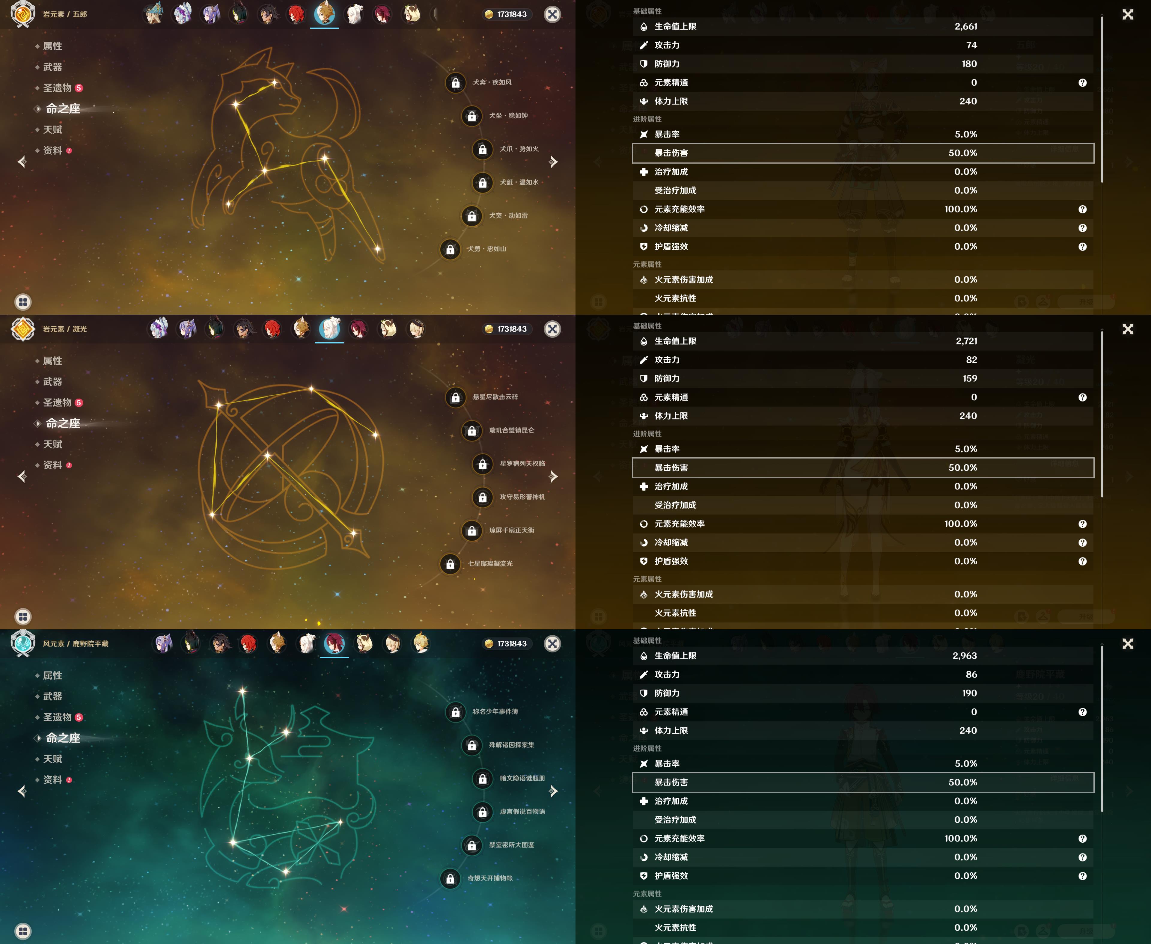 五星角色: