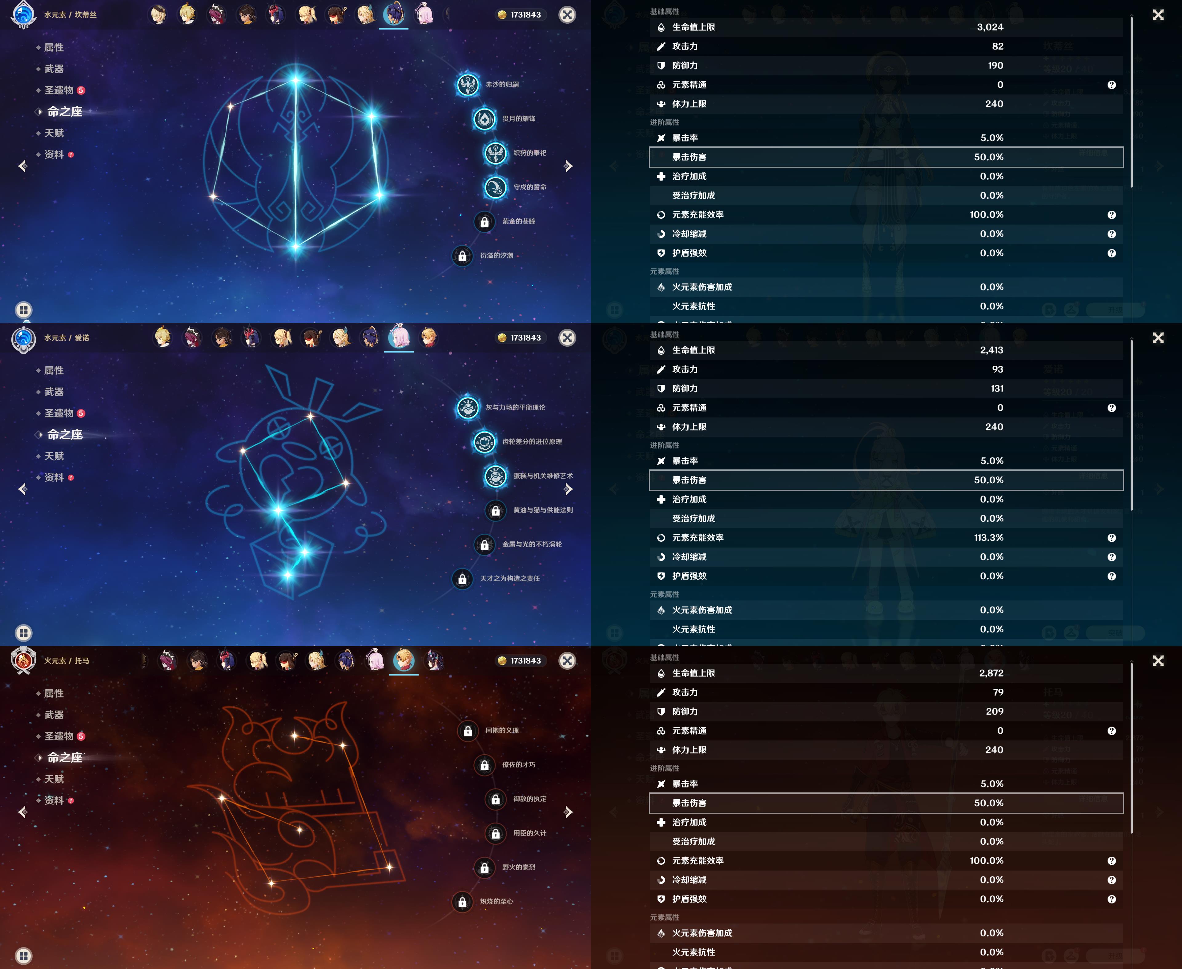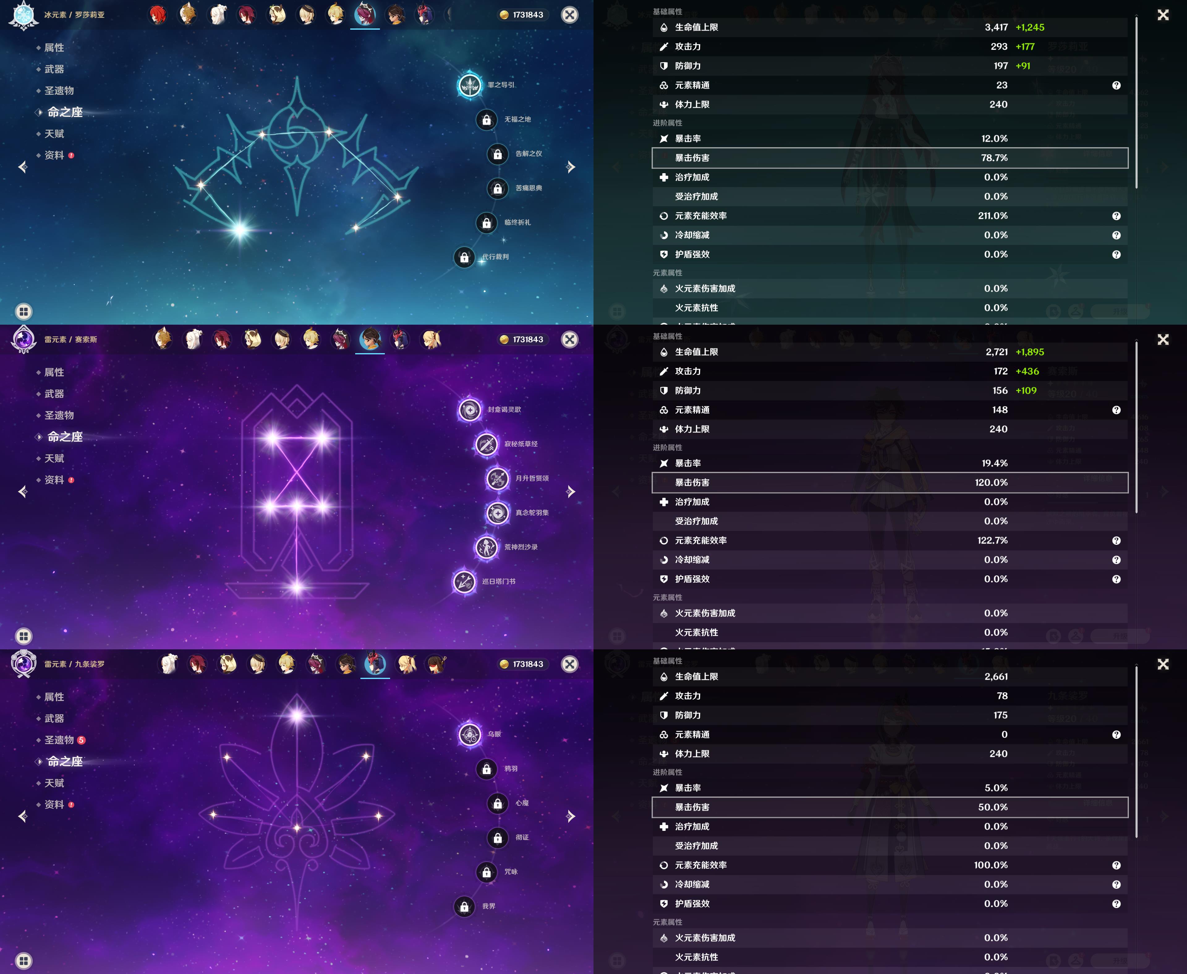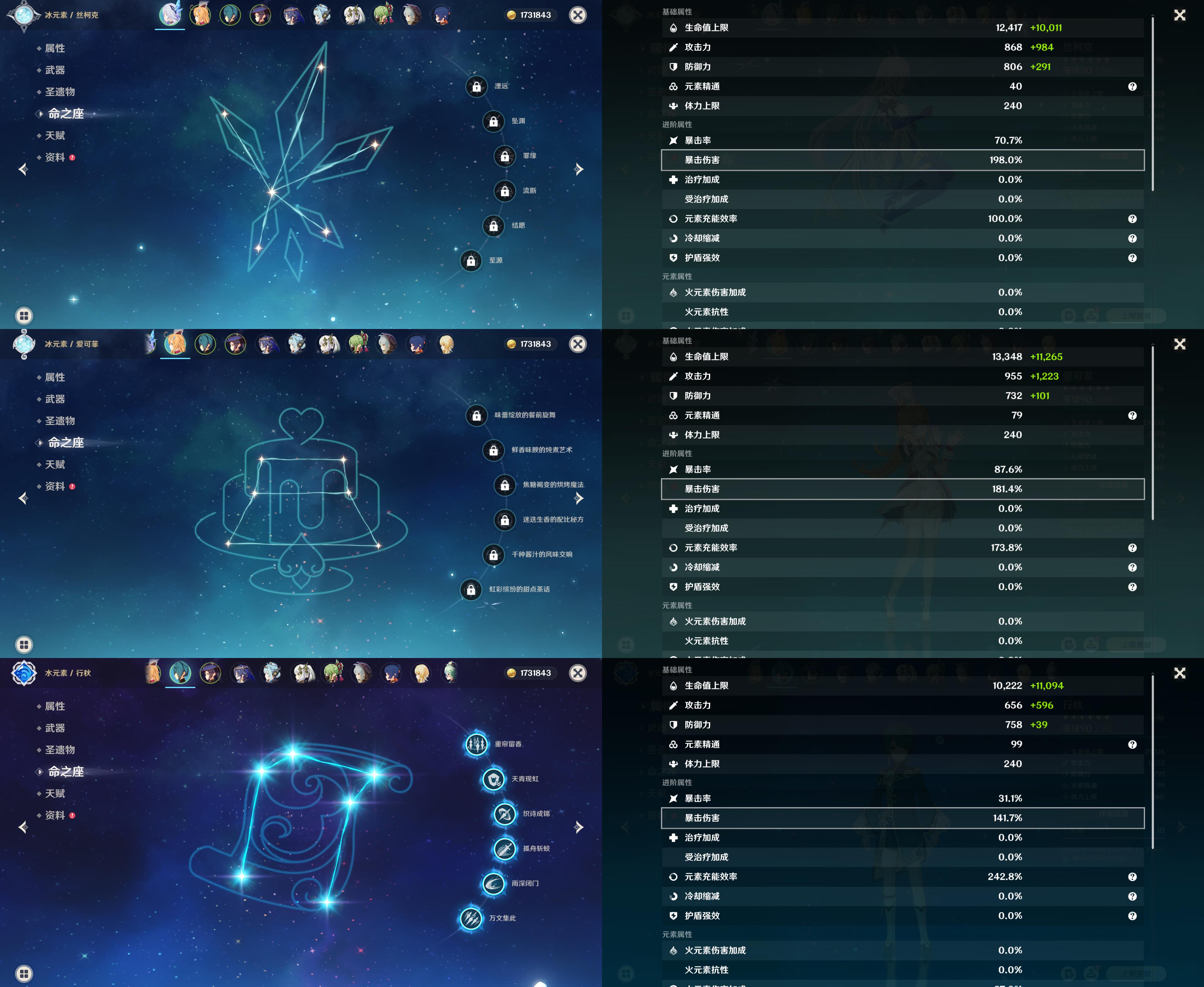 56级/26黄/女主/12个五星角色/5个五星武器/0命丝柯克