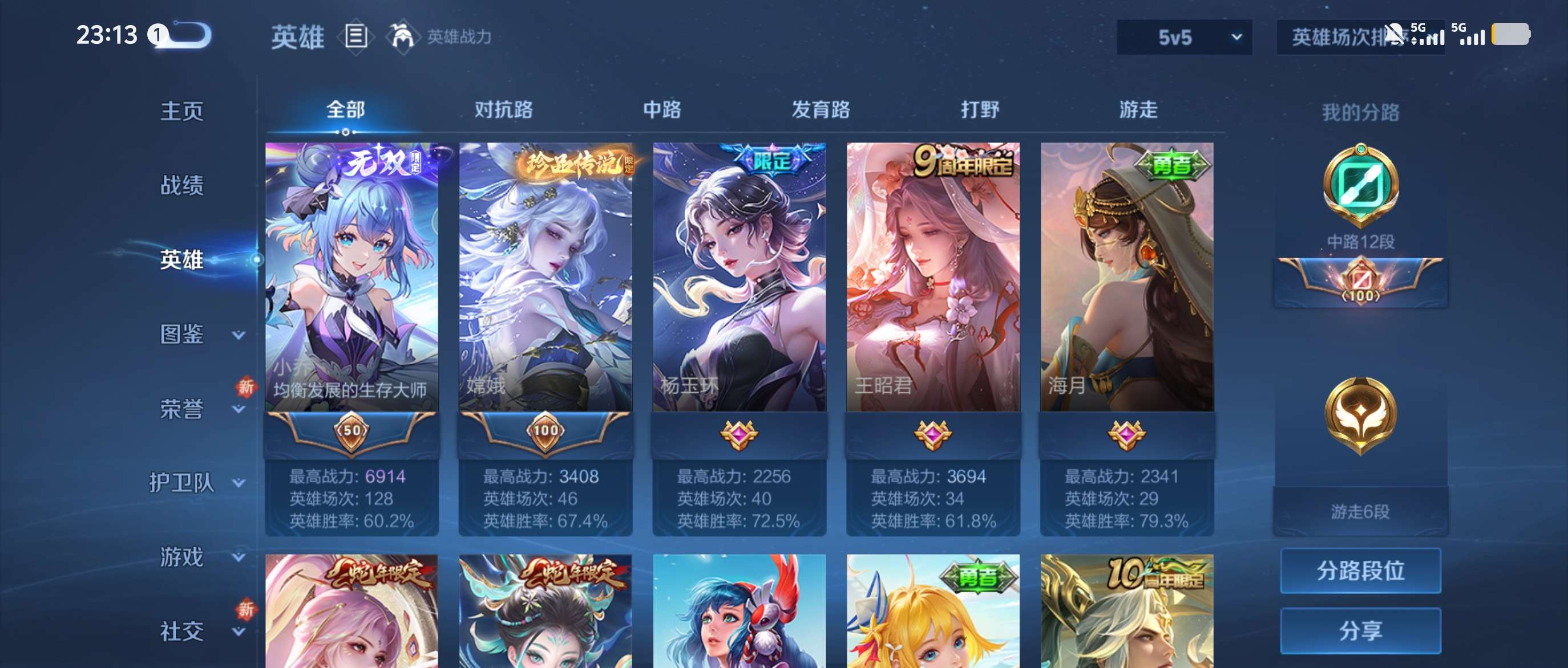 皮肤81 英雄86 至圣王者 无双皮肤1 珍品传说1 传说9 其他皮肤19-高胜率小号女生的中单标配