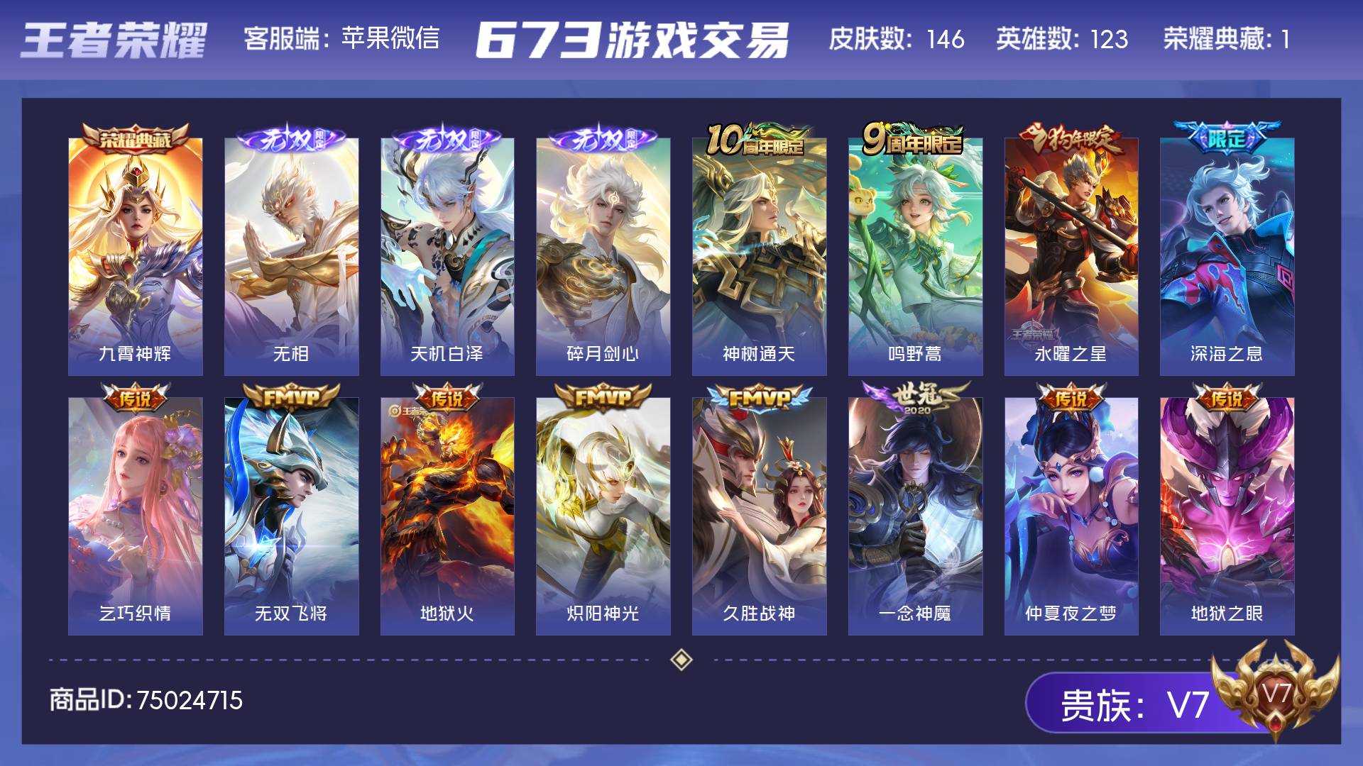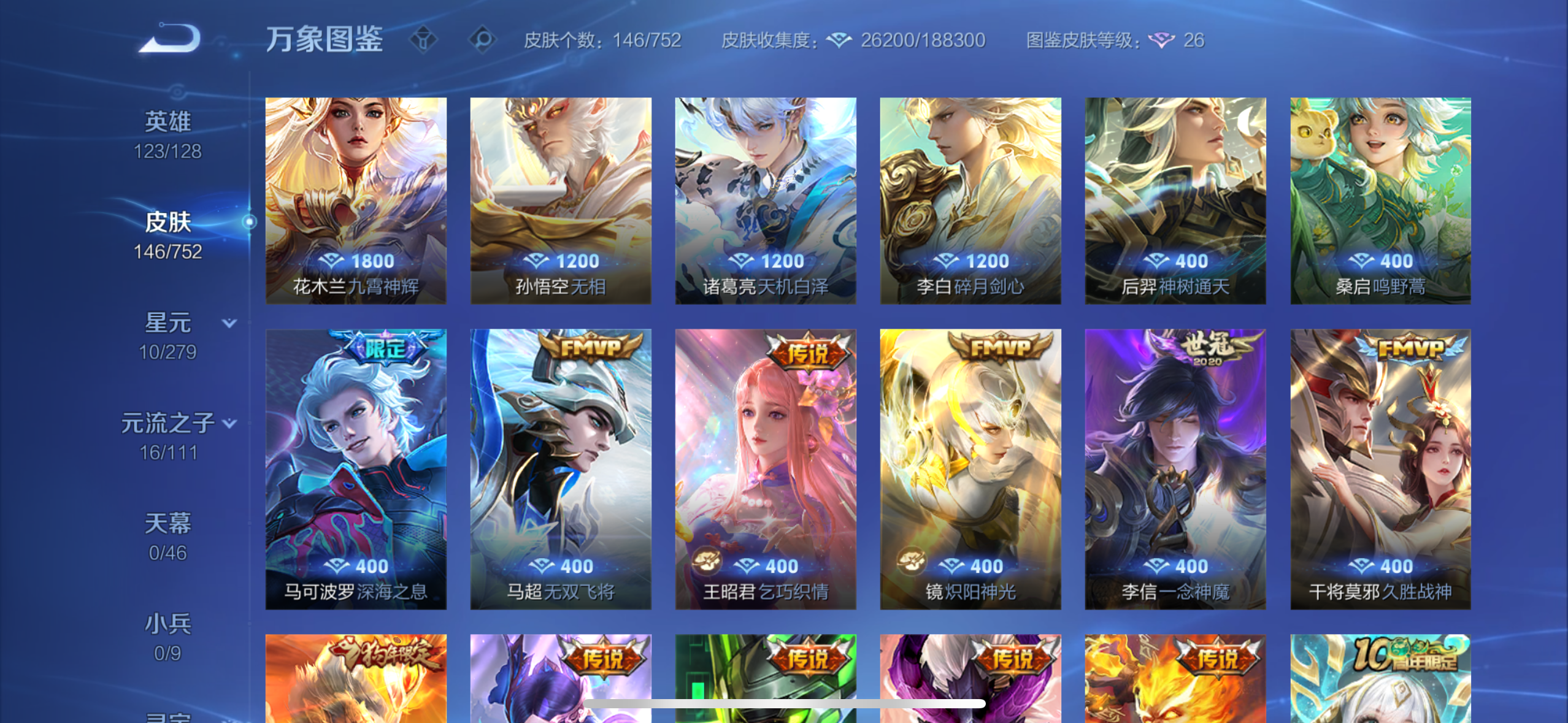 V7 皮肤146 英雄123 荣耀王者 荣耀典藏1 无双皮肤3 传说13 其他皮肤48
