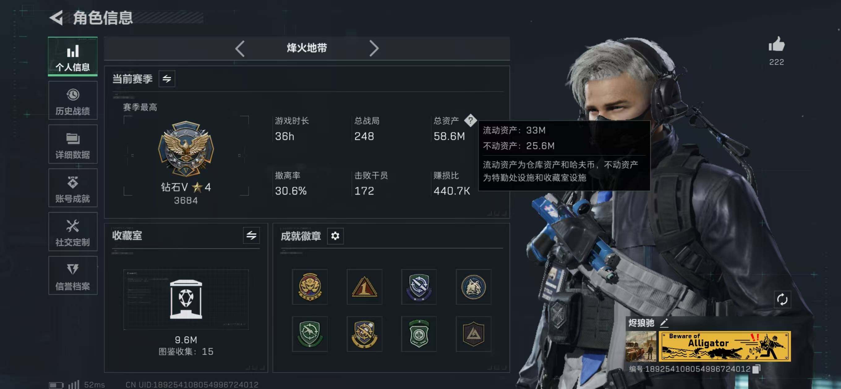 58m总资产-667k哈伏币-60烽火等级-钻石-50战场等级-统帅 YW0013