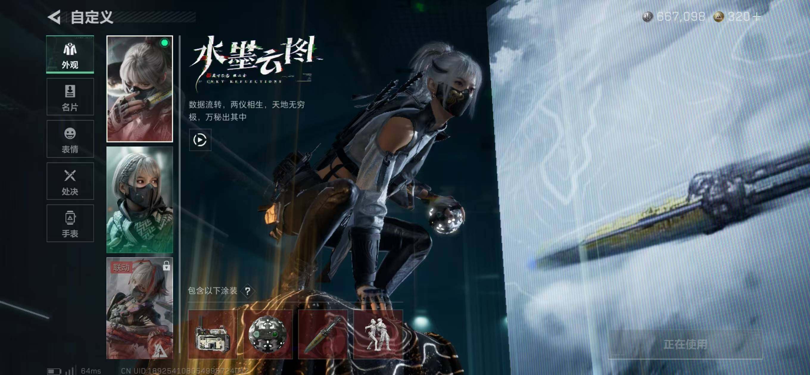 【干员外观】:红狼-蚀金玫瑰,骇爪-水墨云图,露娜-黑·天际线,威龙-壮志凌云,威龙-飞虎,蜂医-送葬人·无题密令,无名-夜鹰