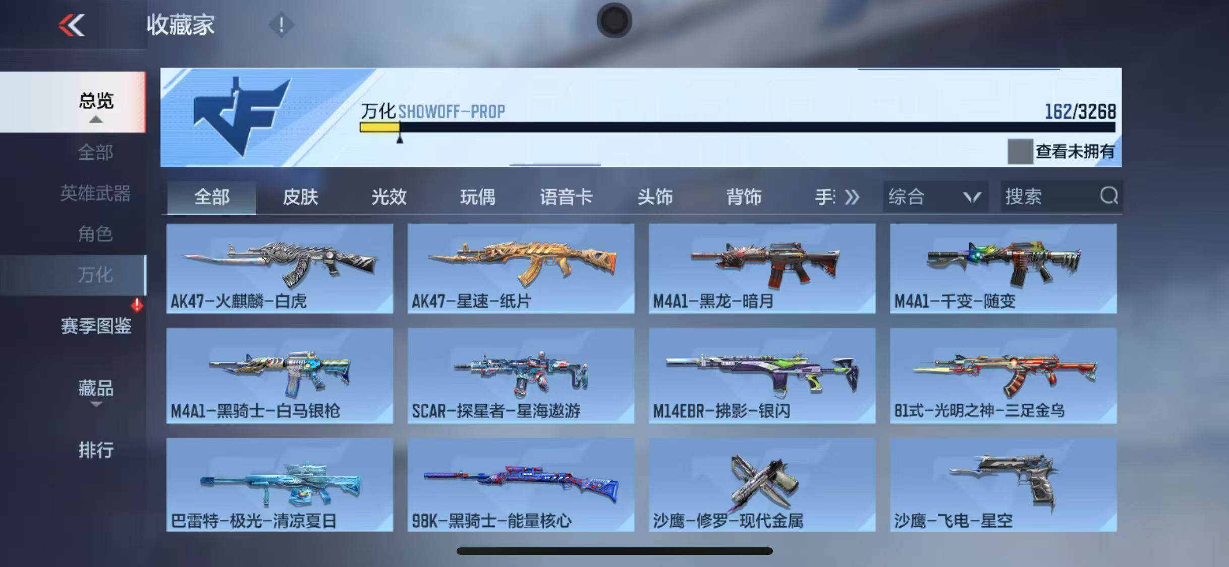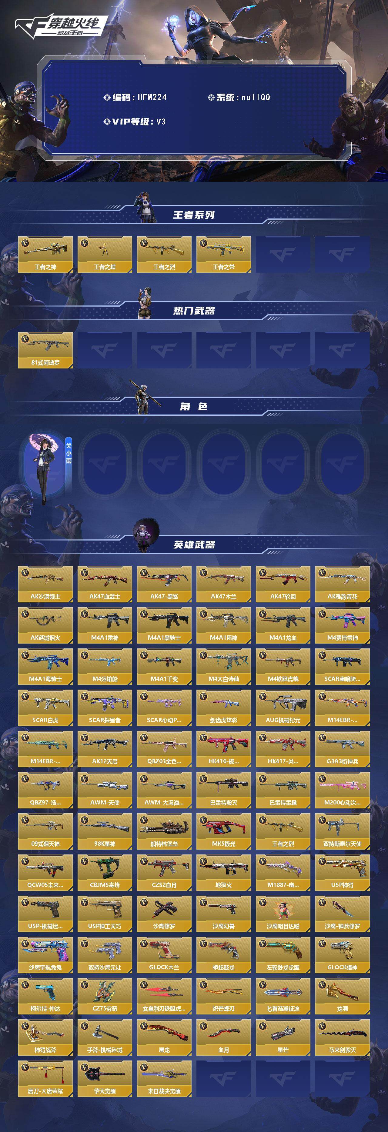 王神/王烈/王蝶/王誉/巴雷特雷霆/AK47-沙漠领主,AK47-血武士,AK47-黑鲨,AK47-木兰,AK47-轮回,AK47-雅韵青花,AK47-谜城烟火,M4A1-雷神,M4A1-黑骑士,M4A1-死神,M4A1-龙血,M4A1-赛博雷神,M4A1-海骑士,M4A1-运输船,M4A1-千变,M4A1-太白诗仙,M4A1-铁胆虎魄,SCAR-幽暗骑士,SCAR Light-白虎,SCAR-