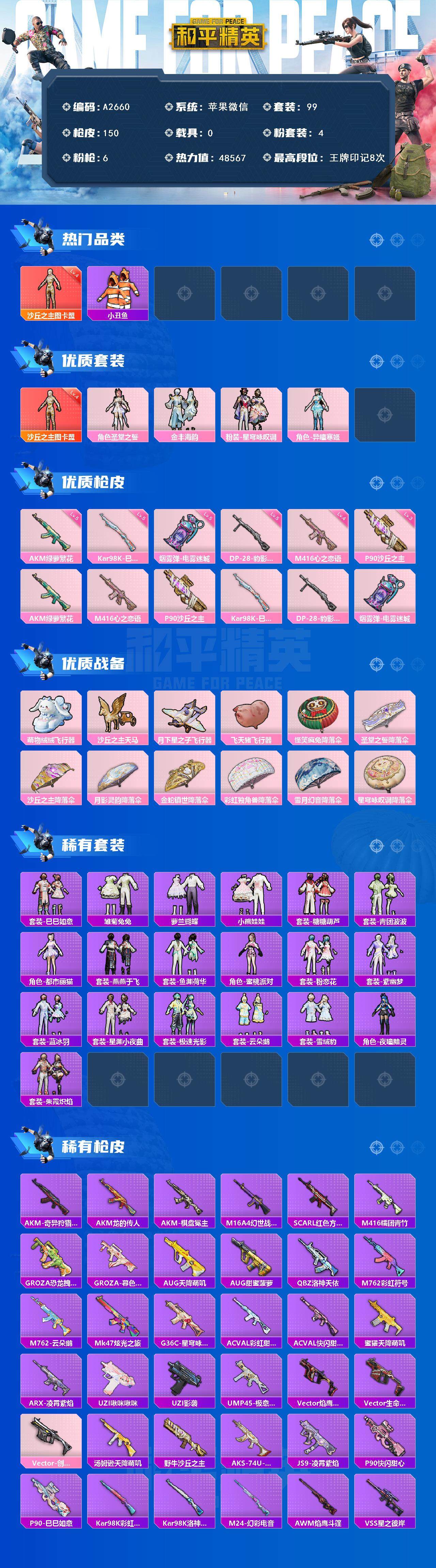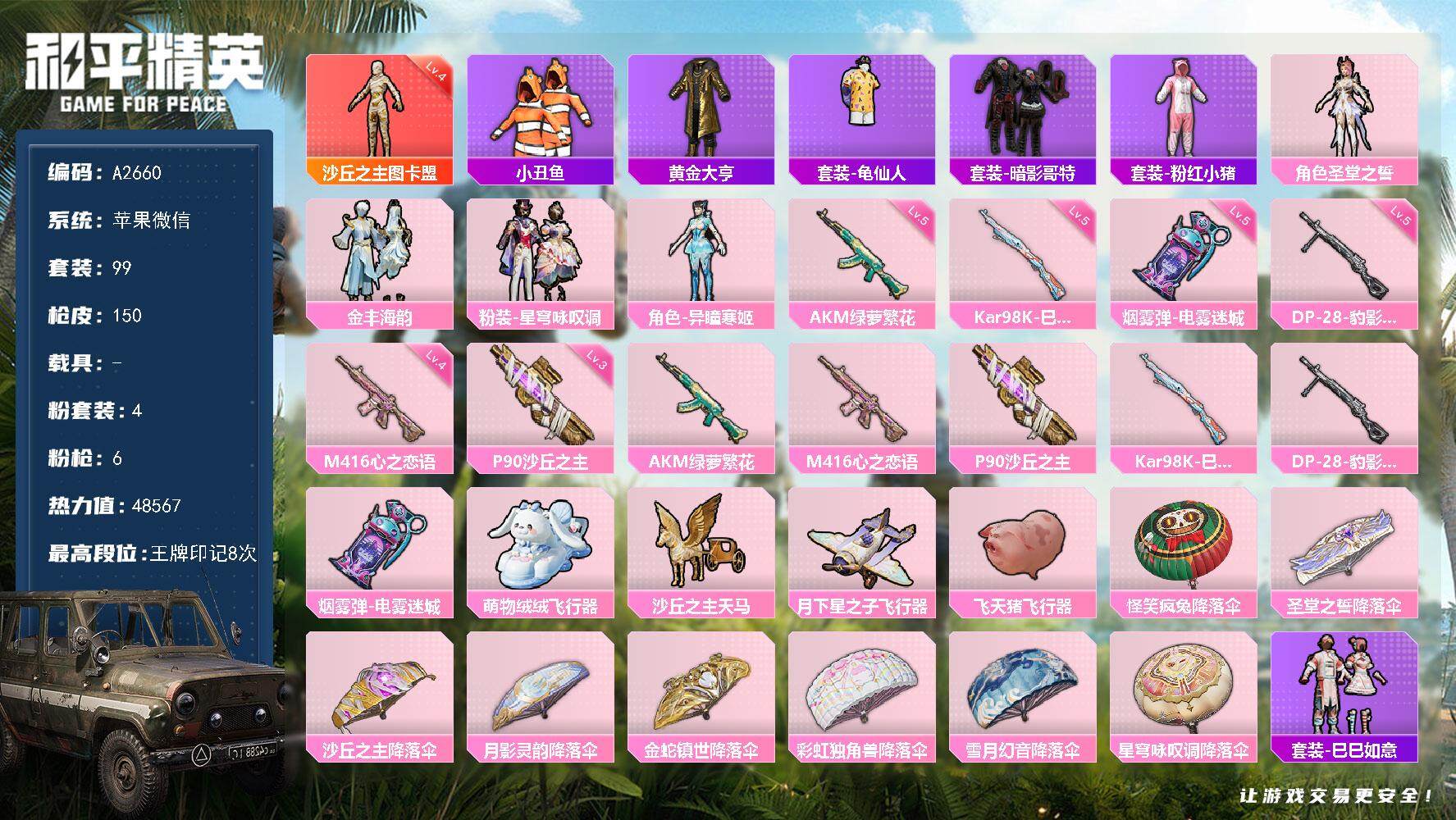 [苹果 微信-1神装-4粉装-6特效枪-6粉色飞行器-48567热力值-8王牌