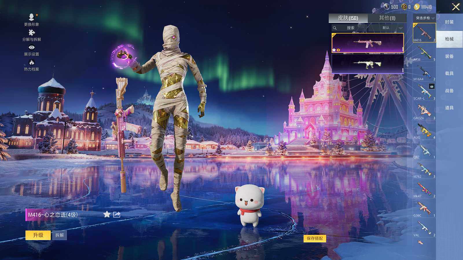 [苹果 微信-1神装-4粉装-6特效枪-6粉色飞行器-48567热力值-8王牌印记-99套装-150枪皮 图卡盟(四级) 红眼罩 M416-心之恋语(四级)]