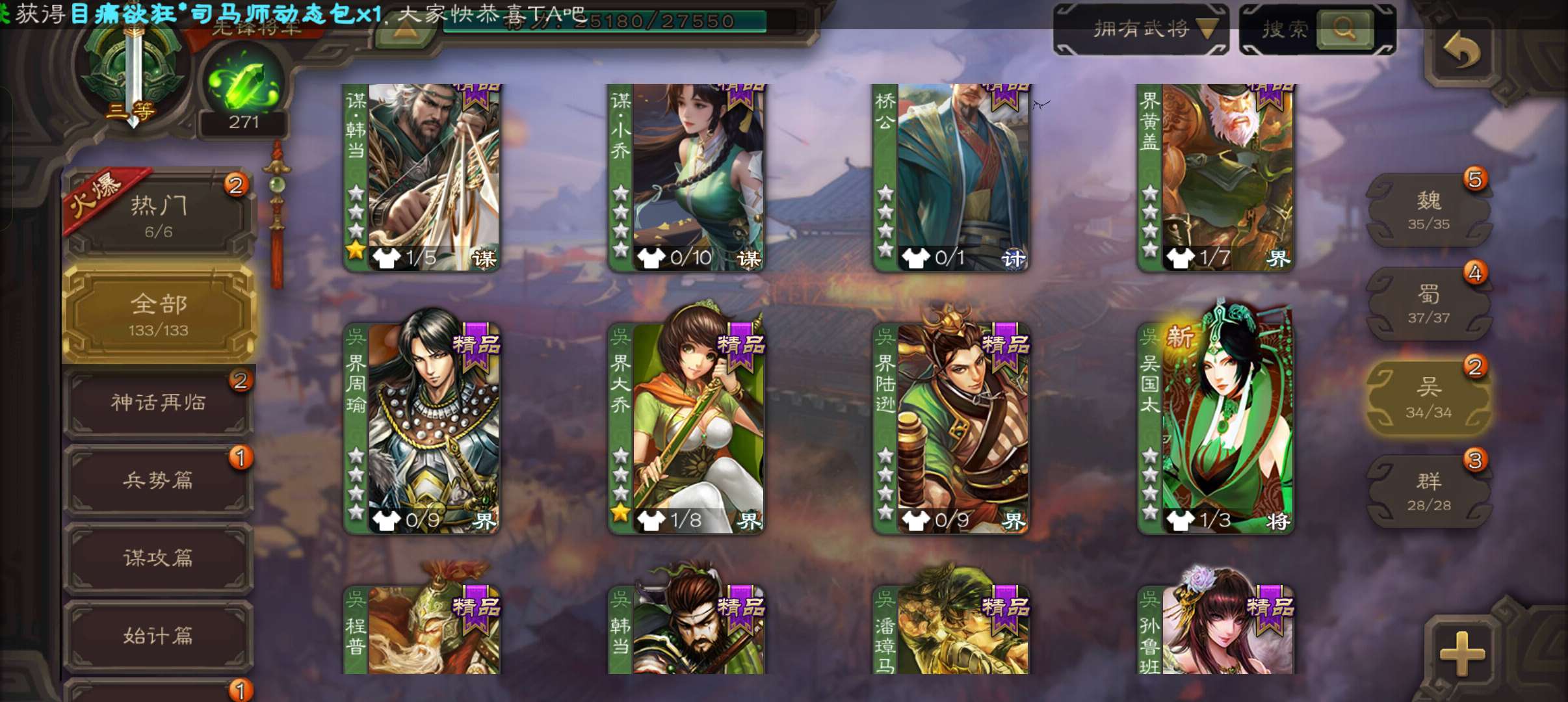 5.2万豆,回廊动白马沙摩柯谯周3史诗,动态界大乔甘夫人谋韩当谋小乔桥公势陈祗133将