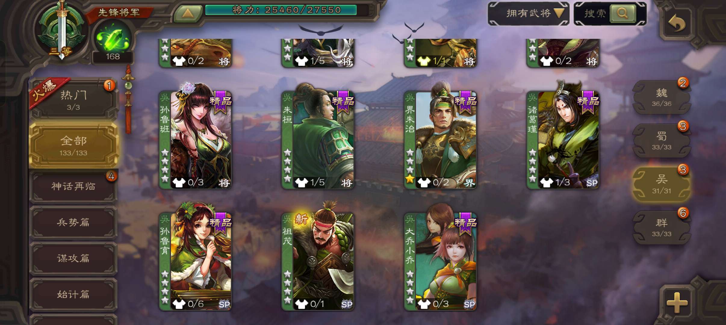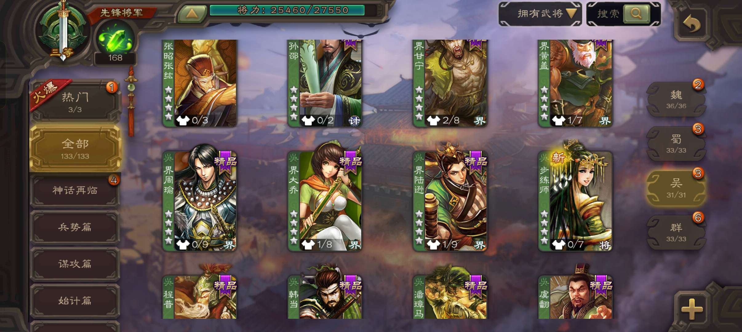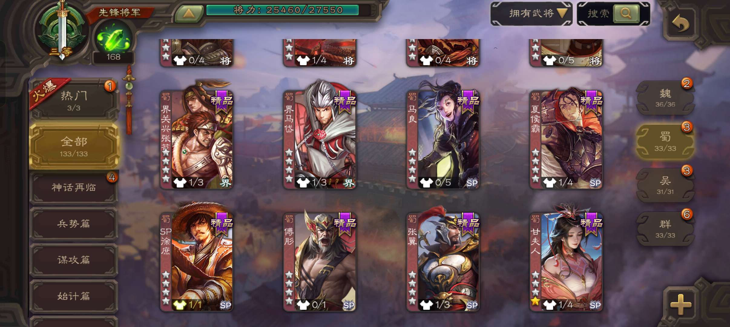 6.4万豆,回廊动白马界钟会左慈3史诗先锋,甘夫人张翼界朱治133将,2万羽毛
