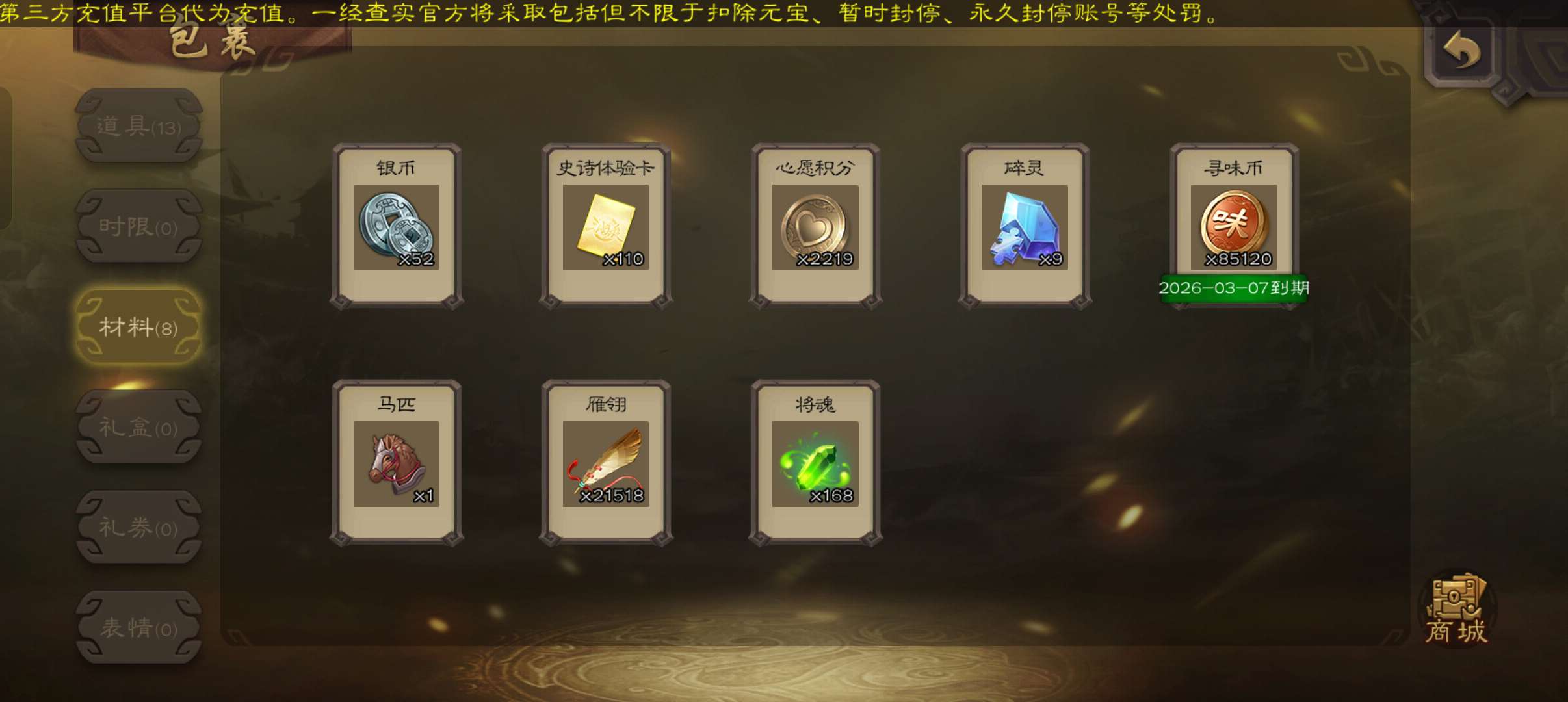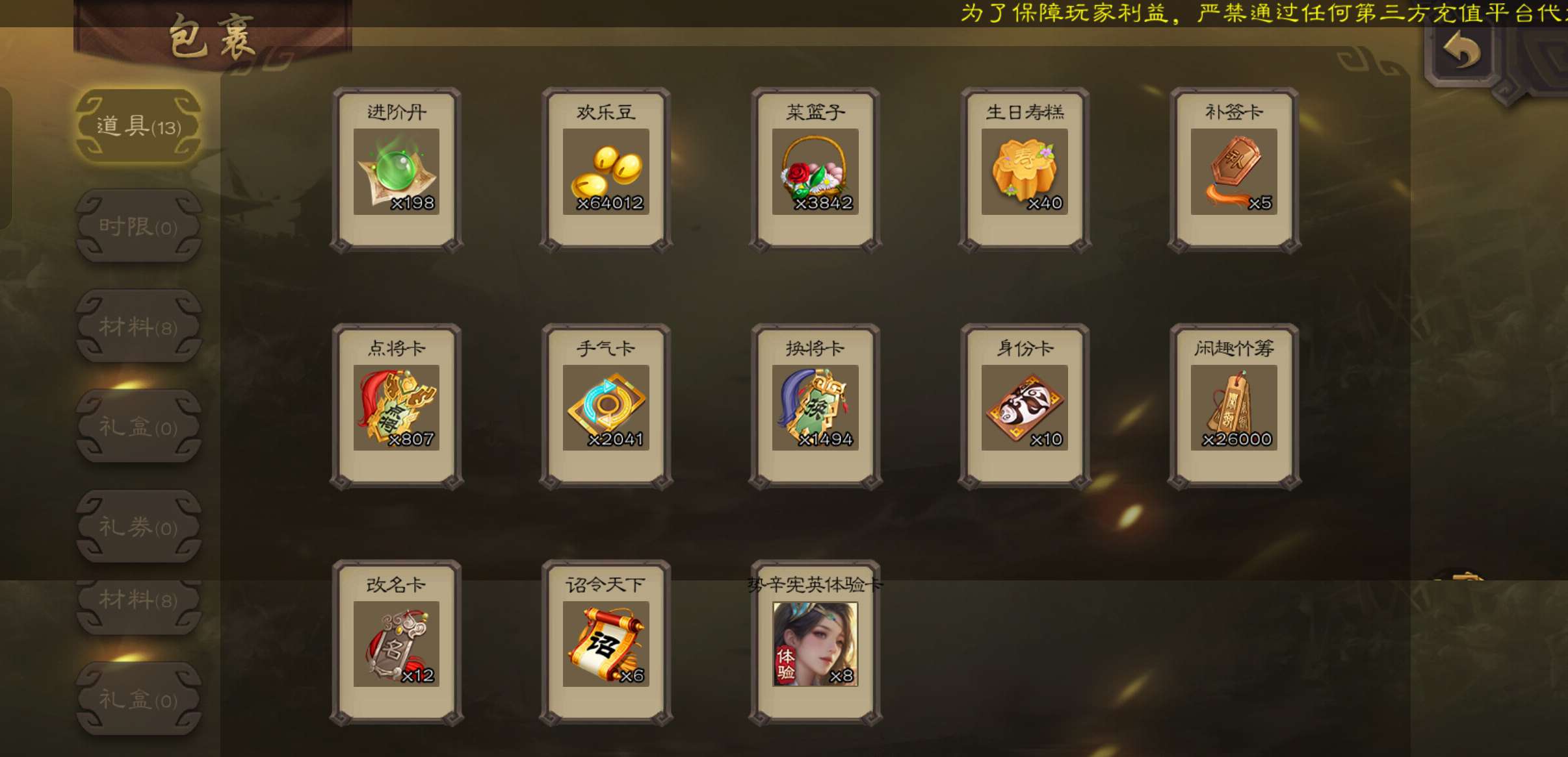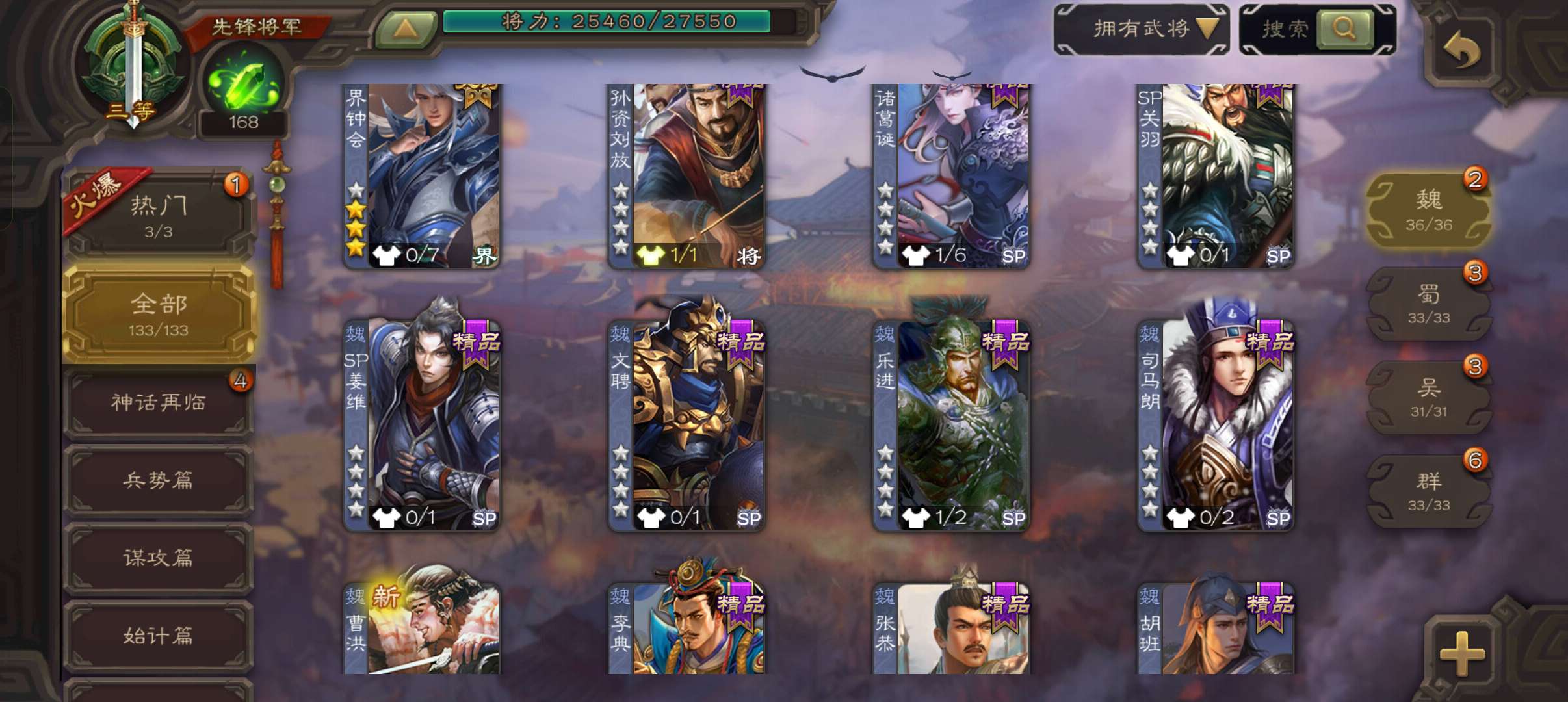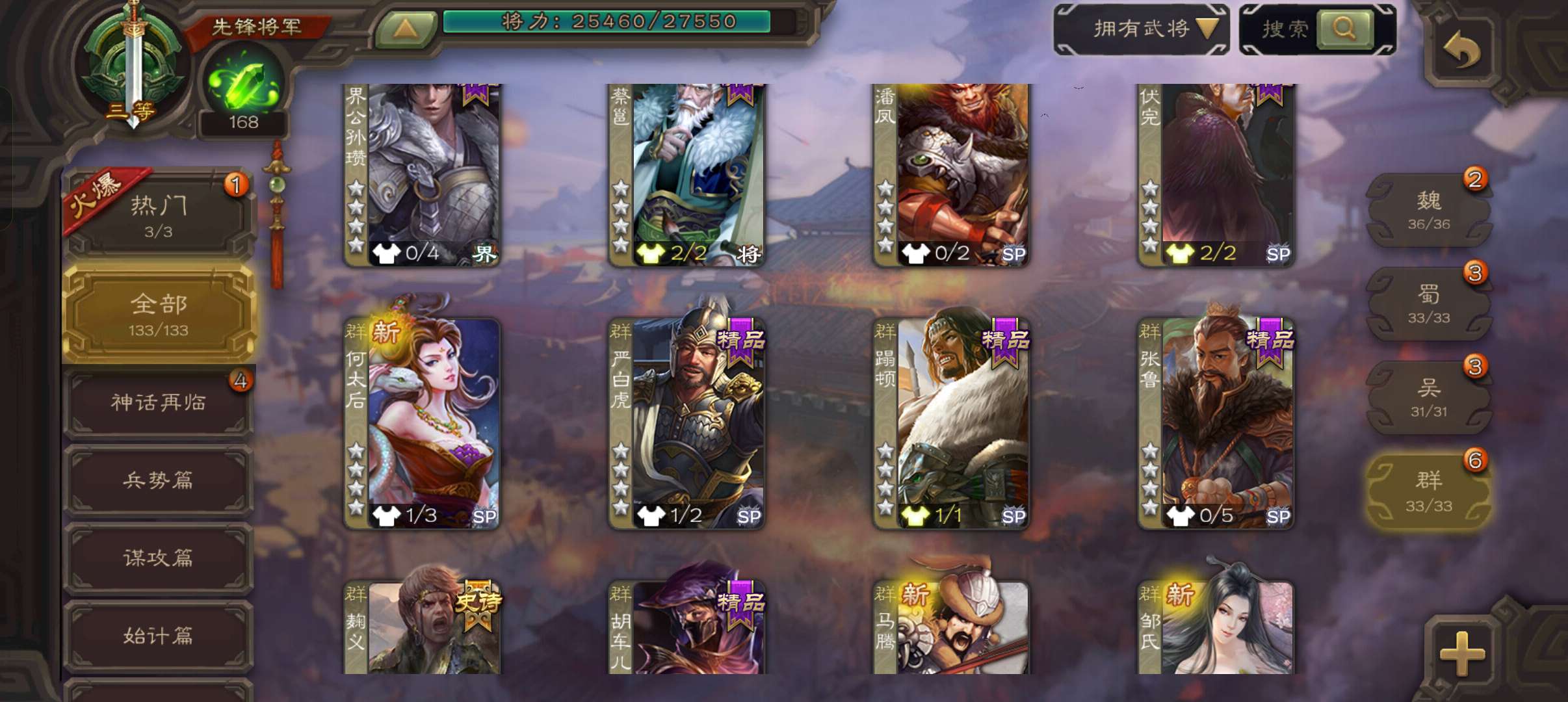 6.4万豆,回廊动白马界钟会左慈3史诗先锋,甘夫人张翼界朱治133将,2万羽毛