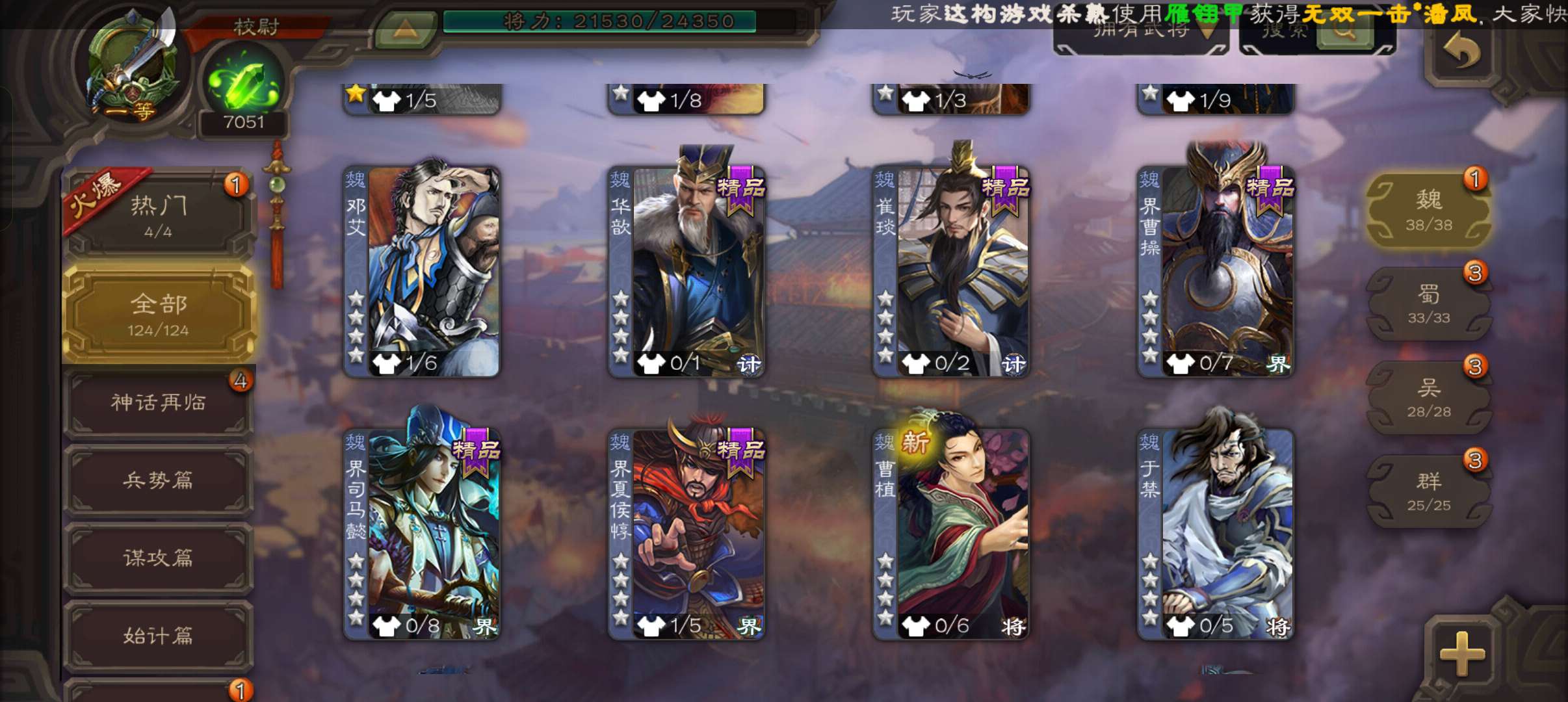 8万羽毛7千将魂5.8万豆,界钟会谯周双史诗一等校尉,界孙权甘夫人崔琰124将