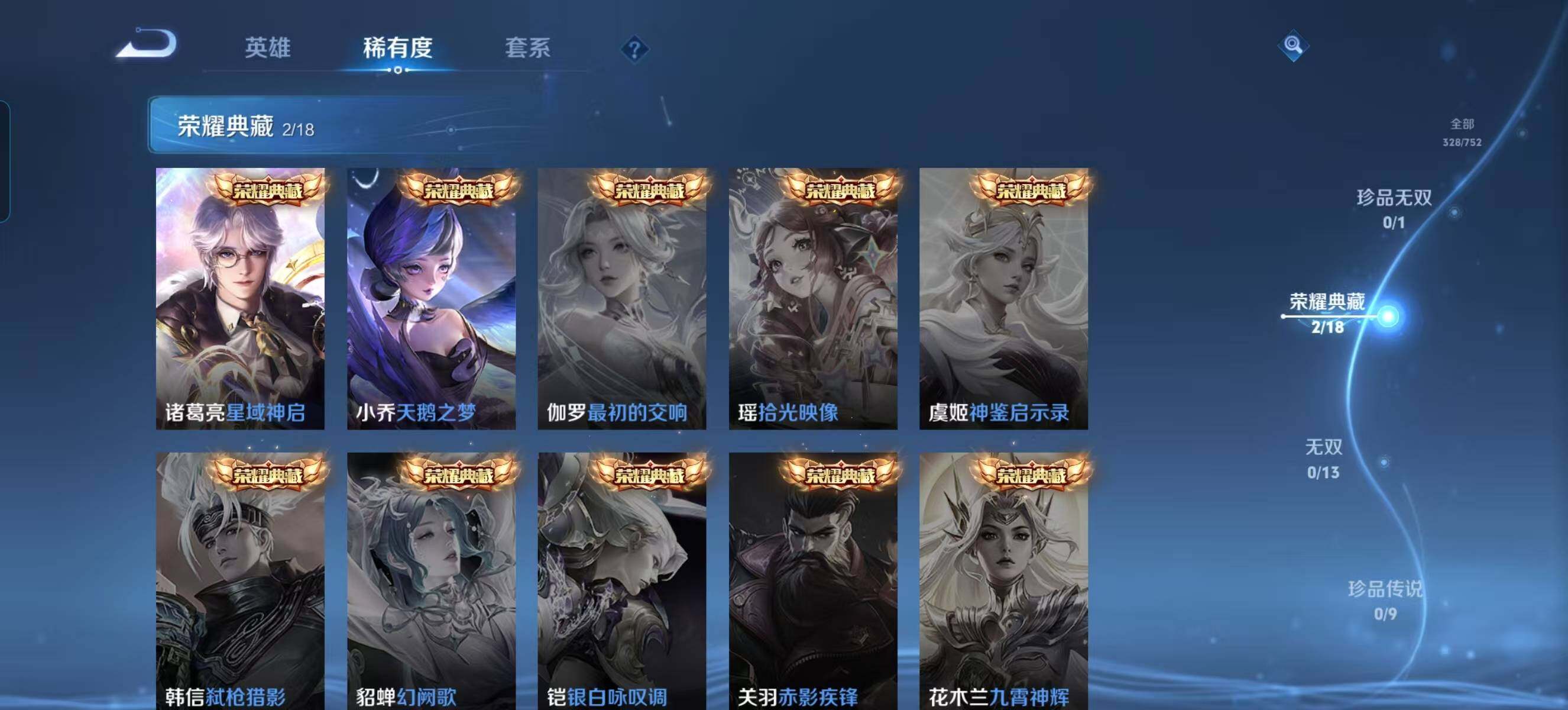 皮肤328 英雄128 倔强青铜 荣耀典藏3 传说14 其他皮肤133-328皮肤3典藏14传说 天鹅之梦 星域神启 武则天英雄 永曜之星 武陵仙君