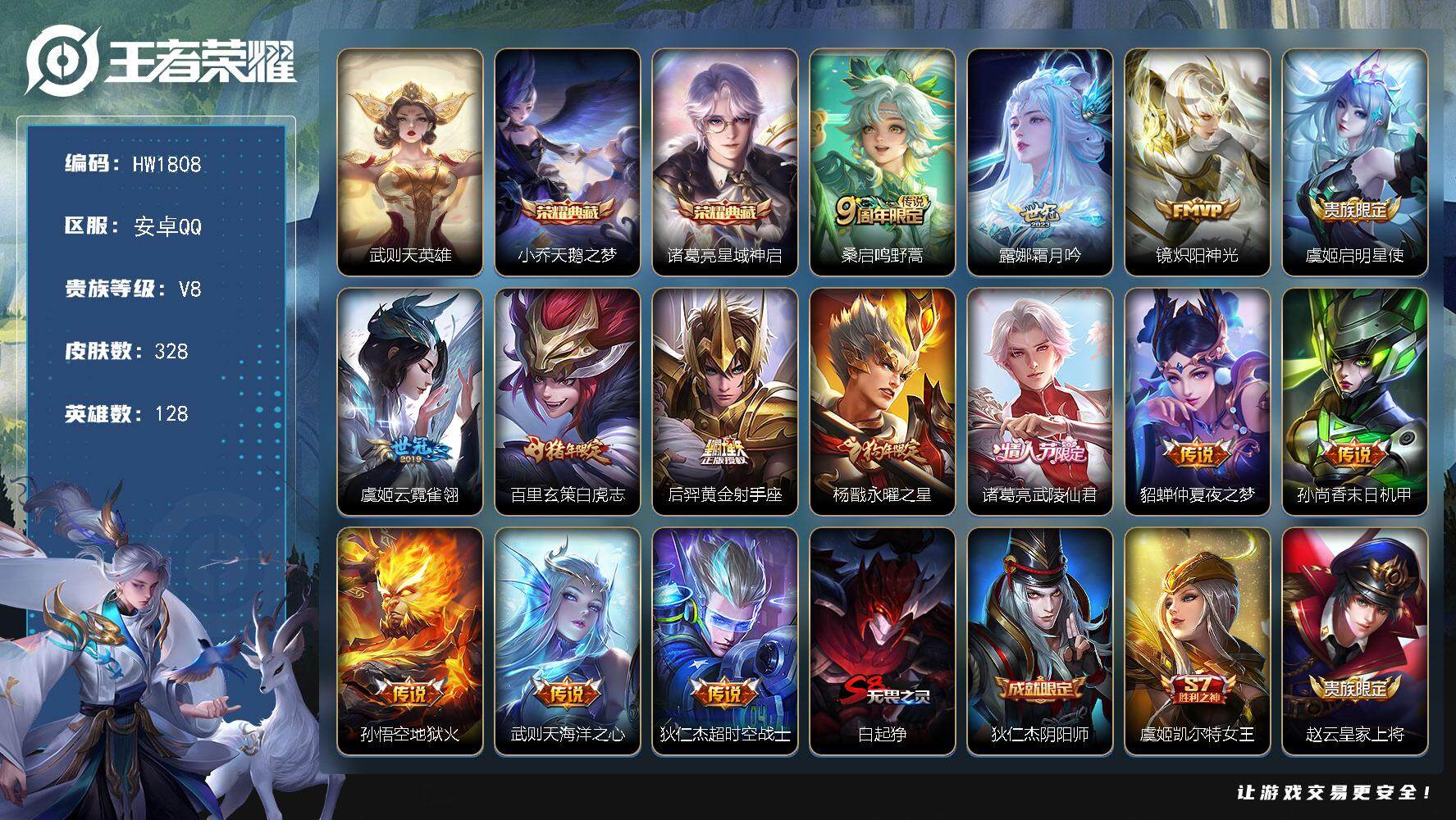 营地账号:/328皮肤3典藏14传说 天鹅之梦 星域神启 武则天英雄 永曜之星 武陵仙君 白虎志 霜月吟 炽阳神光 云霓雀翎 黄金射手座 仲夏夜之梦 孙尚香末日机甲 空地狱火,武则天海洋之心 狄仁杰超时空战士 鸣野蒿 启明星使