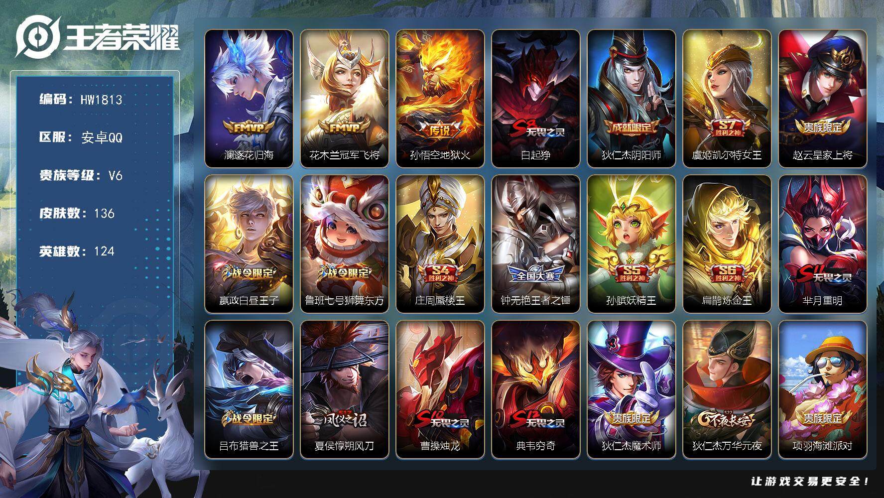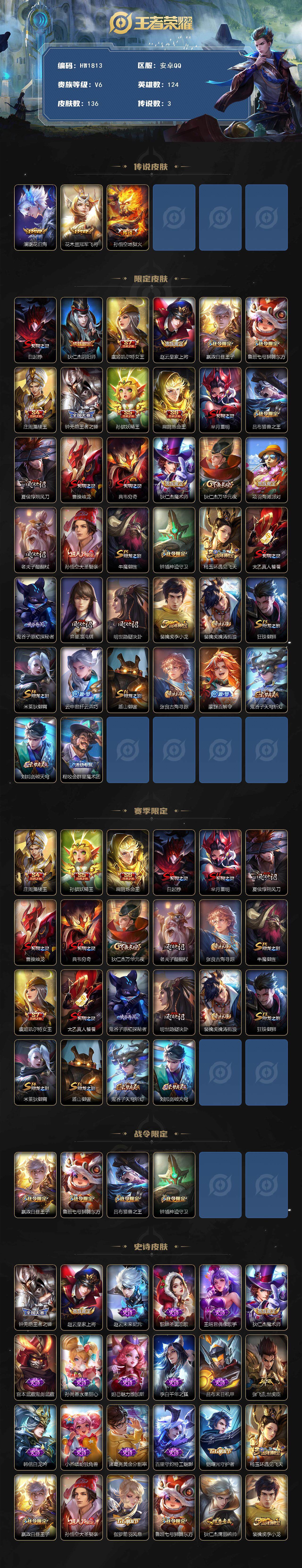 营地账号:/136皮肤3传说 逐花归海 冠军飞将 地狱火 大圣娶亲 遇见飞天 烛龙 圣诞恋歌