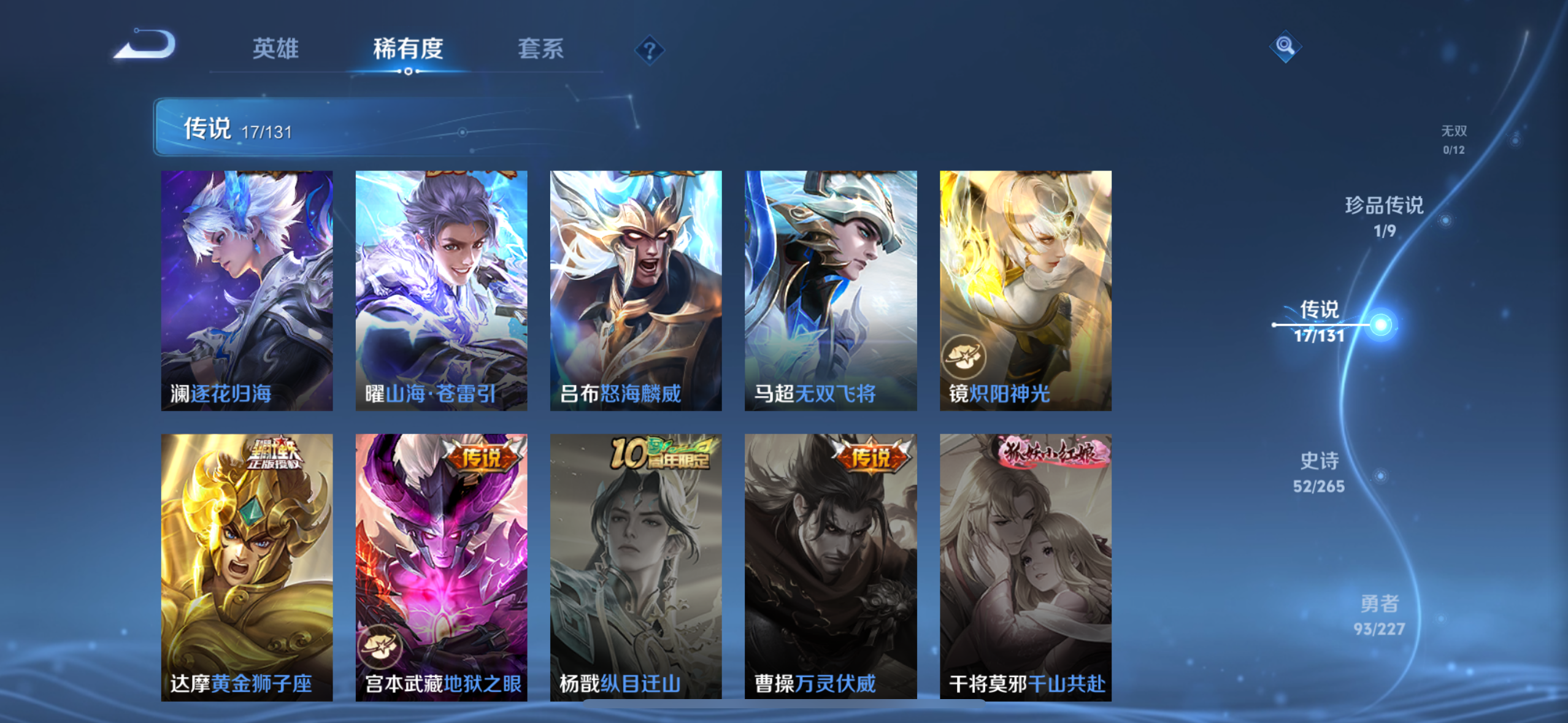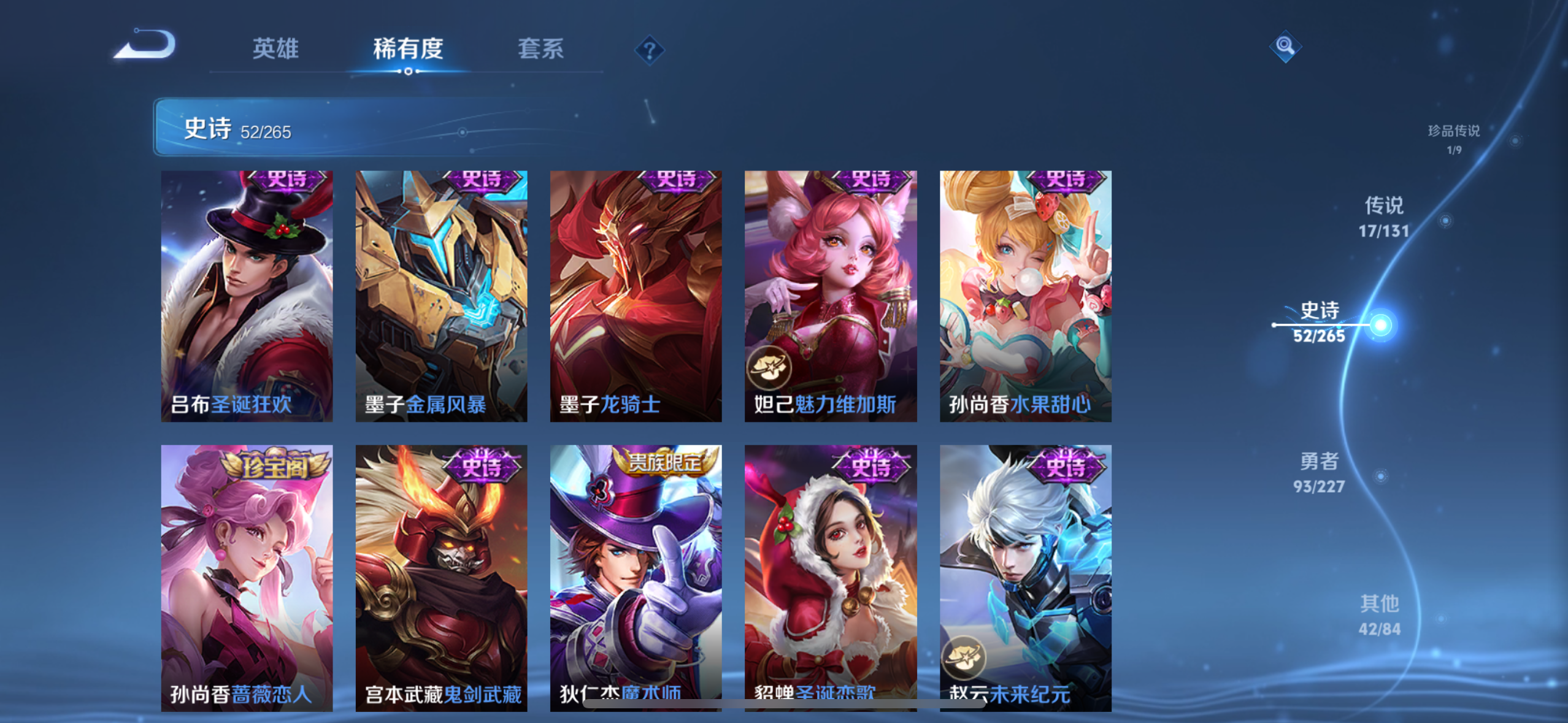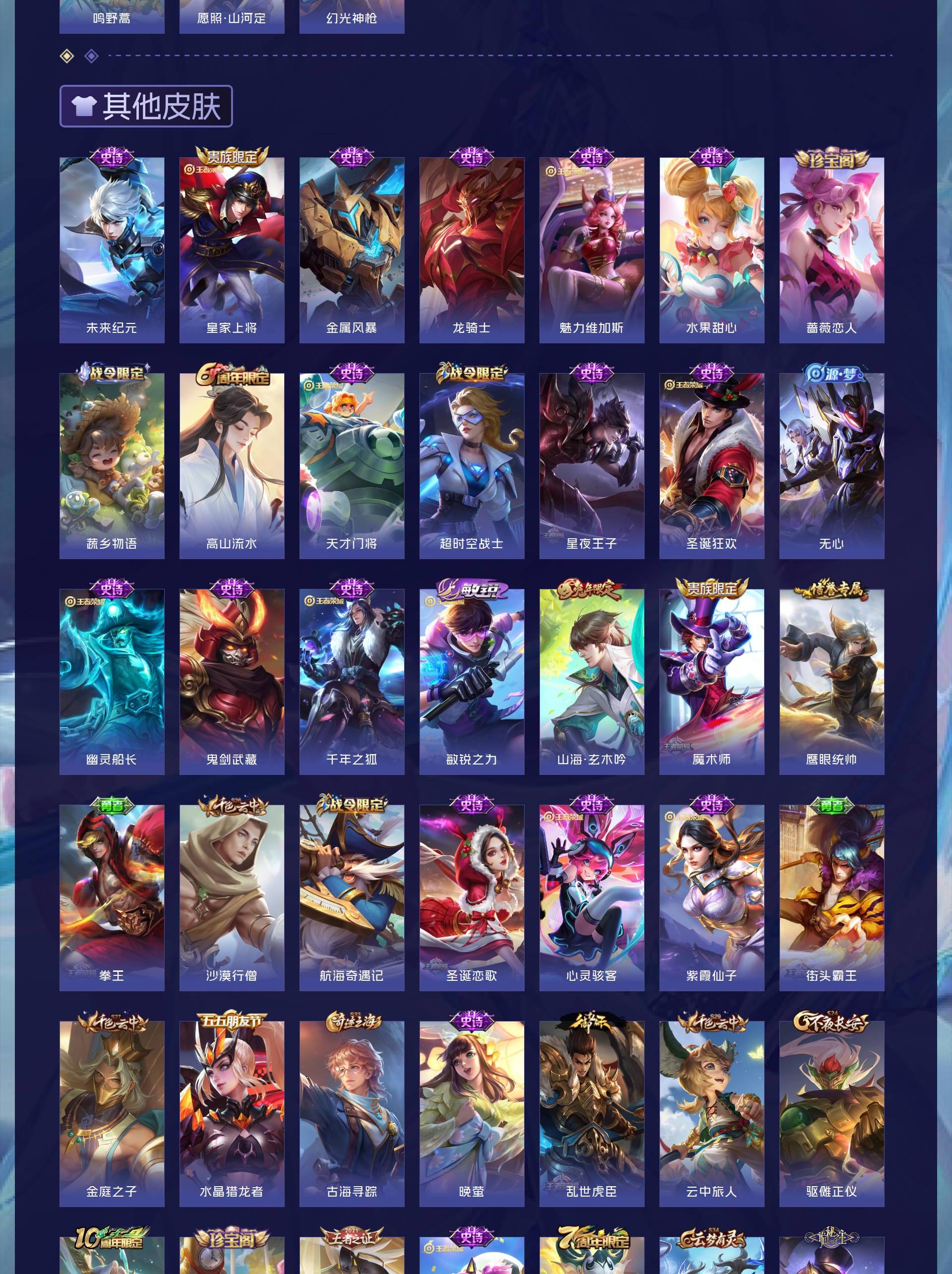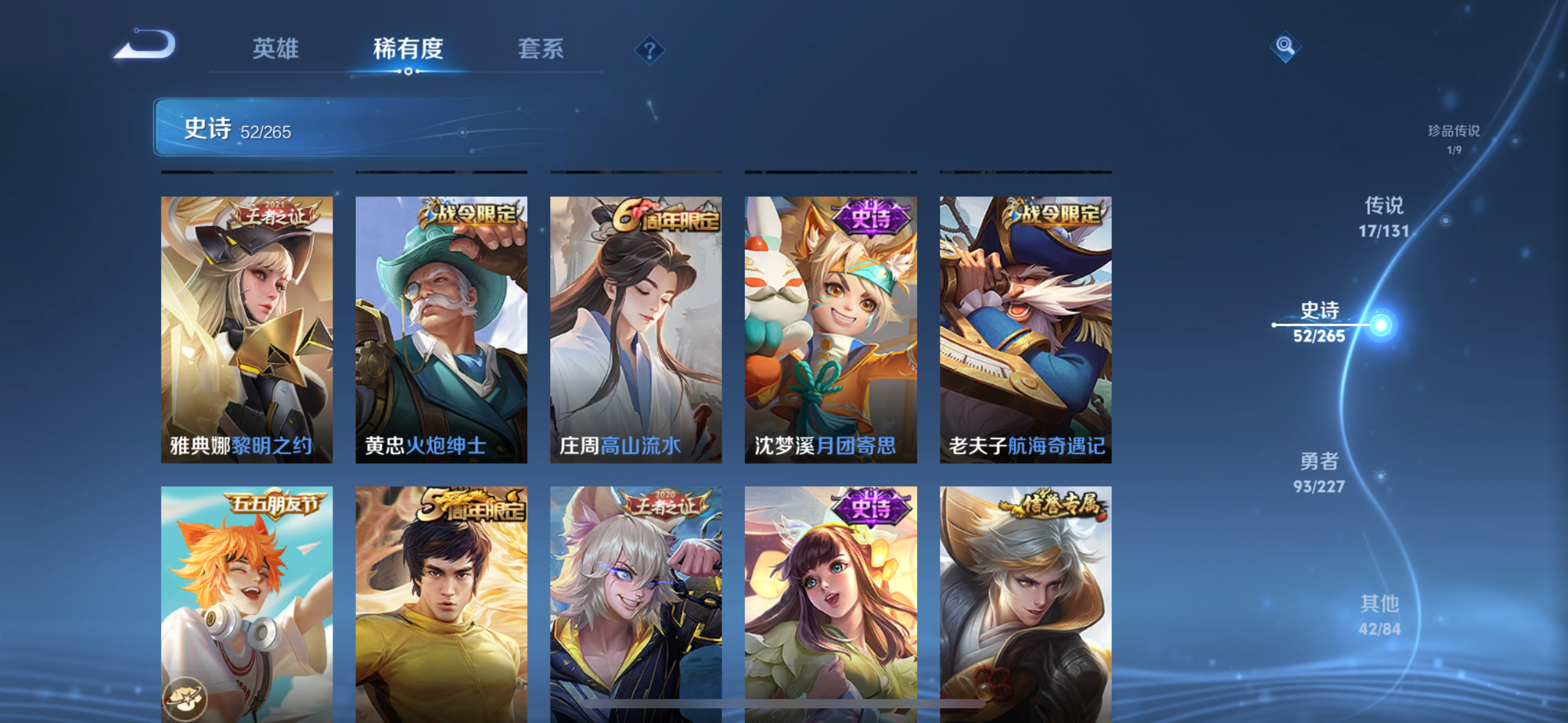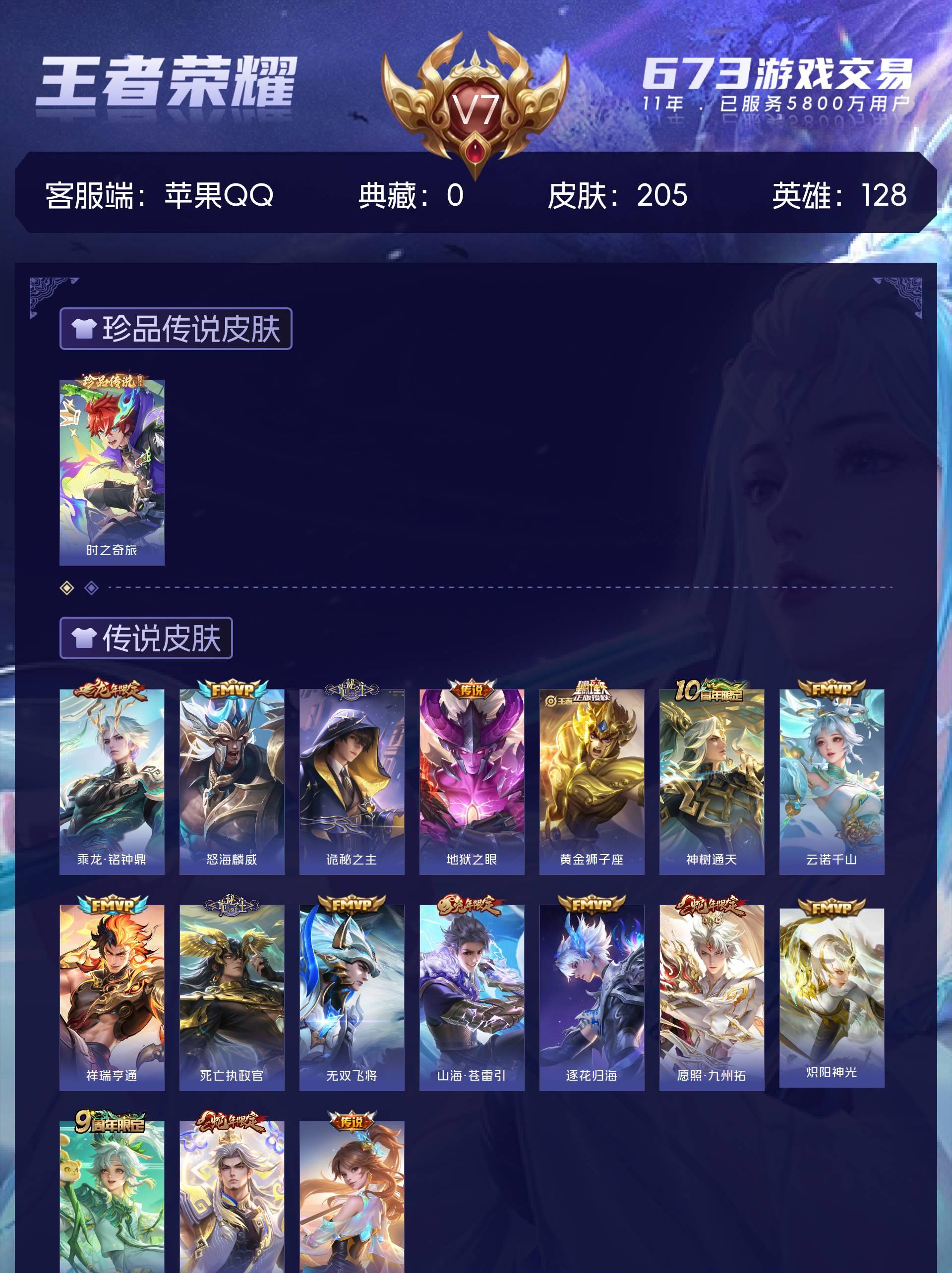 V7 皮肤205 英雄128 绝世王者 珍品传说1 传说17 其他皮肤64