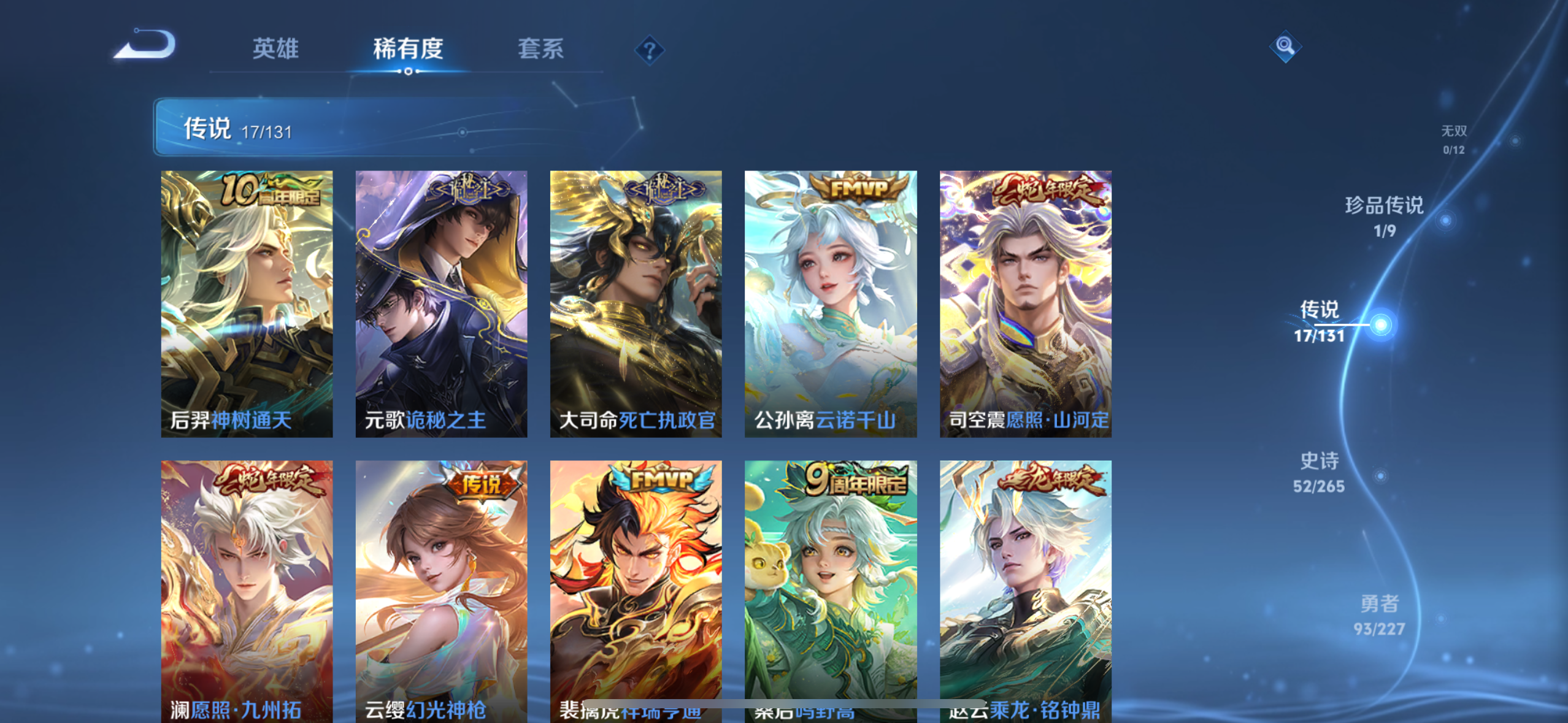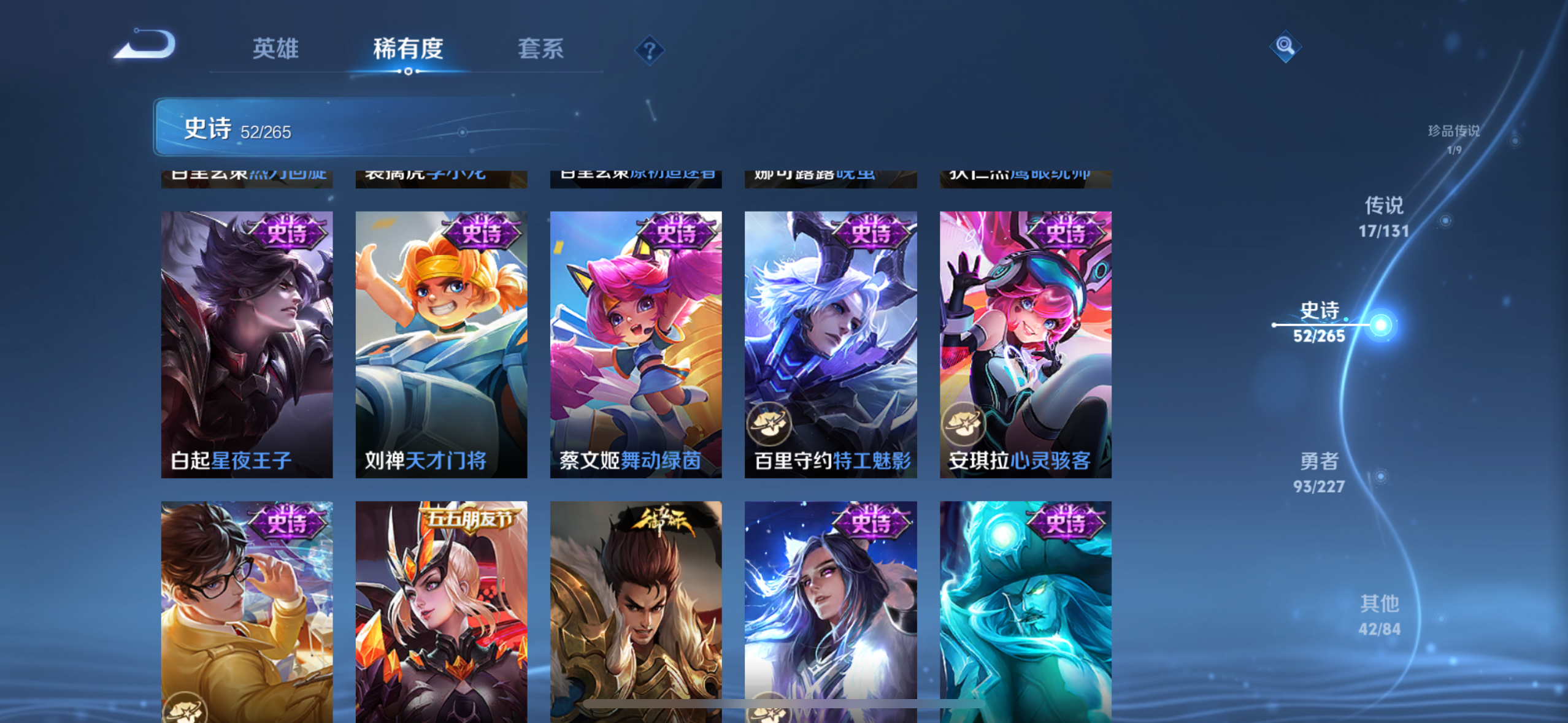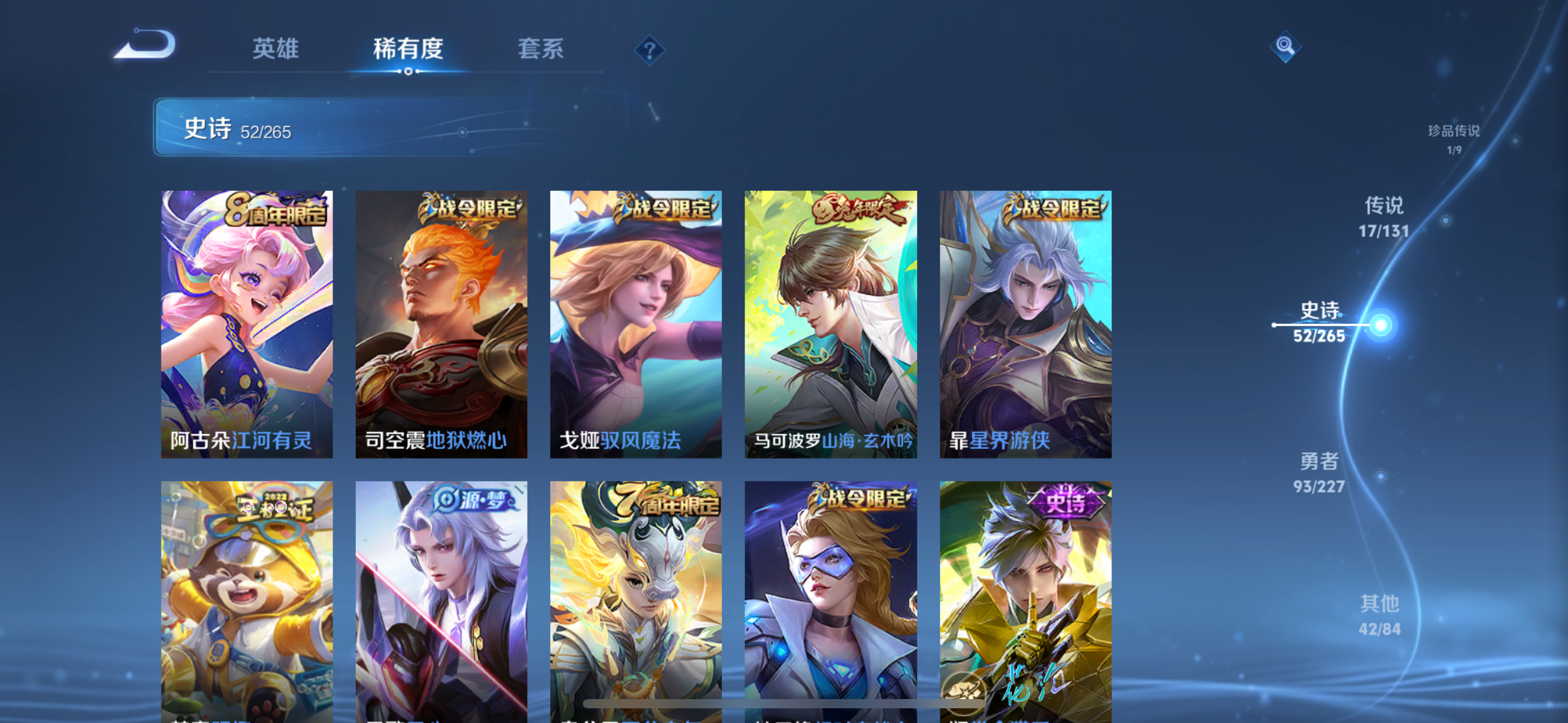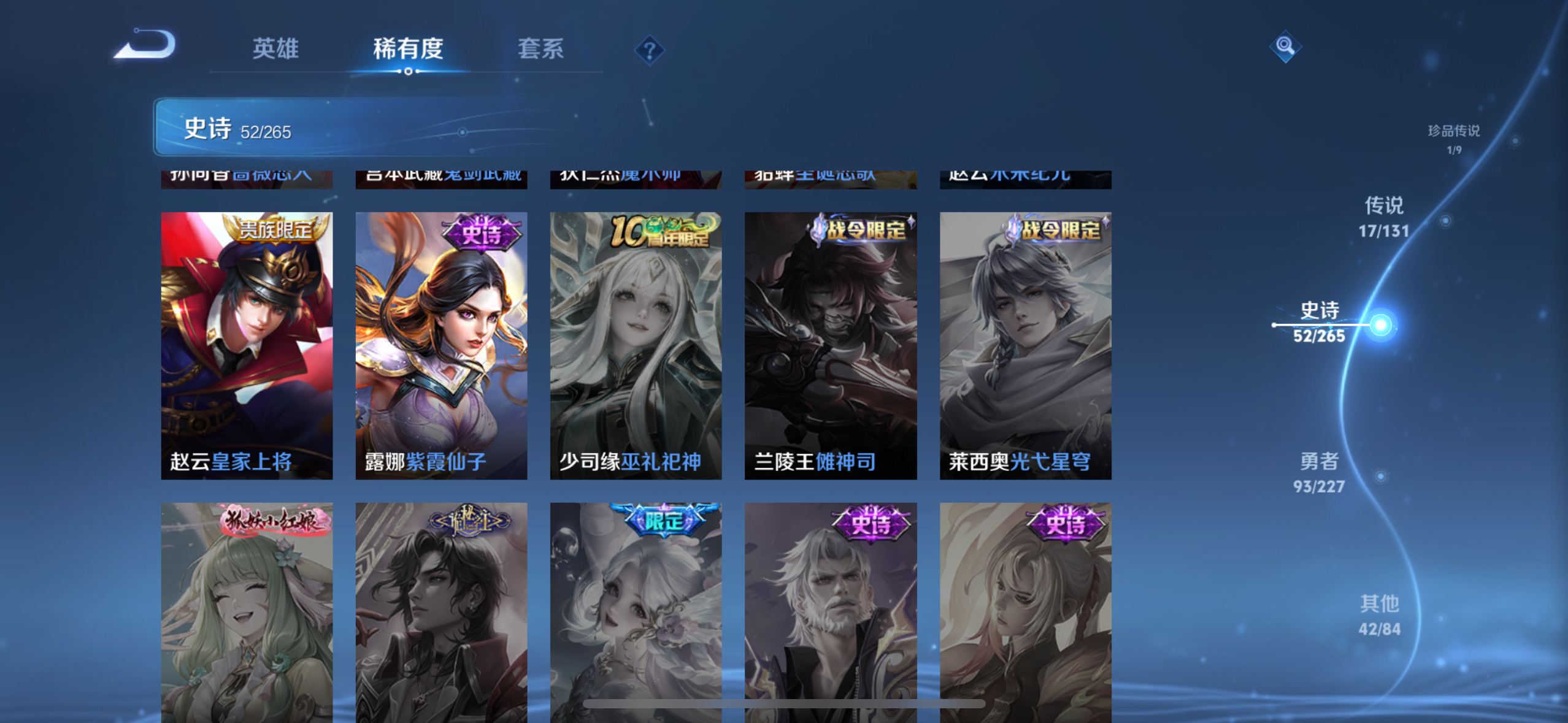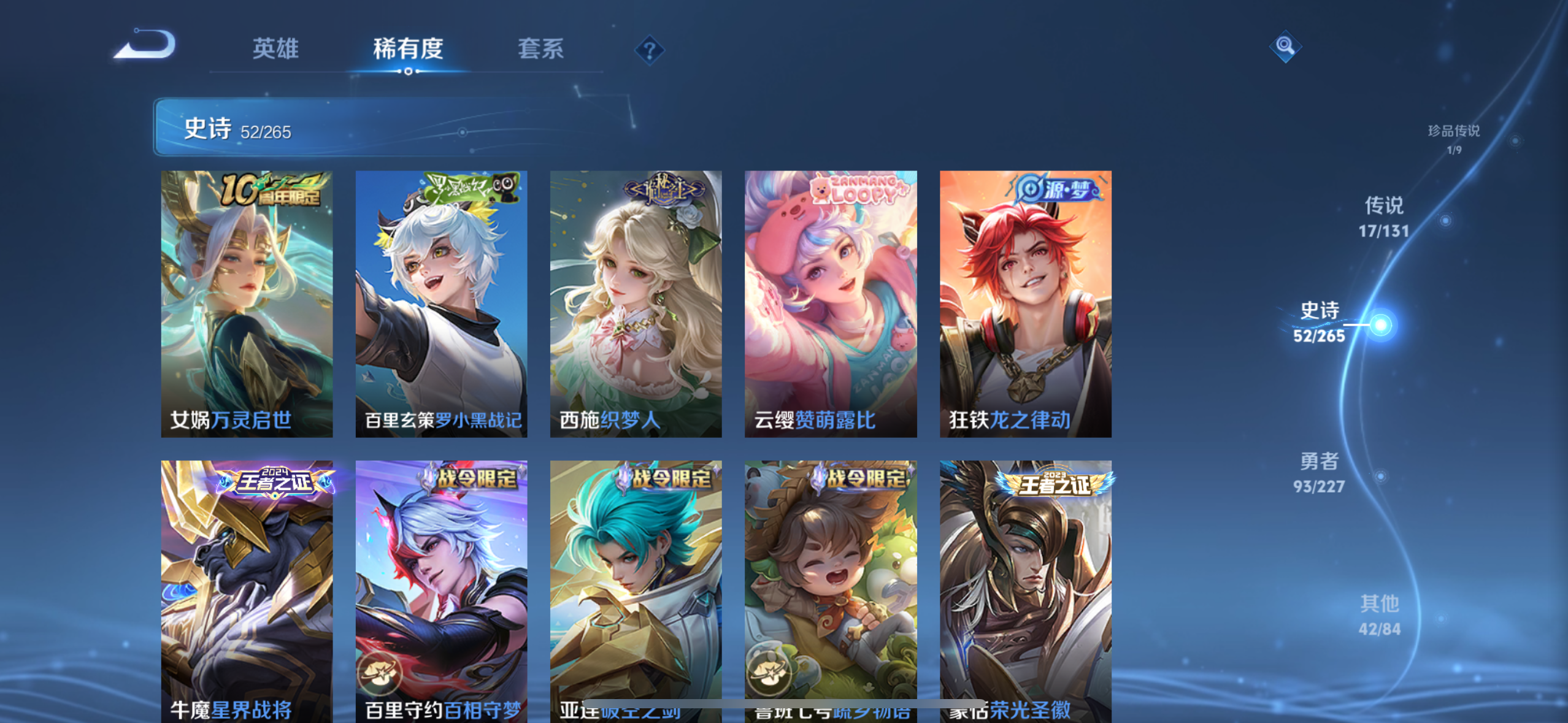 V7 皮肤205 英雄128 绝世王者 珍品传说1 传说17 其他皮肤64