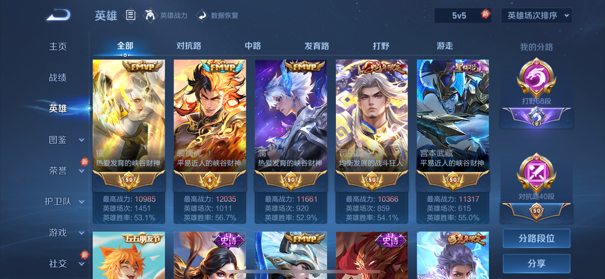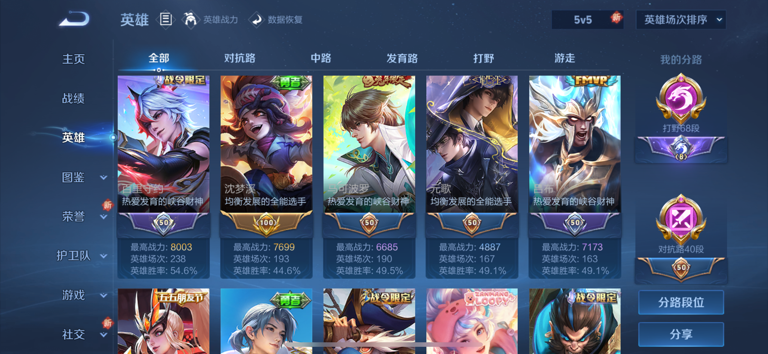 战力挺高打野68段对抗路40段名字挺好的男神号不可以二次包人脸